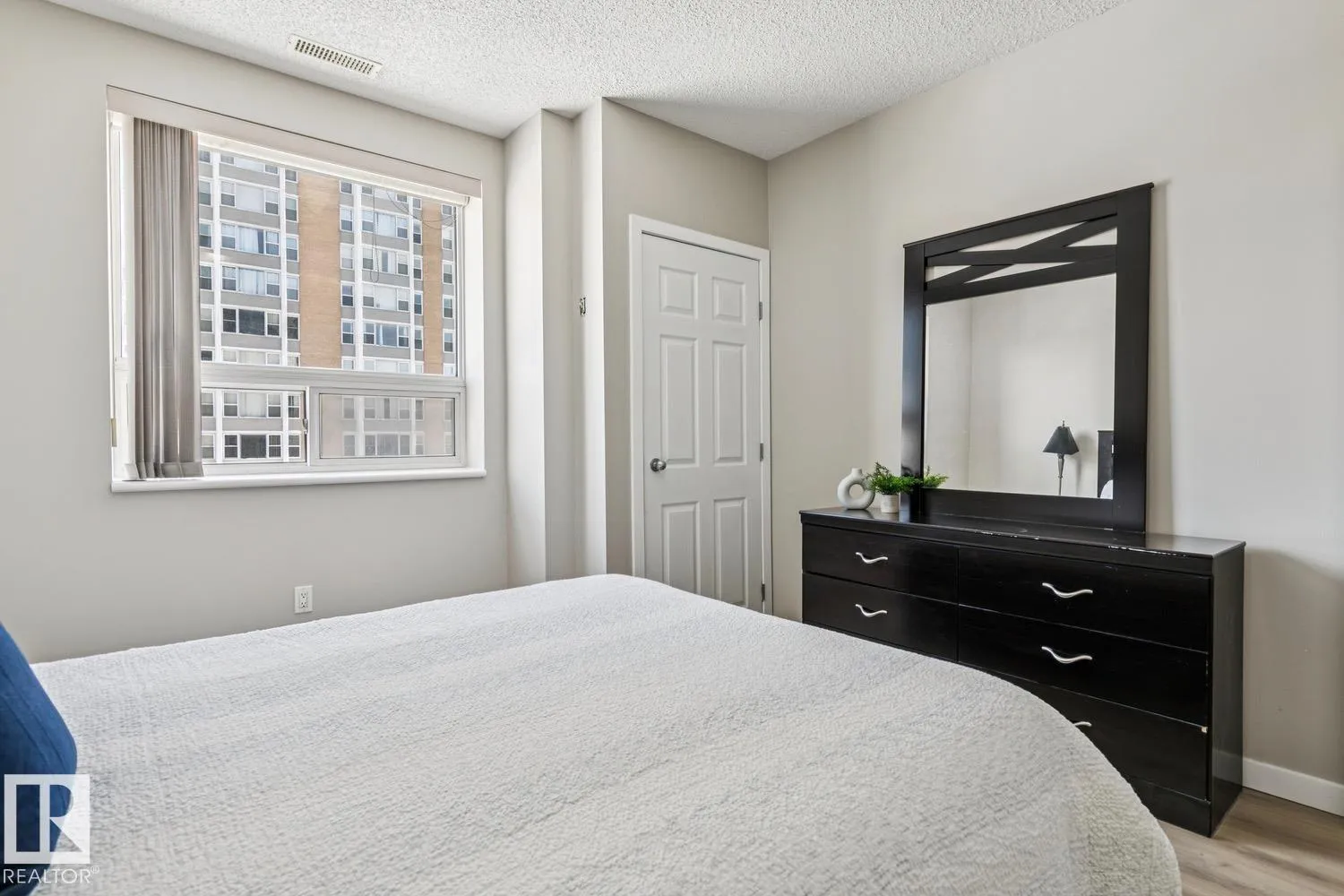 An excellent opportunity for a first-time home buyer or savvy investor! This quiet and spacious 1 bedroom, 1 bathroom condo offers outstanding value in a solid concrete building just two blocks south of Jasper Avenue with quick access to downtown, the University of Alberta, and public transit. A proven rental with no vacancy history, this property is a smart investment choice. The unit features new flooring, fresh paint, air conditioning, in-suite laundry, and underground heated parking, while the building offers a private on-site gym and the durability and sound insulation of concrete construction. The condo can be sold furnished for a seamless move-in or rental transition. Welcome home! (id:27476)