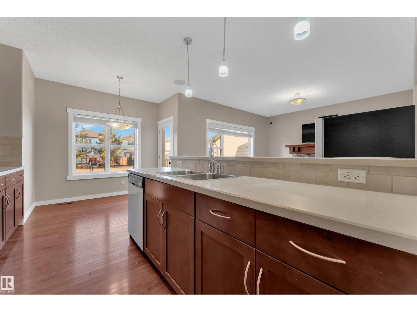 Welcome to this beautiful home located in the desirable community of Tamarack, perfectly situated on a quiet crescent with no neighbours at the back and backing onto a peaceful walking trail. This contemporary open-plan design offers a bright kitchen that overlooks the great room, highlighted by a stunning stone feature fireplace. The kitchen includes hardwood flooring, stainless steel appliances, and a huge walk-in pantry. The spacious master bedroom features a walk-in closet and a large ensuite complete with his and her sinks and a jetted tub. The professionally finished basement offers vinyl plank flooring, a full bathroom, and a huge family roomâideal for extra living space. Additional features include 9 ft main-floor ceilings, second-floor laundry, built-in speakers, and a raised deck to enjoy the outdoors. Conveniently located within walking distance to Walmart, close to Gym, a school at walking distance and near the rec centre. This home combines comfort, convenience, and an excellent location. (id:27476)