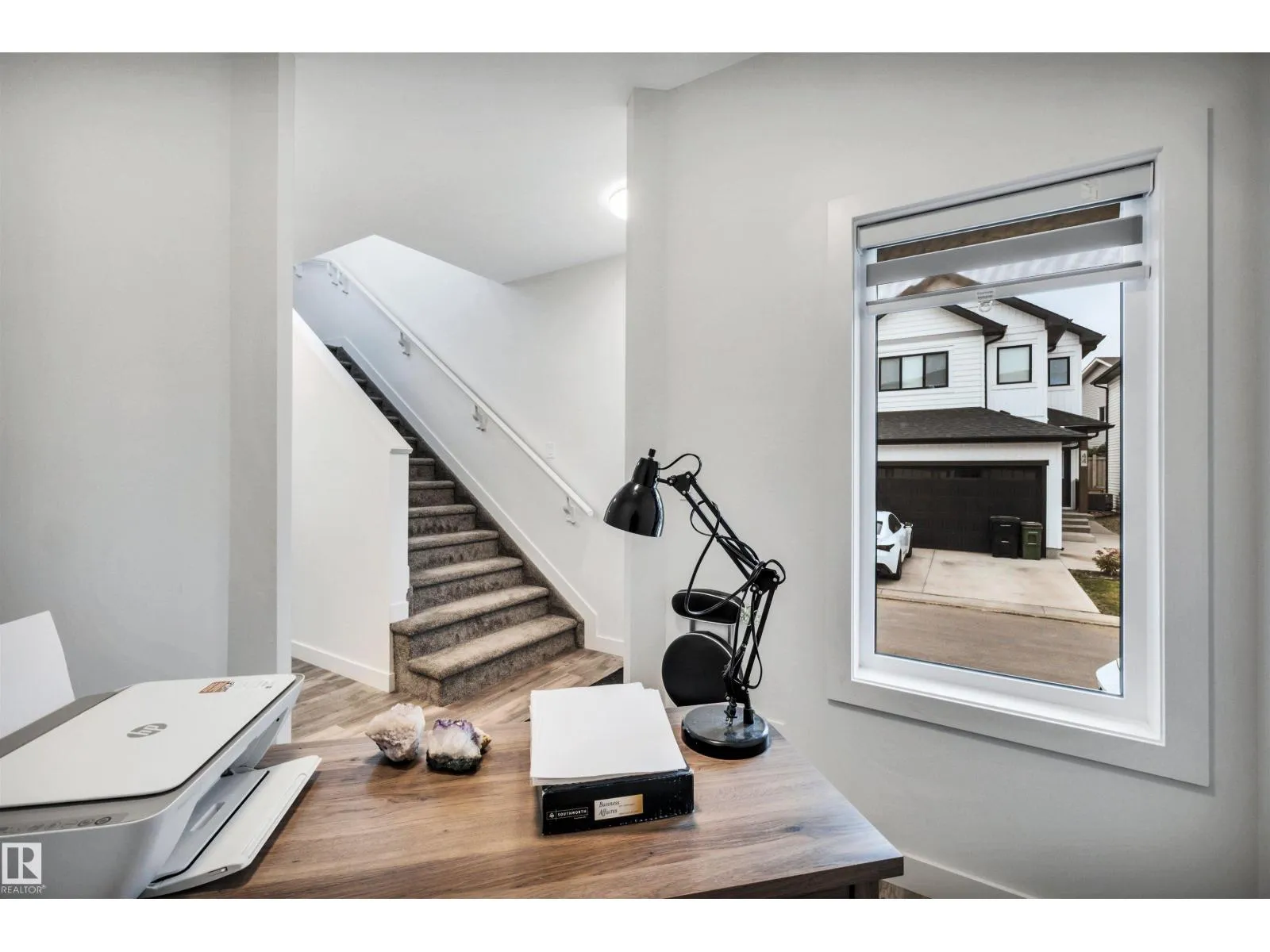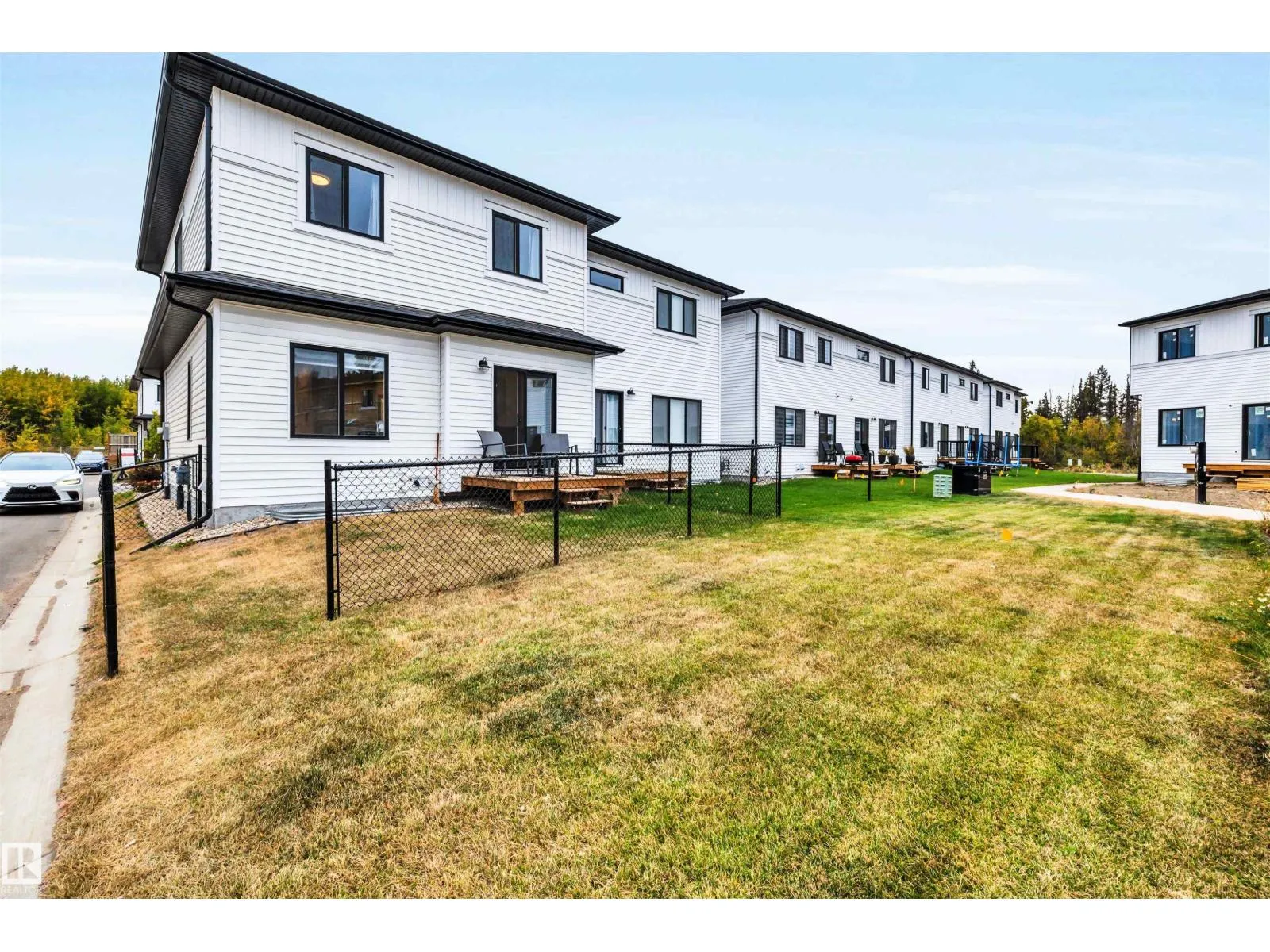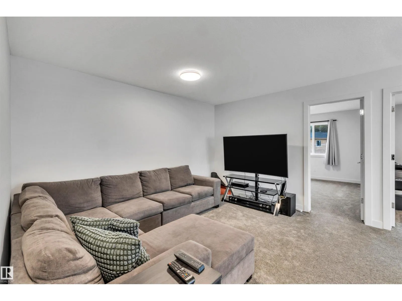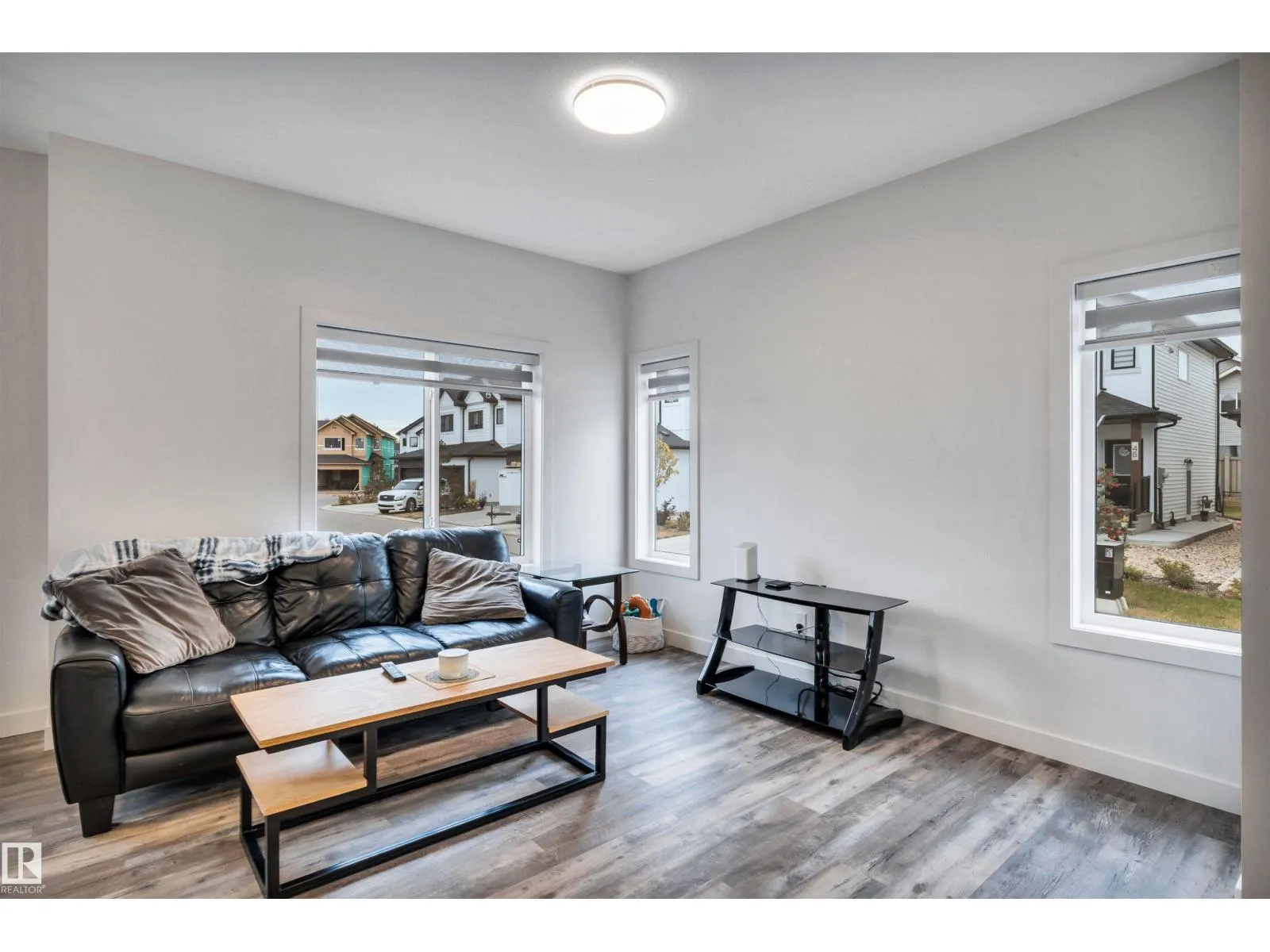 Welcome to this practically brand new 1,736sq ft corner half duplex with double attached garage in the desirable community of The Hamptons. Offering one of the largest floorplans in this price range, this home delivers exceptional value with impressive square footage for the area. The main floor features a spacious den, open-concept kitchen with stainless steel appliances, modern cabinetry, walk-through pantry and adjacent dining area. The bright living room is filled with natural light from large windows. Upstairs offers a generous bonus room with picture window, 3 bedrooms including a primary suite with ensuite, 2.5 baths and upper laundry. Backs onto green space with no direct rear neighbors. Conveniently located near schools, shopping, Costco and quick access to Anthony Henday Drive and Whitemud Drive. (id:27476)