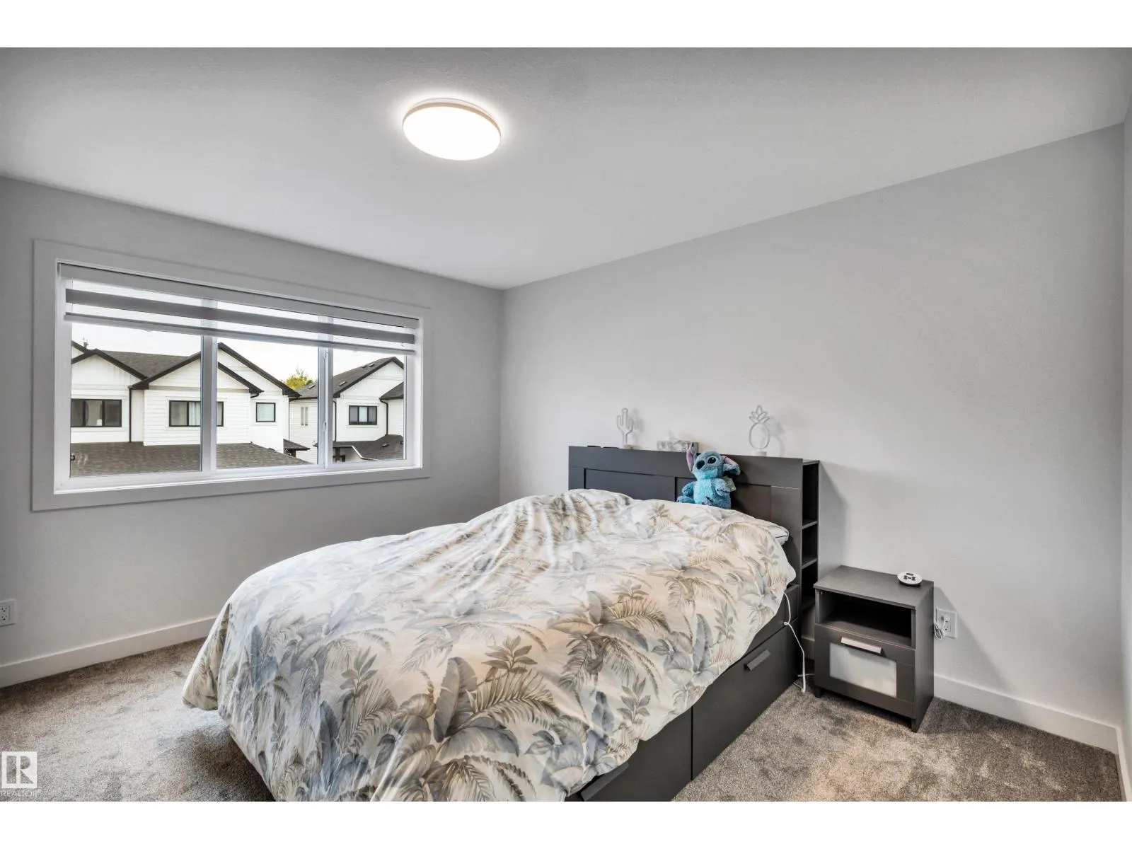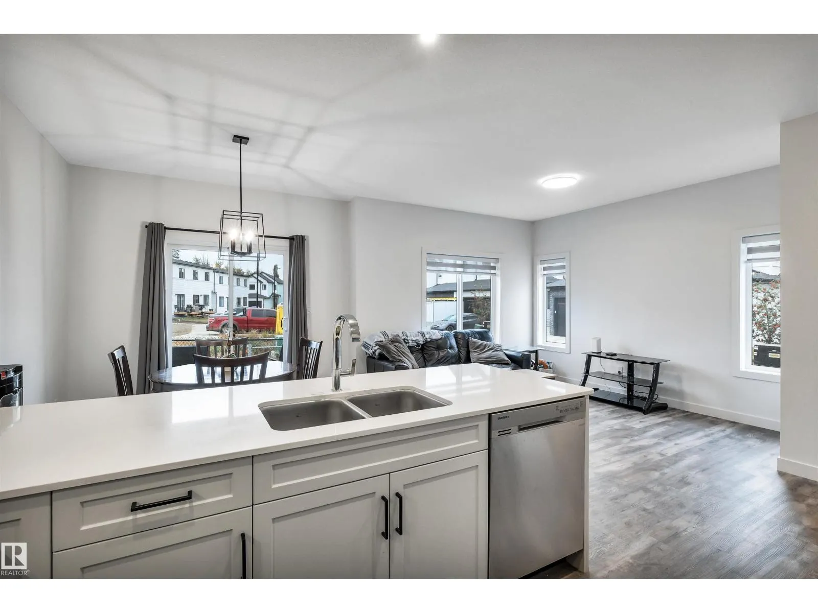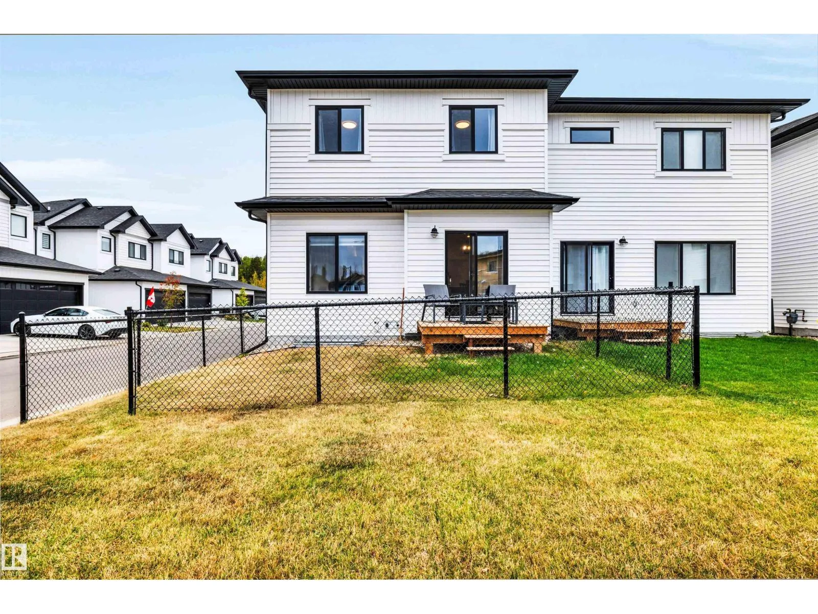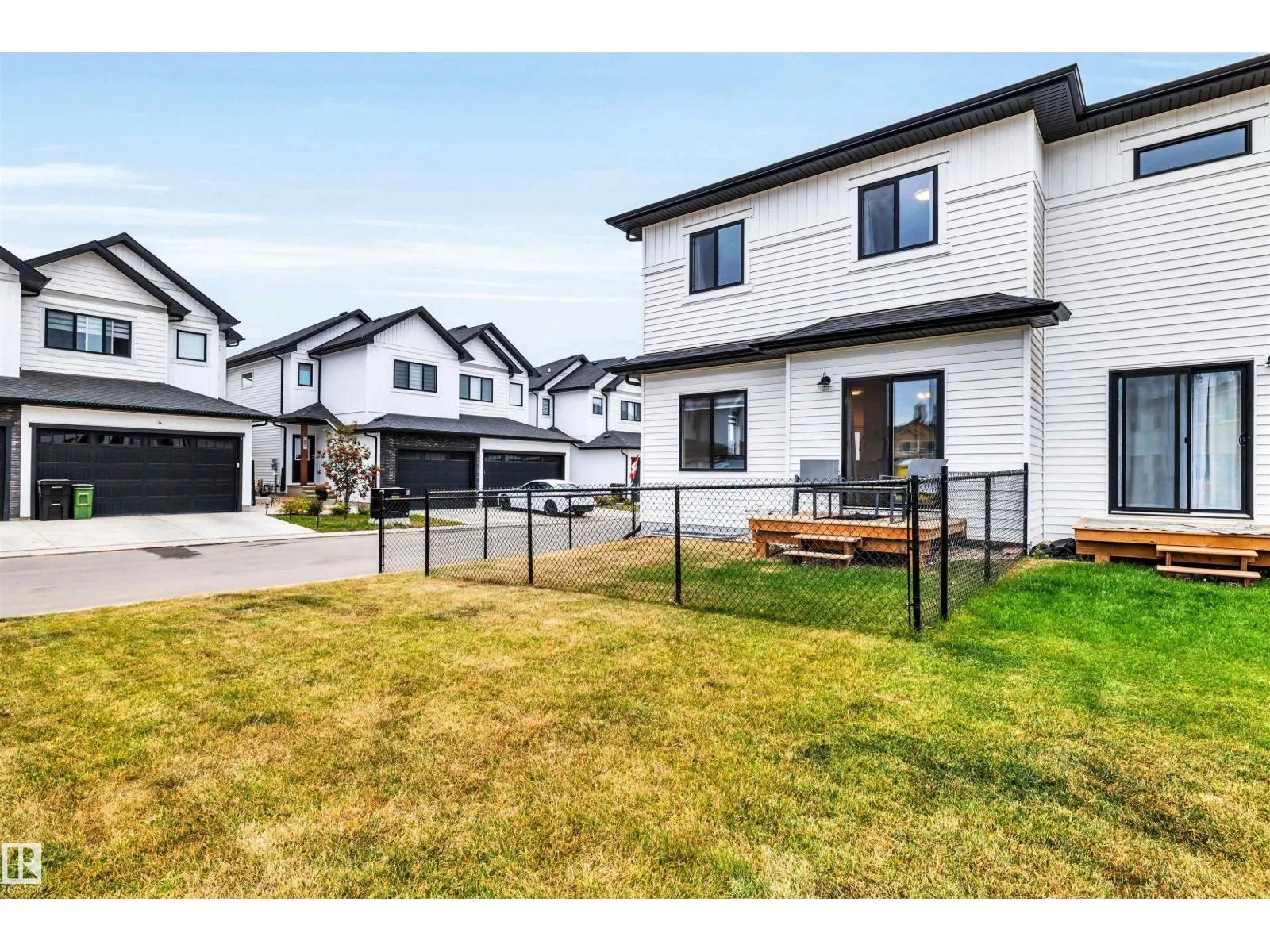 Welcome to this practically brand new 1,736sq ft corner half duplex with double attached garage in the desirable community of The Hamptons. Offering one of the largest floorplans in this price range, this home delivers exceptional value with impressive square footage for the area. The main floor features a spacious den, open-concept kitchen with stainless steel appliances, modern cabinetry, walk-through pantry and adjacent dining area. The bright living room is filled with natural light from large windows. Upstairs offers a generous bonus room with picture window, 3 bedrooms including a primary suite with ensuite, 2.5 baths and upper laundry. Backs onto green space with no direct rear neighbors. Conveniently located near schools, shopping, Costco and quick access to Anthony Henday Drive and Whitemud Drive. (id:27476)
