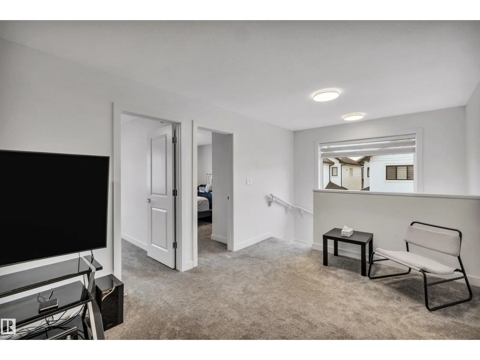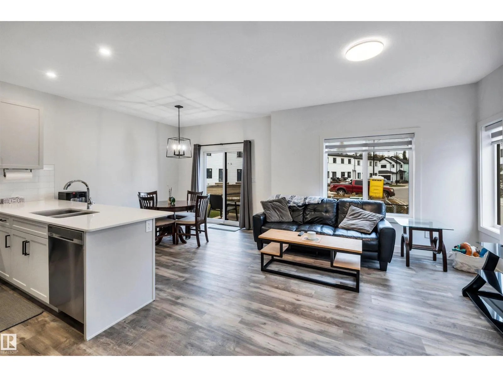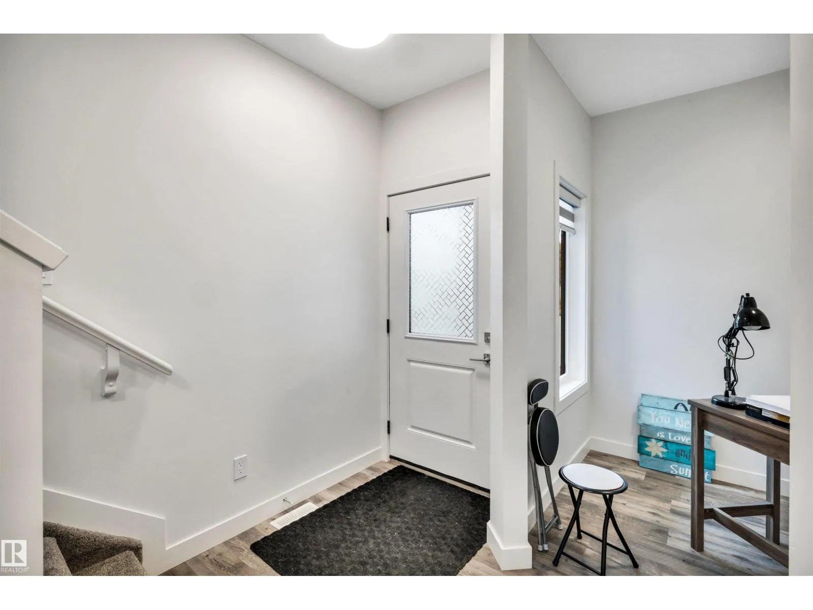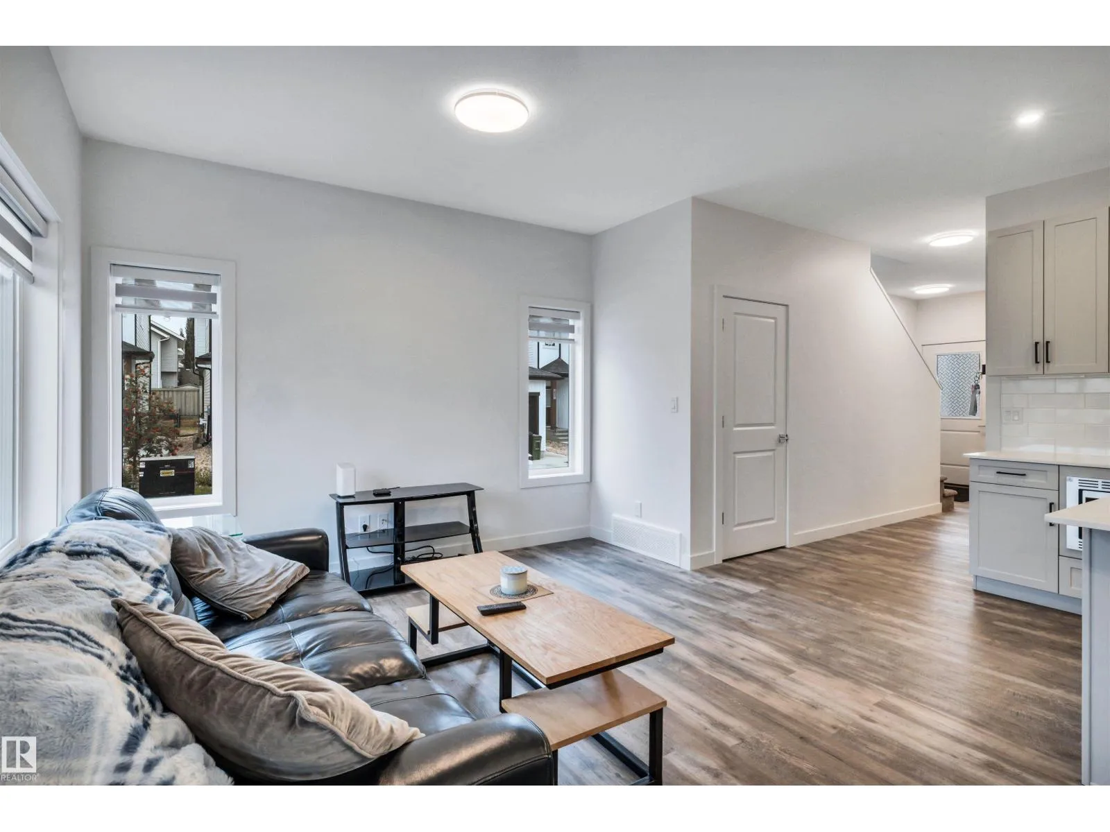 Welcome to this practically brand new 1,736sq ft corner half duplex with double attached garage in the desirable community of The Hamptons. Offering one of the largest floorplans in this price range, this home delivers exceptional value with impressive square footage for the area. The main floor features a spacious den, open-concept kitchen with stainless steel appliances, modern cabinetry, walk-through pantry and adjacent dining area. The bright living room is filled with natural light from large windows. Upstairs offers a generous bonus room with picture window, 3 bedrooms including a primary suite with ensuite, 2.5 baths and upper laundry. Backs onto green space with no direct rear neighbors. Conveniently located near schools, shopping, Costco and quick access to Anthony Henday Drive and Whitemud Drive. (id:27476)