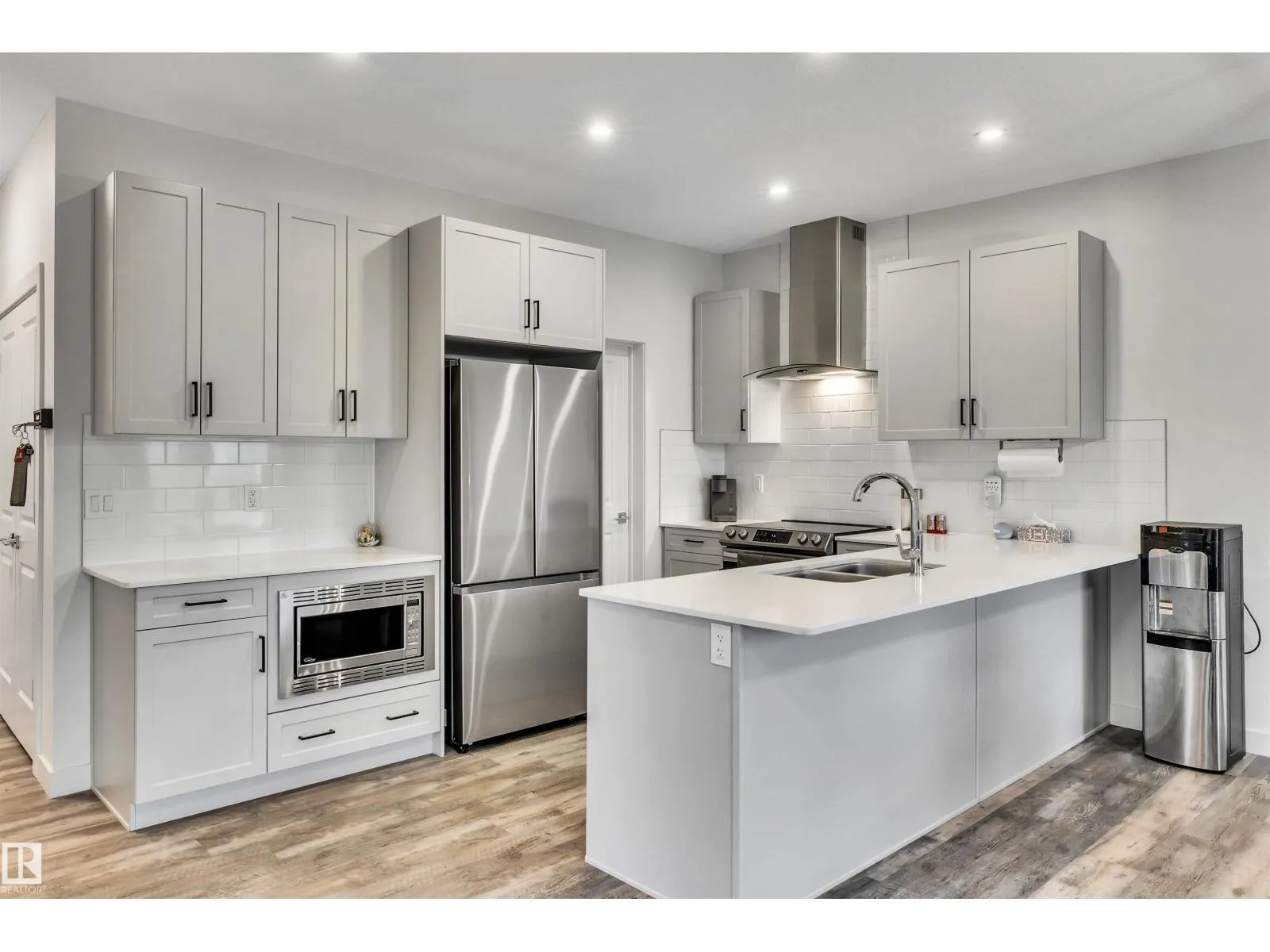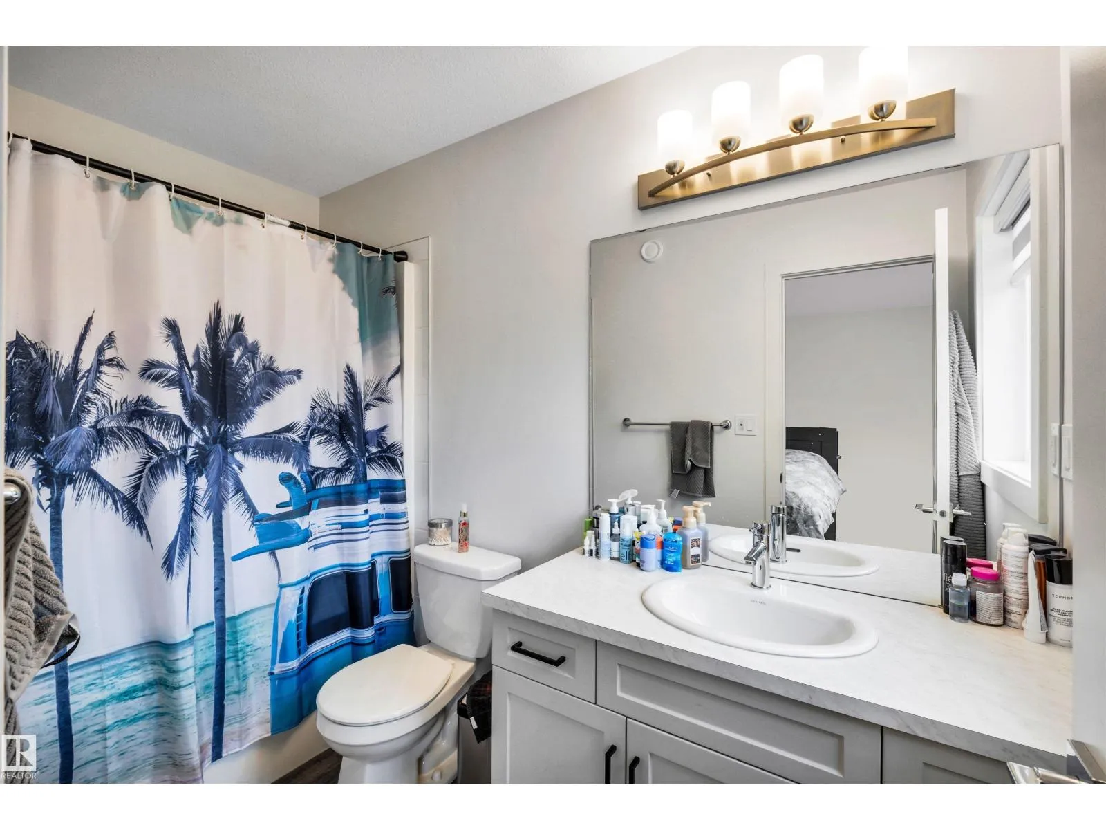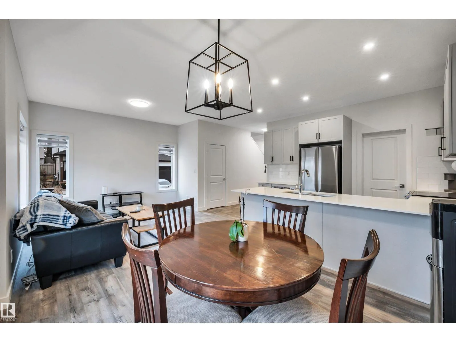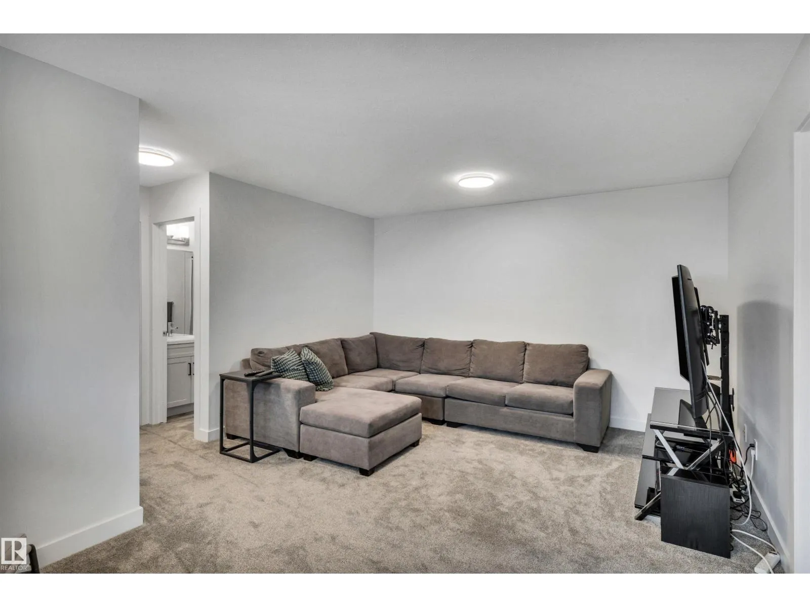 Welcome to this practically brand new 1,736sq ft corner half duplex with double attached garage in the desirable community of The Hamptons. Offering one of the largest floorplans in this price range, this home delivers exceptional value with impressive square footage for the area. The main floor features a spacious den, open-concept kitchen with stainless steel appliances, modern cabinetry, walk-through pantry and adjacent dining area. The bright living room is filled with natural light from large windows. Upstairs offers a generous bonus room with picture window, 3 bedrooms including a primary suite with ensuite, 2.5 baths and upper laundry. Backs onto green space with no direct rear neighbors. Conveniently located near schools, shopping, Costco and quick access to Anthony Henday Drive and Whitemud Drive. (id:27476)