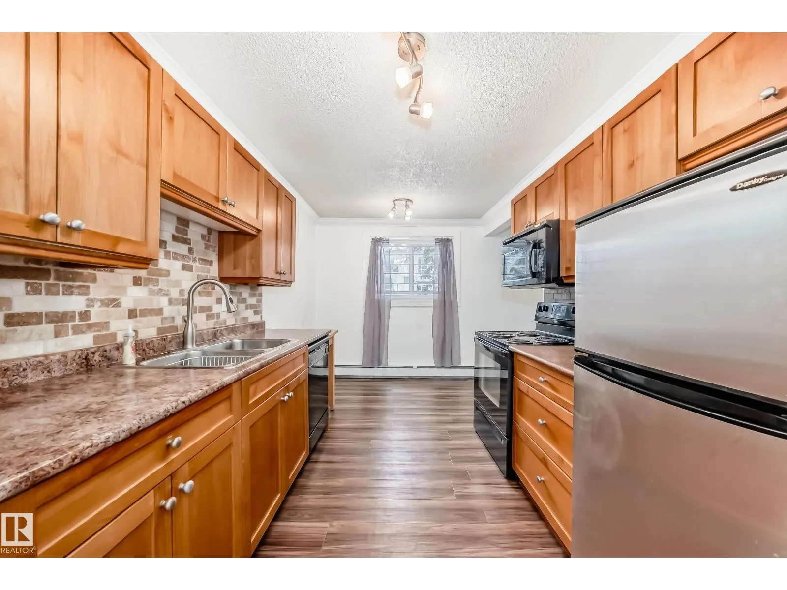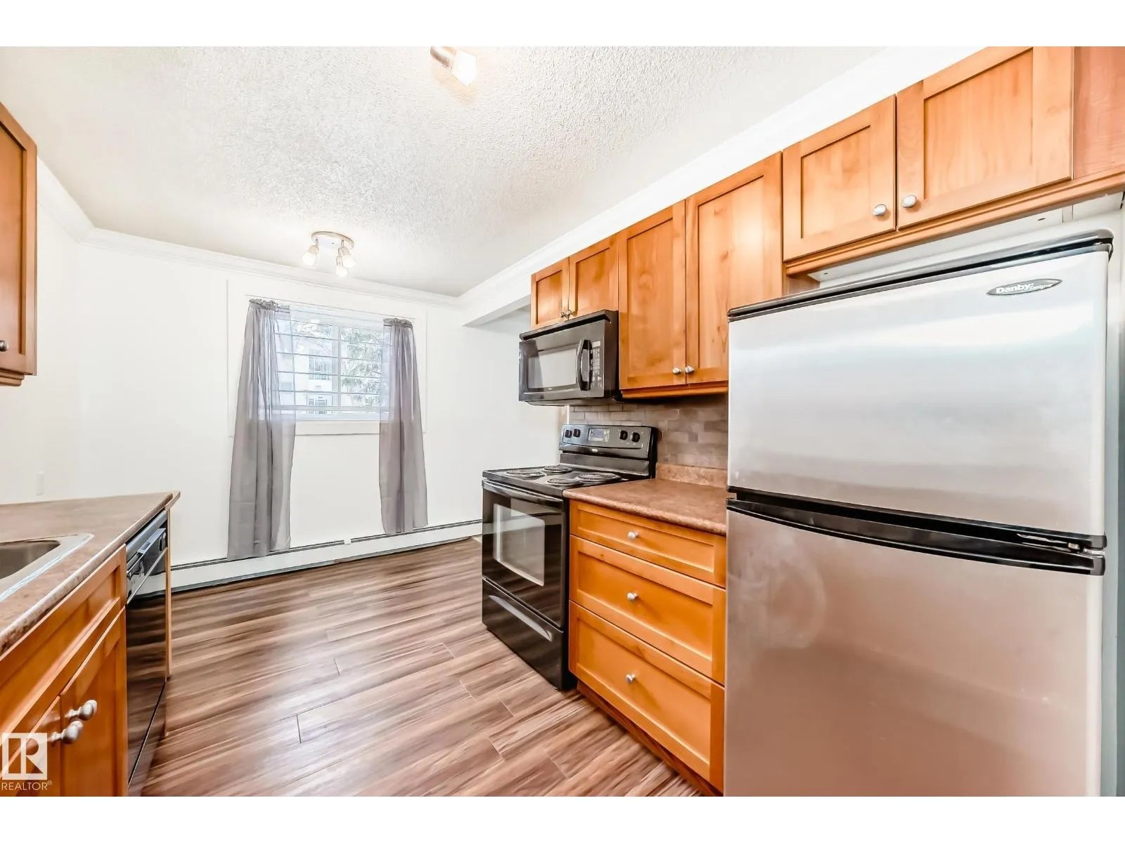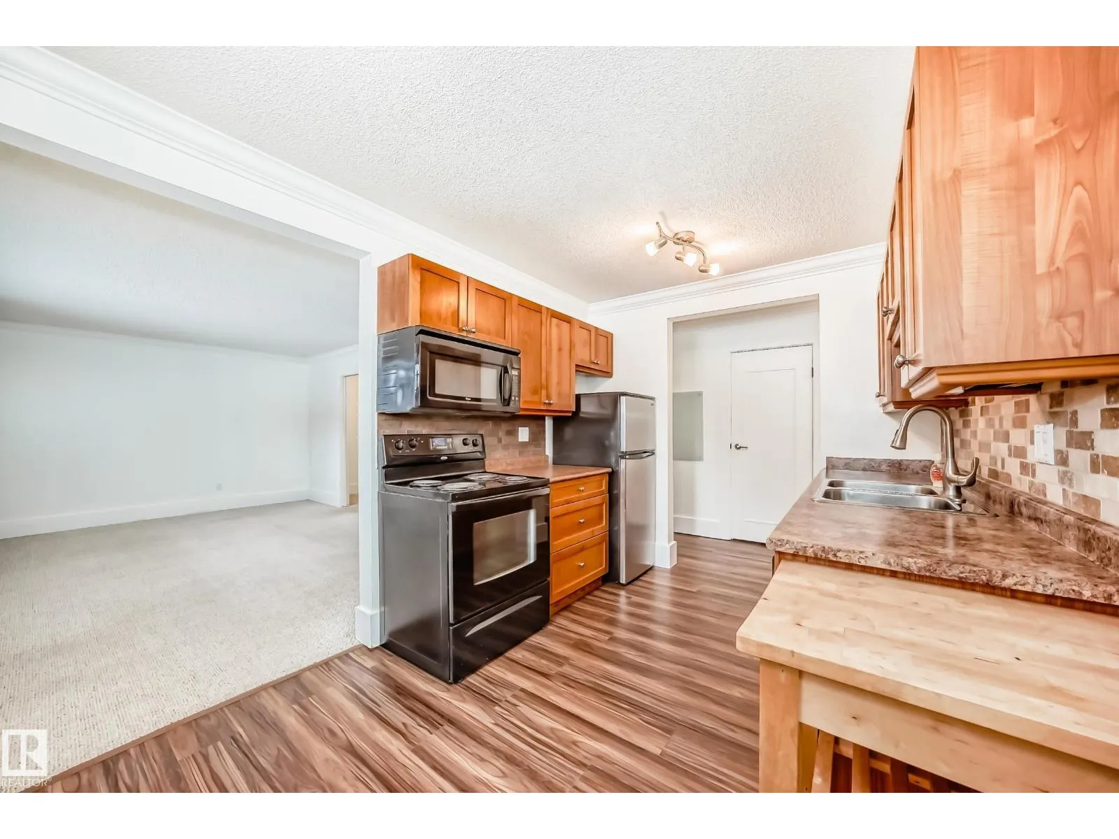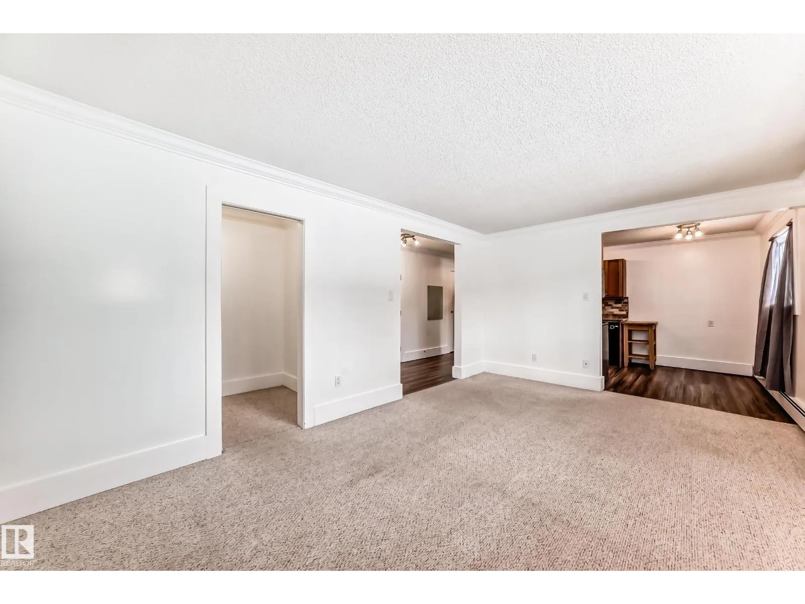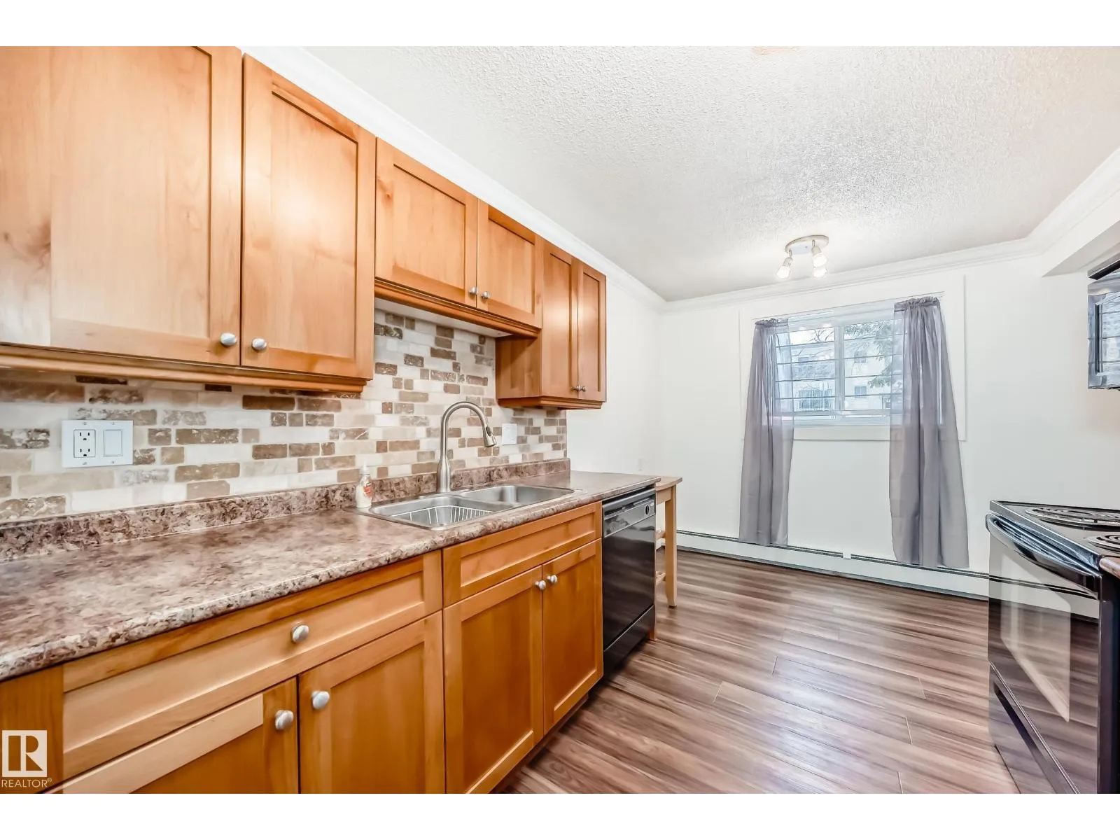 Beautifully Renovated 1 Bedroom + Den condo! Located in a fantastic central location, this suite is just minutes from NAIT, Kingsway Mall, and a variety of other amenities. The unit features a bright and open floor plan with a spacious living room and a fully renovated kitchen. Enjoy newer kitchen cabinetry and a cozy eat-in nook bathed in natural light from the large windows throughout. The home boasts modern finishes including new luxury vinyl plank flooring, crown moulding, and fresh carpet. Convenient in-suite laundry adds to the ease of everyday living. The 4-piece bathroom has been beautifully updated and includes a deep soaker tub with a shower and ceramic tile. Additional Highlights: · No age restriction · Pets allowed (with condo board approval) · Condo fees include heat & water · Immediate possession available! Perfect for a student, first-time homebuyer, or investorâthis affordable gem wonât last long. (id:27476)