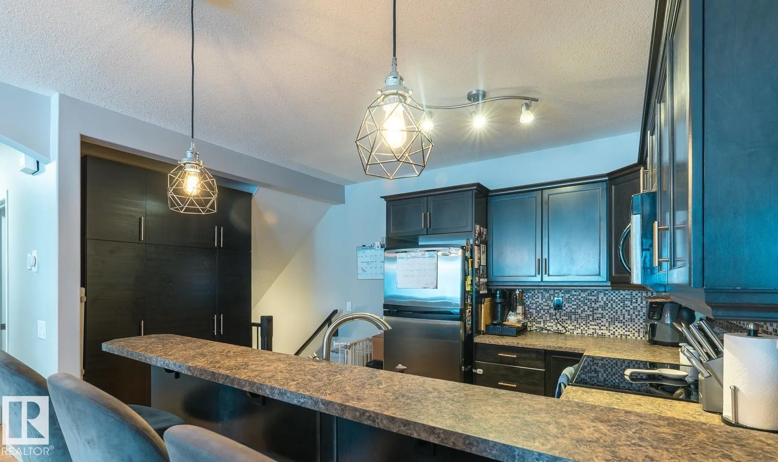 Welcome to this beautifully designed open-concept, 2 + 1 bedroom condo! Offering space, style and unbeatable location. The kitchen features abundant cupboards, generous counter space and raised eating bar that overlooks the dining area and living room. Perfect for every day living or entertaining. The spacious primary bedroom includes 3 piece ensuite and direct access to private deck. The generously sized second bedroom and 4 piece bathroom complete the main level. The fully finished lower level is impressively laid out with a large third bedroom, expansive family room, 4 piece bathroom, laundry room, flex area and storage. Single detached garage and parking stall. Stove is new 2025 and combi boiler replaced 2022. Located alongside the Millcreek Ravine, green space and walking trails. Close to shopping, transportation and quick access to Whitemud Drive and Anthony Henday. (id:27476)