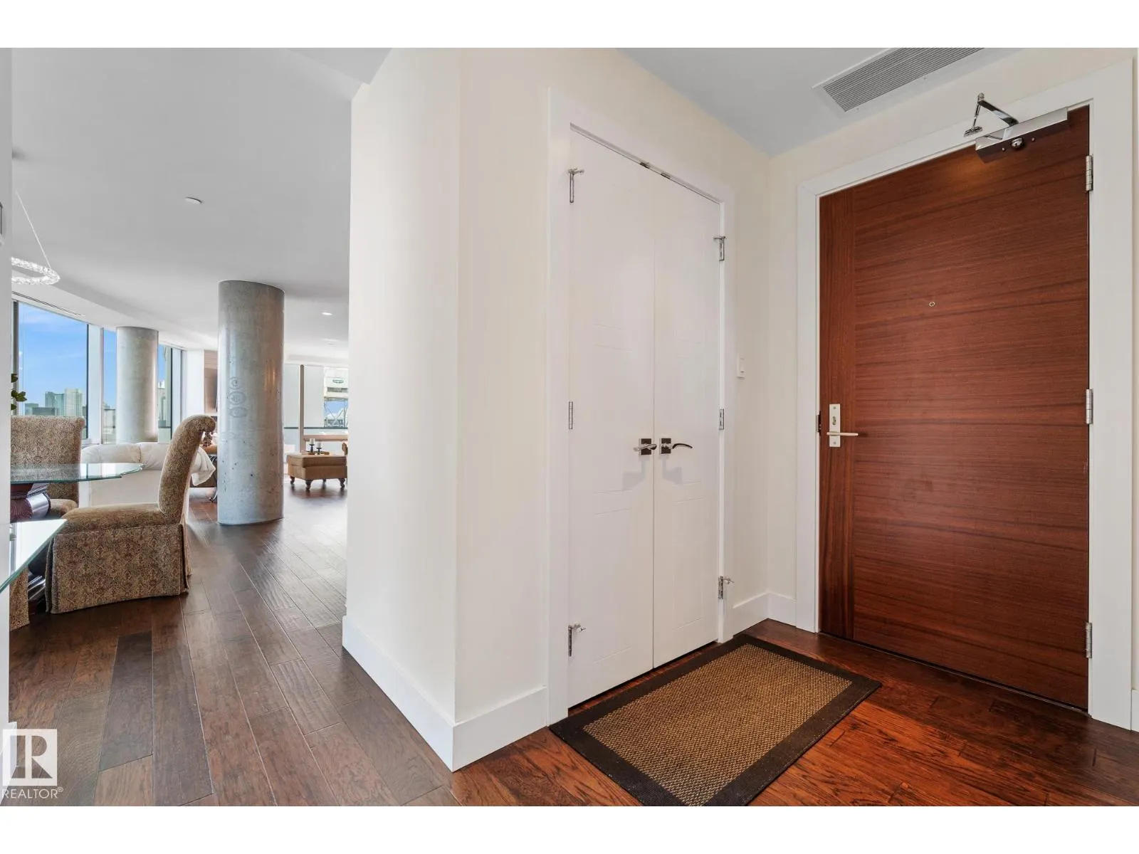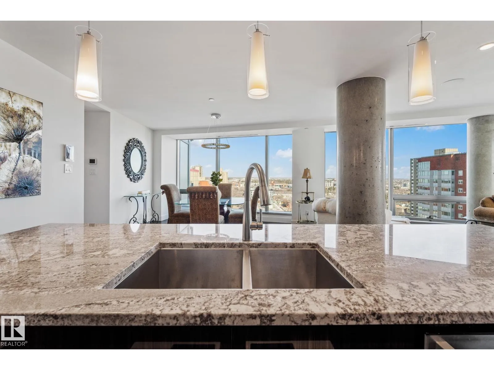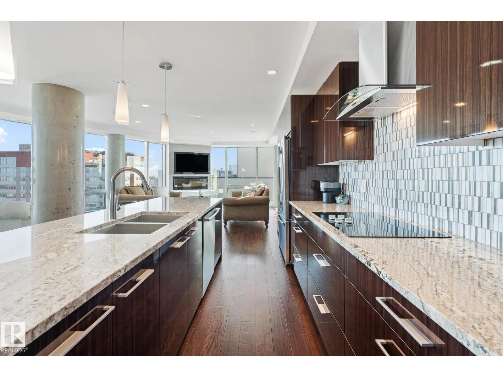 OPEN HOUSE: SAT MARCH 7th 1-3 PM. The Pearl with breathtaking views in the heart of Edmontonâs River Valley & Downtown. This Luxury open-concept 12th-floor condo has 2 bedrooms & 2 bathrooms, with U/G parking & storage cage (LEGAL & LABELED UNIT #278 on p5). The bright, spacious living room has beautiful views and steps out to your SE BALCONY WITH BREATHTAKING RIVER VALLEY VIEWS. Upgrades include engineered hardwood, granite counters, A/C, blinds, extra kitchen cabinetry, a Master ensuite with a steam shower, B/I closet organizers, and a balcony with city views. 2nd bedroom also has built-in closet organizers. First-class 24-hour CONCIERGE and amenities include the U/G visitor parking, car wash, fitness facility, and social room with an outdoor patio. Outside your door: Safeway, River Valley walking paths, Victoria Golf Coursea and restaurants. Walk to Rogers Place, MacEwan University and U of A. (id:27476)