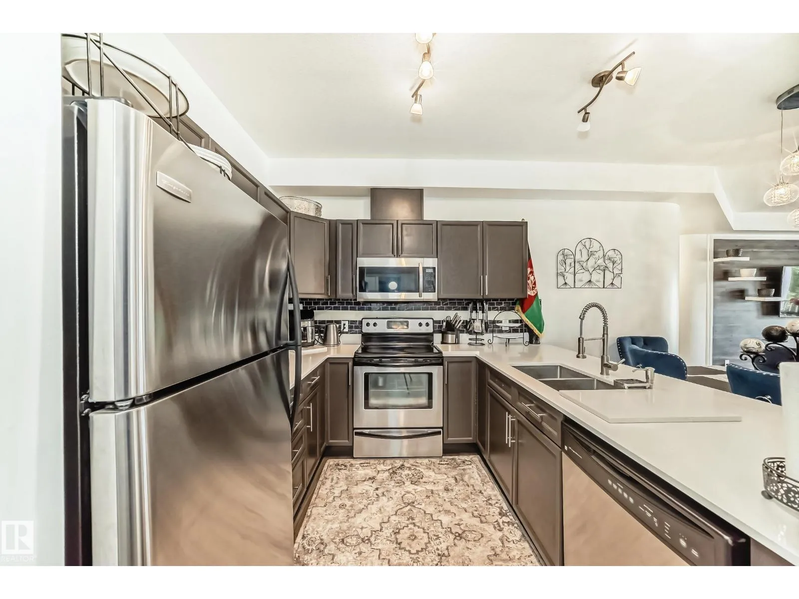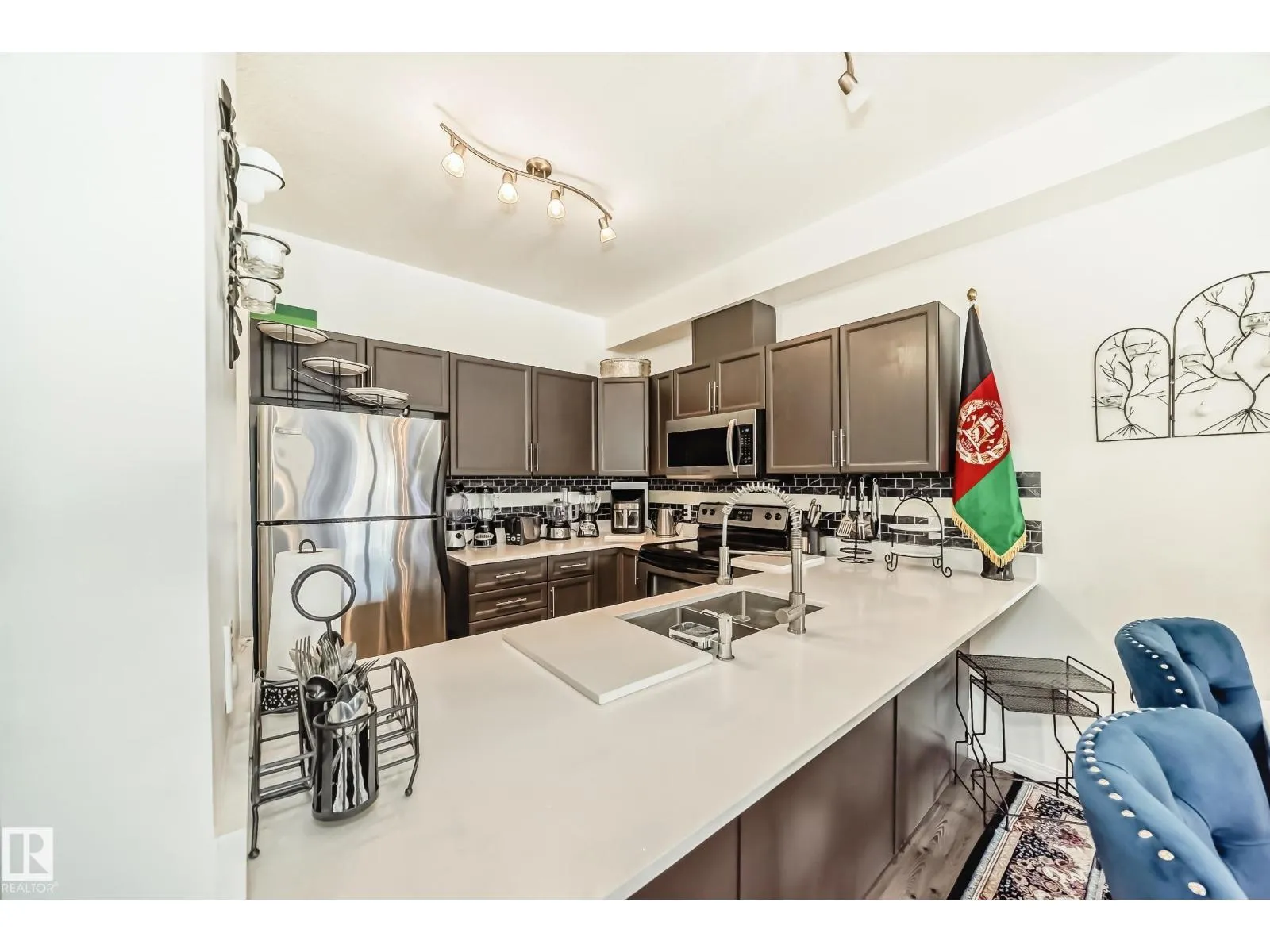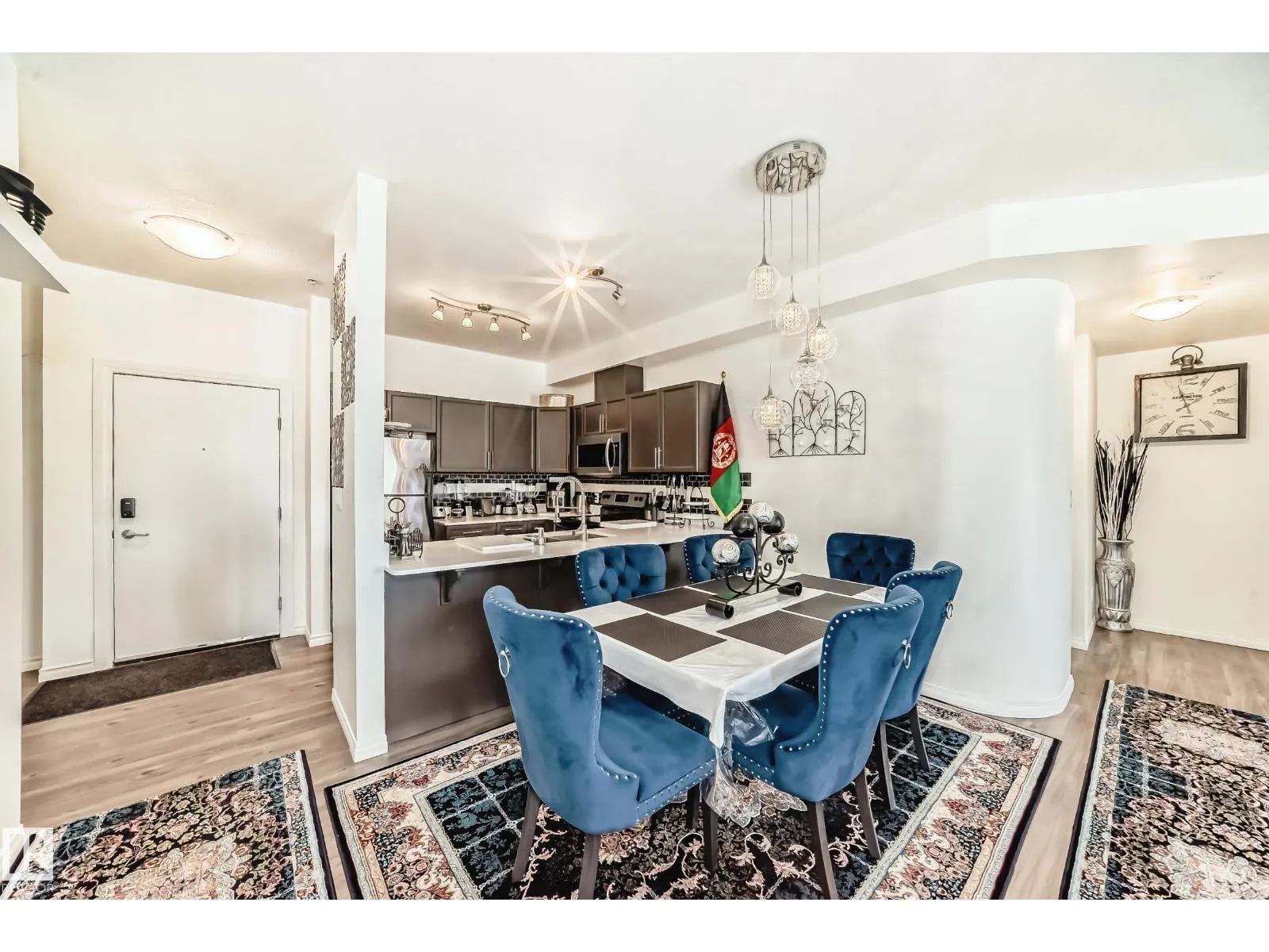 Excellent location! This beautiful suite has 9 ft ceilings and offers numerous upgrades including new vinyl planking throughout, quartz counter tops and much more. 2 spacious bedrooms, 2 full bathrooms, in-suite laundry, storage room and modern open concept living space. Impressive 1156 sq ft ensures ample room for comfortable living. An unbeatable location sets this property apart. Steps away from Clareview transit and LRT station, enjoy city living without the usual hustle. Grocery stores, countless restaurants, and amenities within walking distance make life convenient. Perks go beyond location. Access fantastic building amenities: car wash, rec room, exercise gym, and social room. Heated underground parking with storage cage adds luxury and convenience. Don't miss this remarkable opportunity for affordable luxury living. Come and see this gorgeous suite in the Estates of Clareview! (id:27476)