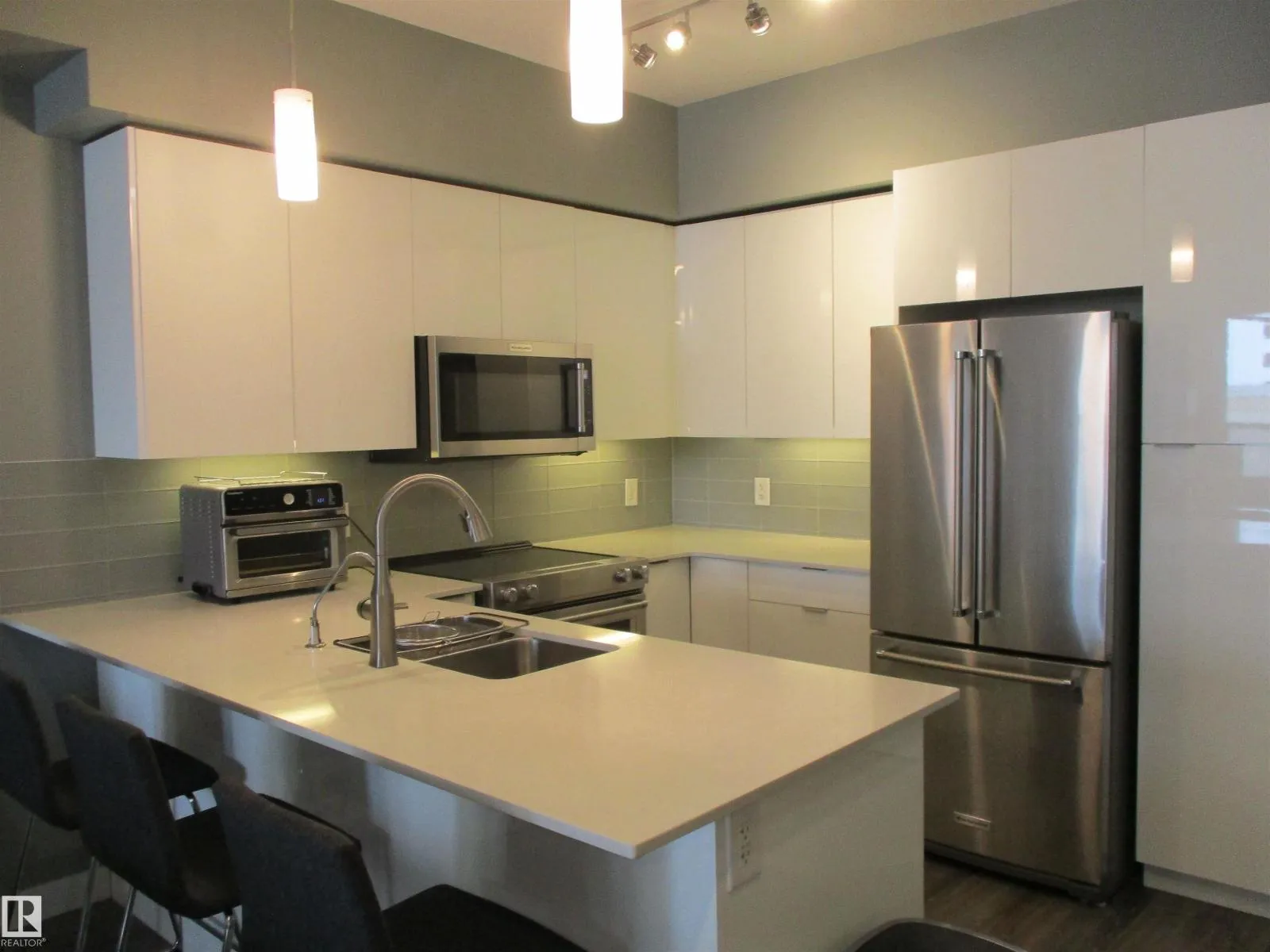 HONEY STOP THE CAR! Nestled off 99 Street & Saskatchewan Dr. - treat yourself to an OPULENT LUXURIOUS LIFESTYLE in the Strathcona community. This TOP FLOOR 2016 Build unit is steps to our RIVER VALLEY and Whyte Avenue, 9' Ceilings with DESIGNER Colours Quartz counter tops through out, IN-SUITE AIR CONDITIONING, CUSTOM CALIFORNIA CLOSETS THROUGHOUT. Special custom made matching closet off the fully equipped kitchen for extra pantry. This fully equipped Chef dream kitchen features ample counter and cupboard space as well Stainless steel appliances, Built in dishwasher, Water filtration system, Massive balcony to enjoy the summer months ahead + BBQ gas line. IN-SUITE WASHER/DRYER. Custom mirror in the Jack 'n Jill full bath w/tile surround. Sophisticated Walk Thru closet opens on to a large bedroom that easily fits a KING SIZED BED and More, Titled UNDERGROUND and HEATED PARKING stall. Smaller pets allowed with Board approval, This stunning open concept unit awaits your arrival, (id:27476)