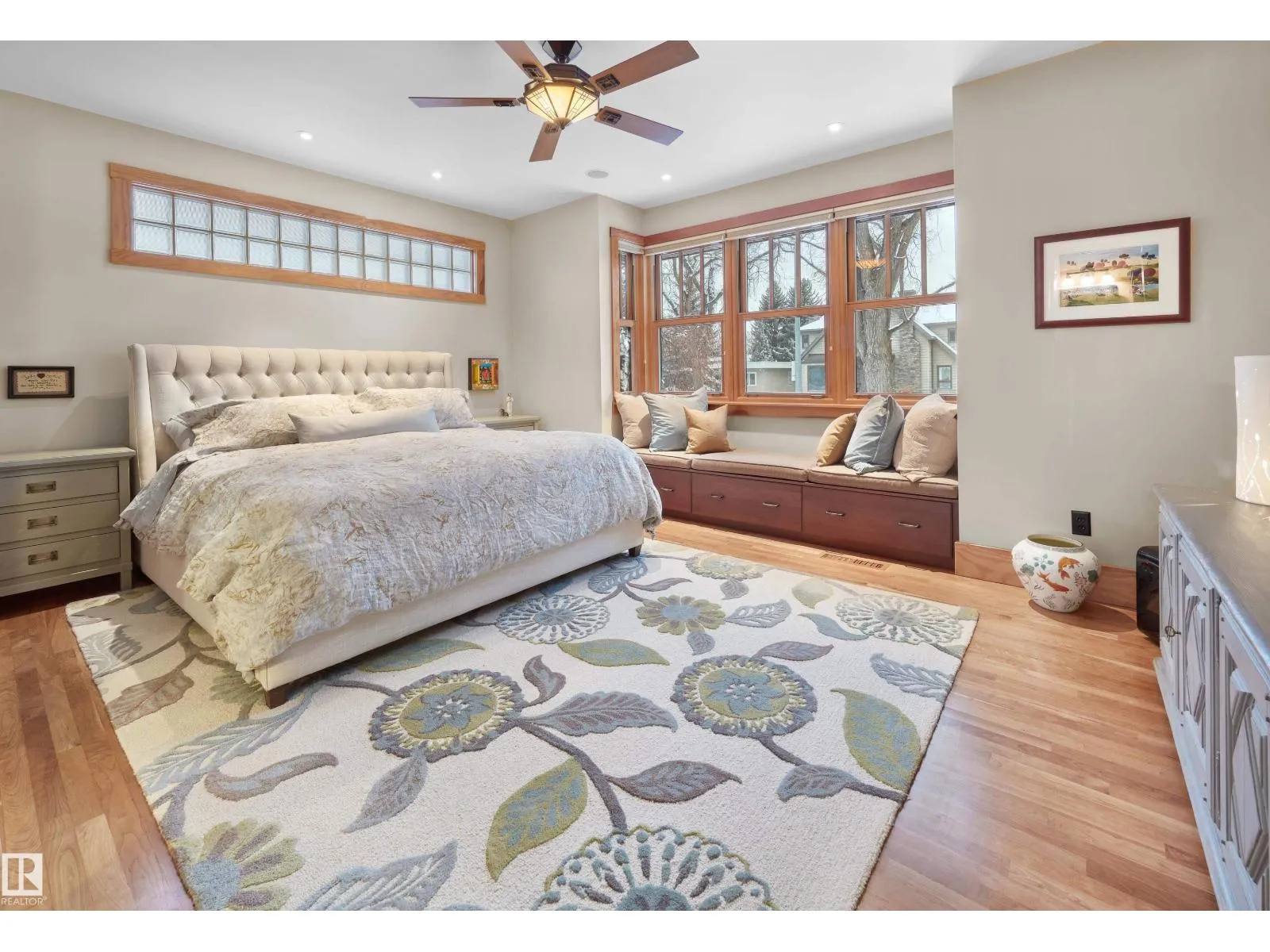 ELEGANT bungalow in sought-after Windsor Park, featuring a charming front porch and an unbeatable location! Just steps to the University of Alberta campus and hospital, minutes to the River Valley, and approximately 10 minutes to Downtown. This air-conditioned 1,693 sq. ft. home offers 9 ft. ceilings and a functional layout with a total of 3 bedrooms plus a main-floor office (or 4th bedroom). The bright, open-concept main floor showcases cherry hardwood floors, a dream island kitchen with quality stainless steel appliances, large windows, and a spacious great room with fireplace. The fully finished basement includes a t.v. or media room, games room/gym area, walk-in pantry, generous storage, and the comfort of in-floor heating. A garden door leads to a covered deck and beautifully landscaped backyard with patio, mature trees, and flower beds. Completing the home is an oversized double garage and additional rear parkingâa rare opportunity in one of Edmontonâs most desirable neighbourhoods. (id:27476)