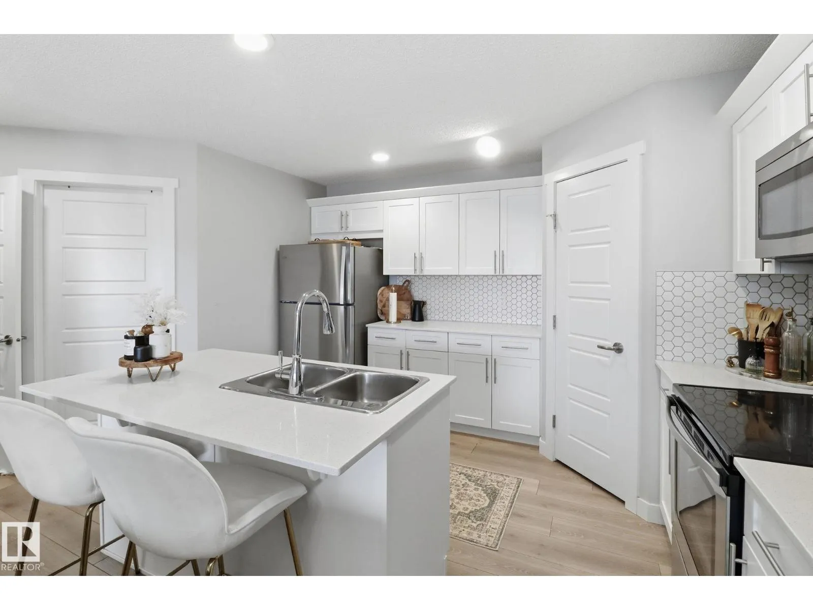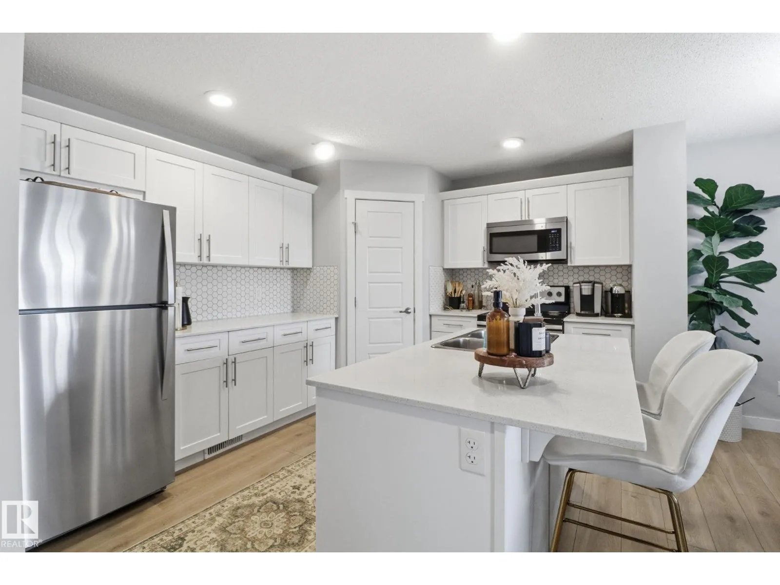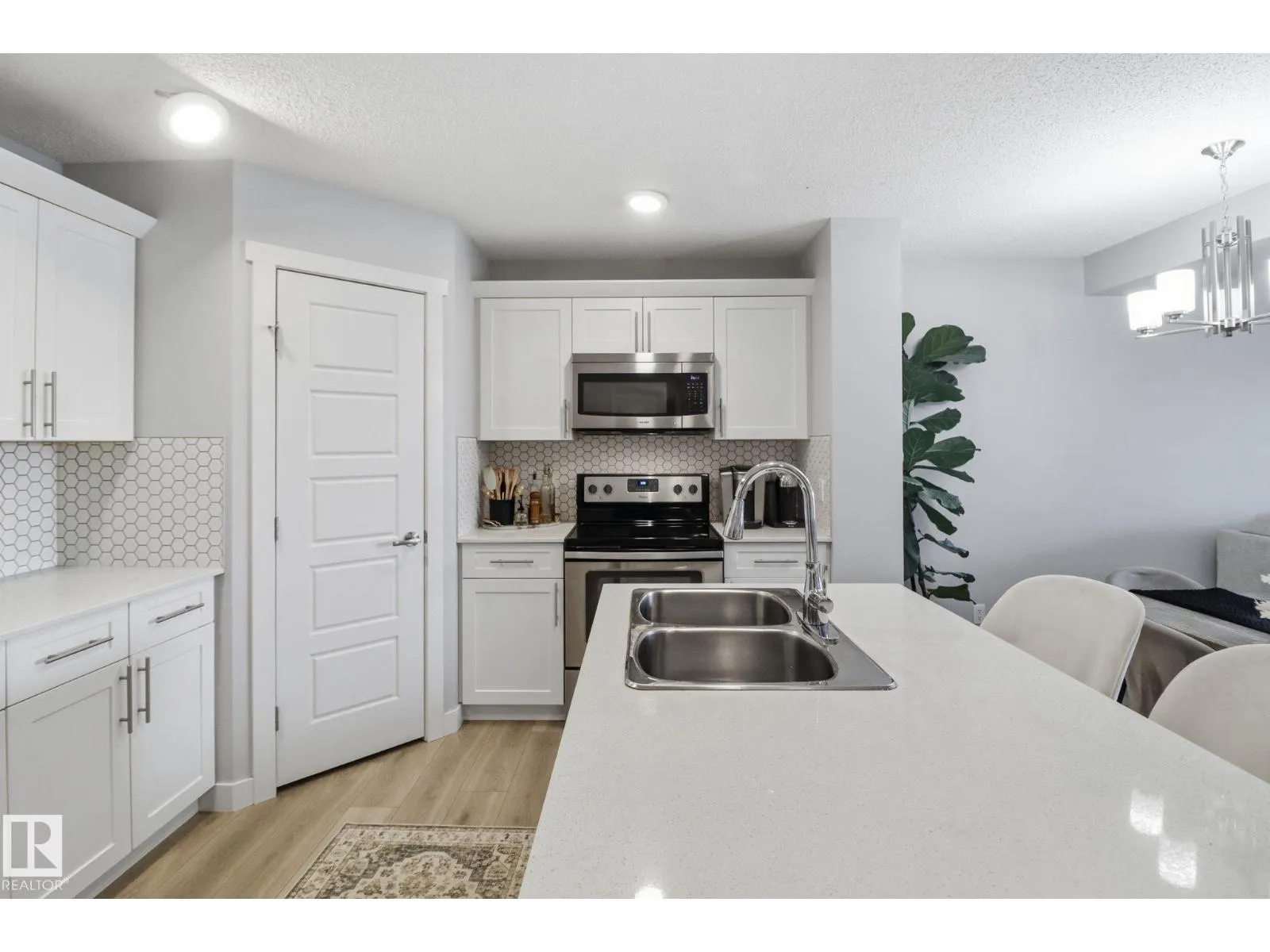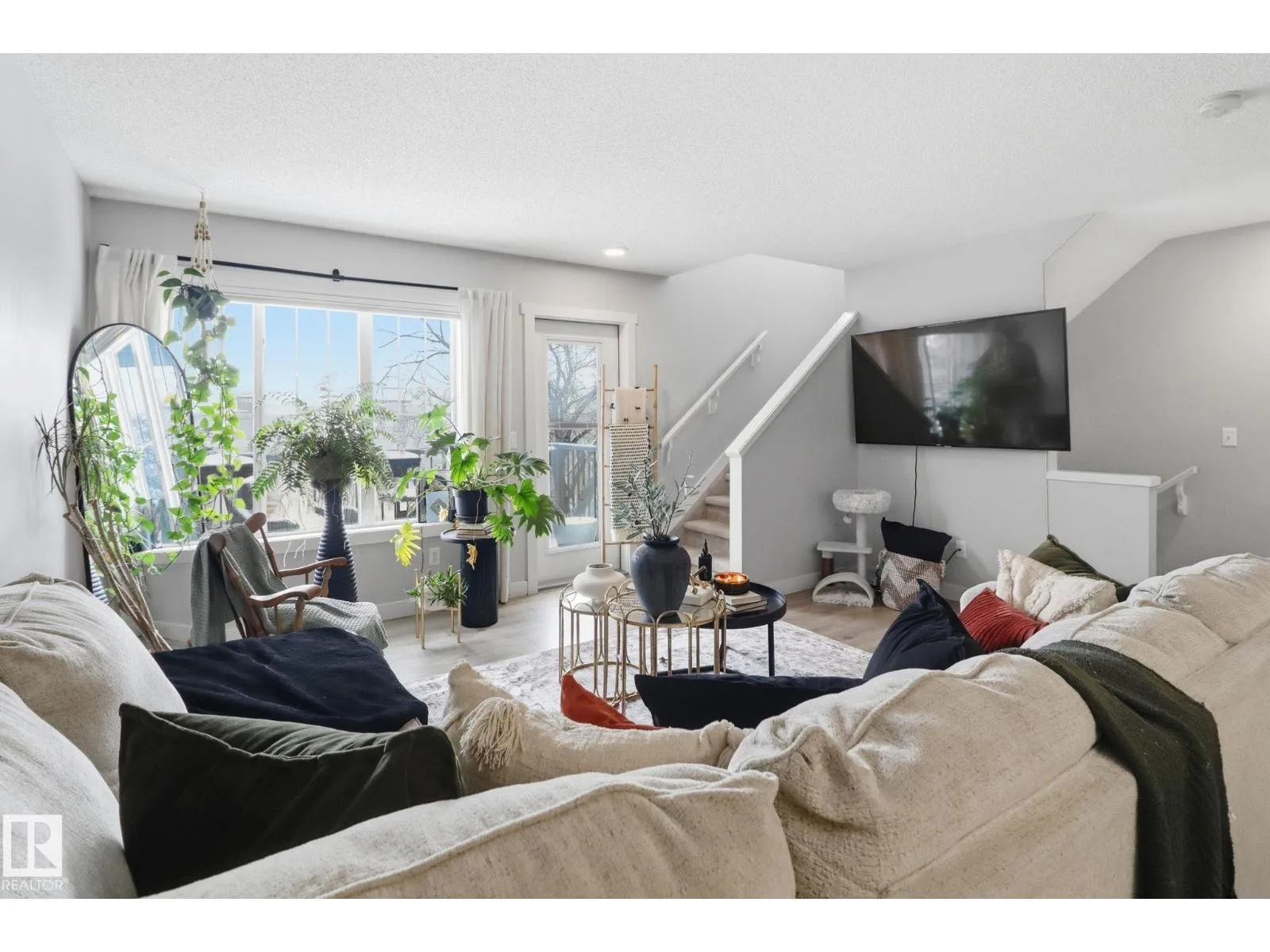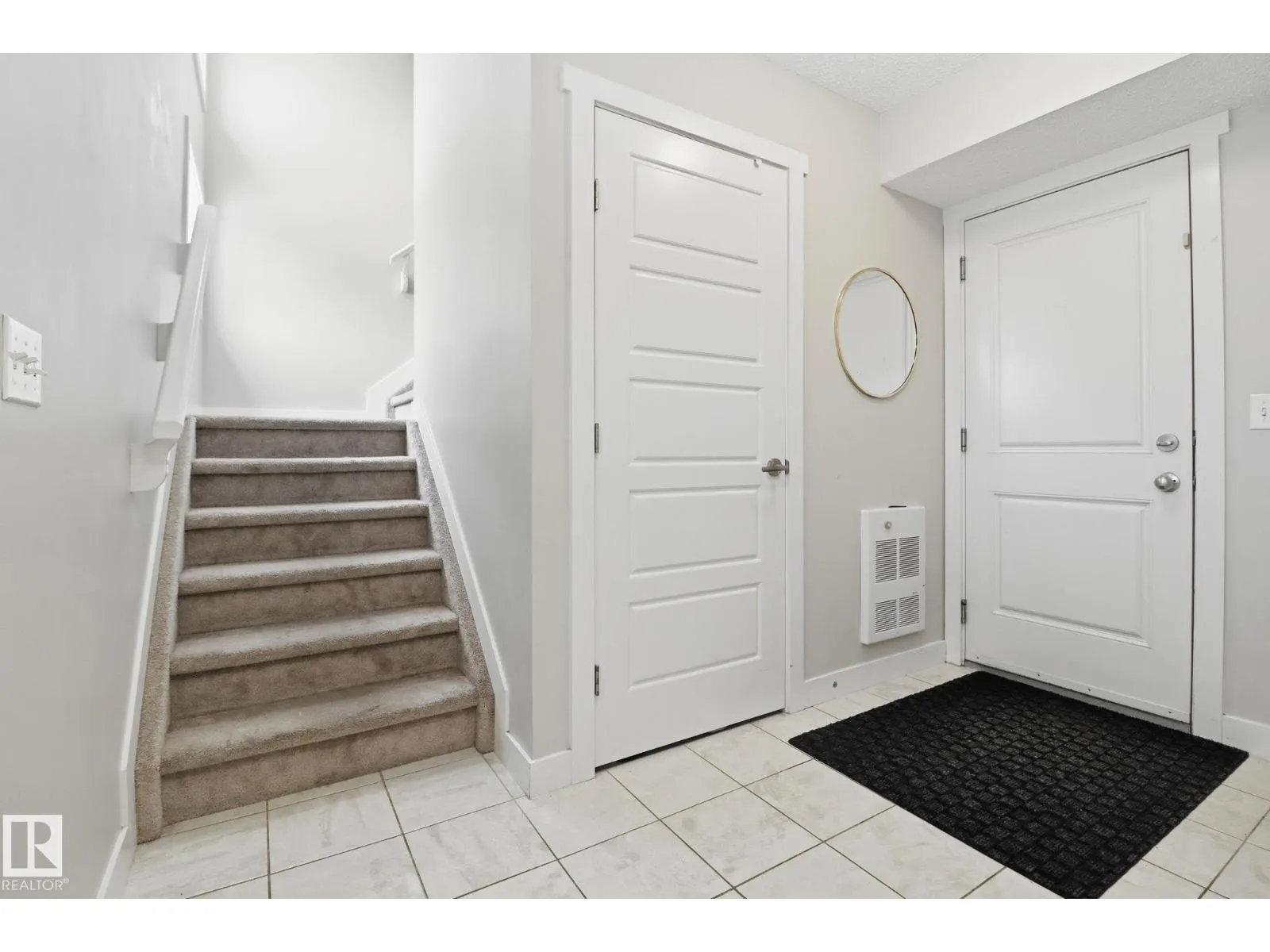 Beautiful 3-bed, 2.5-bath townhouse in Pembina (NW Edmonton), built in 2017 and move-in ready, featuring a double attached garage and low condo fees of $238.77/month. Ideally located just north of 137 Ave with quick access to Yellowhead Trail and Anthony Henday Drive. Enjoy the open floor plan with a flex room at the entrance, perfect for a home office. The spacious kitchen offers ample cupboard space, a large island, stainless steel appliances, and quartz countertops. Bright living and dining areas feature large windows and access to a generous deck. Upstairs includes three good-sized bedrooms, including the primary suite with a walk-in closet and private ensuite, plus a full main bath. Perfect for first-time buyers or investors, close to shopping and amenities, with extra garage storage space. This well-maintained home offers comfort, style, and convenience in a family-friendly community with easy access to schools, parks, public transit, and major routes for smooth daily commuting. (id:27476)