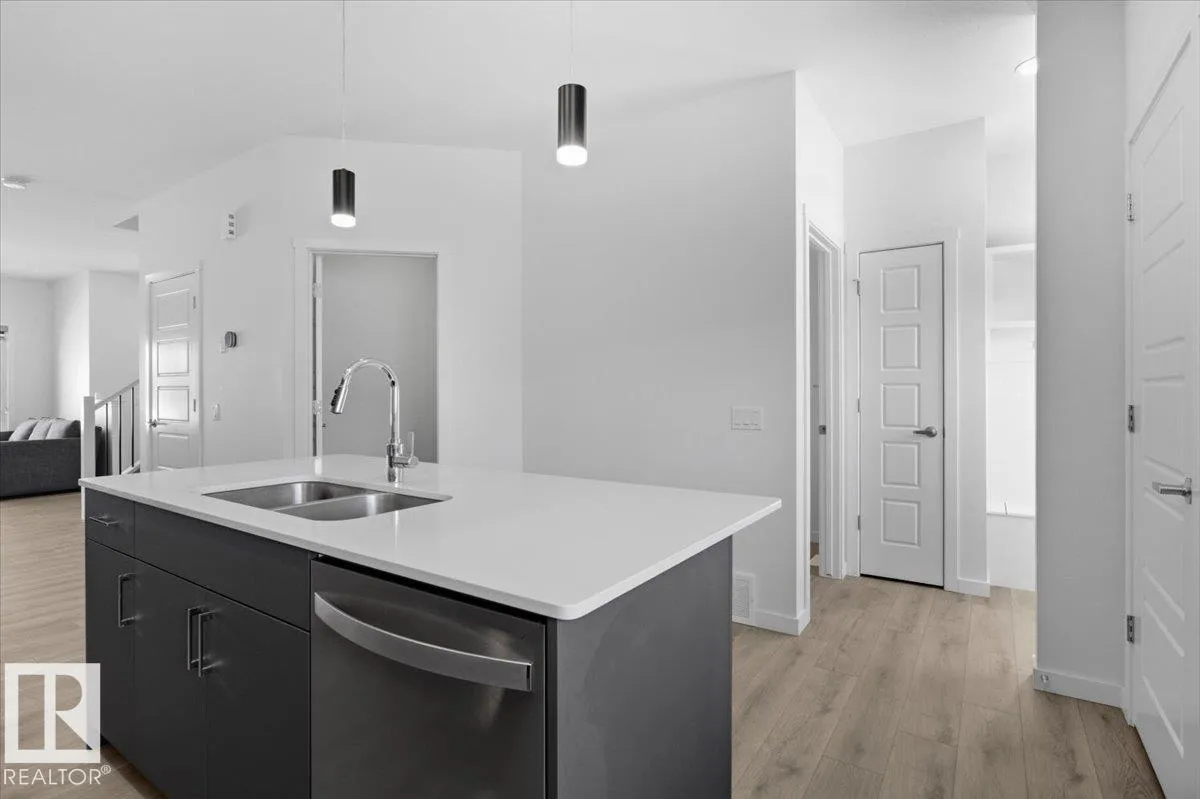 This beautifully crafted 2024 City Homes Master Builder property offers modern design and exceptional functionality. The spacious kitchen serves as the heart of the home, overlooking both the backyard and main living areas. It features a stylish tiled backsplash, a generous island with eating bar, stainless steel appliances, quartz countertops, an undermount sink, excellent lighting, and a convenient pantry. The open-concept kitchen, dining, and living spaces are finished with durable luxury vinyl plank flooring, complemented by a den just off the kitchen. Upstairs, the inviting primary suite includes a large walk-in closet and a luxurious 5-piece ensuite complete with a stand-alone soaker tub, dual sinks, and a full walk-in shower. Two additional well-sized bedrooms, a 4-piece bathroom, and upstairs laundry round out the second level.The basement offers extra-height ceilings and awaits your future development ideas. Landscaping is complete in both the front and back yards. (id:27476)