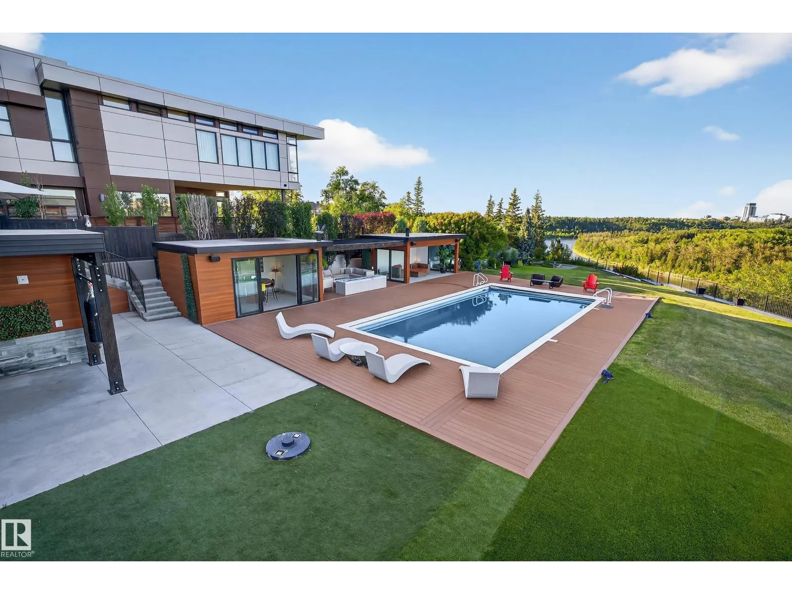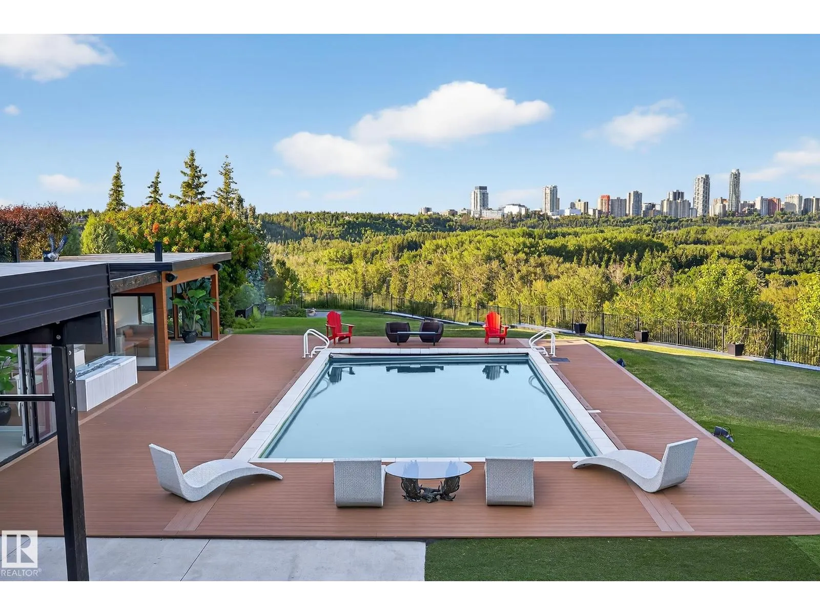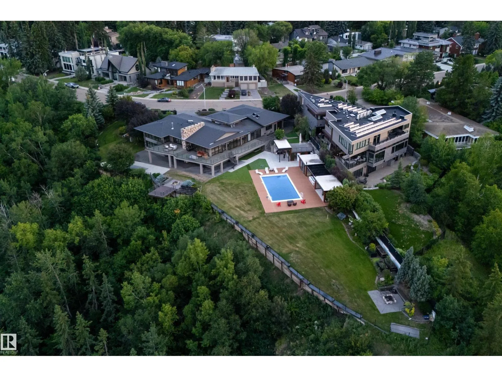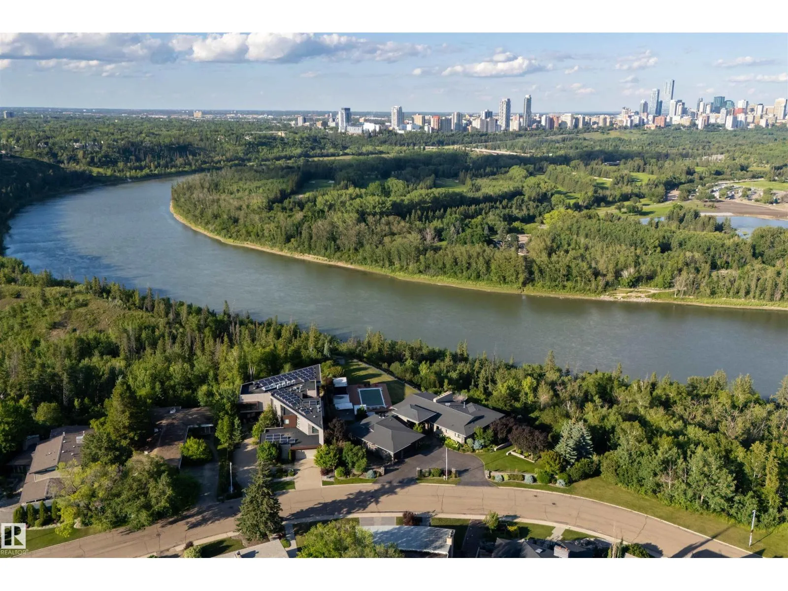 An iconic address with world-class views. Welcome to 13758 Valleyview Drive. Set on an extraordinary 49,000+ sq ft lot with unobstructed panoramic views of downtown Edmonton and the river valley, this custom-built estate offers over 6,500 sq ft of elevated living. Every detail has been crafted for luxury, from the grand chefâs kitchen and open-concept living spaces to the expansive main deck designed for upscale entertaining. Nearly every room captures breathtaking vistas. The upper level is anchored by a lavish primary retreat with spa-like ensuite, boutique-style walk-in closet, sitting lounge, and wet bar. The walkout basement features a private theatre, billiards room, wet bar, office, and guest suite. Step outside to your resort-style backyard with a spectacular in-ground pool and mature landscaping. A rare opportunity on one of Edmontonâs most prestigious streets. (id:27476)