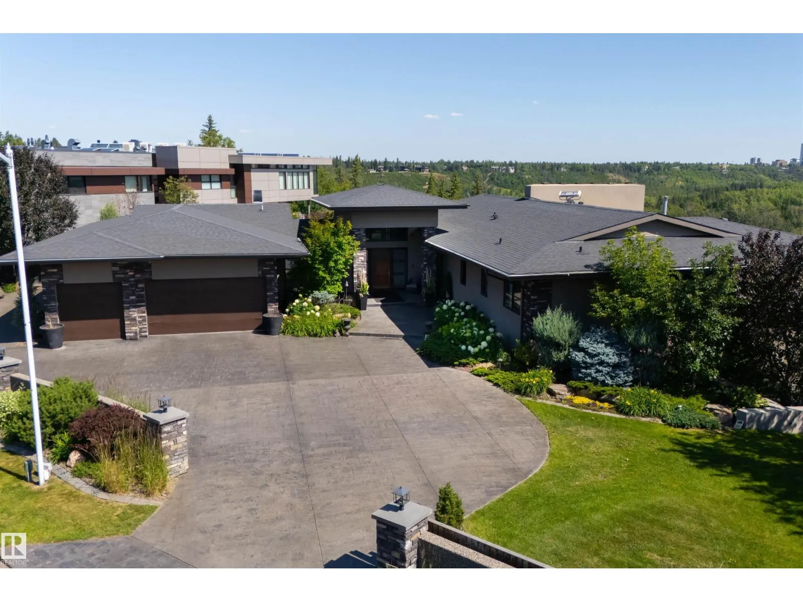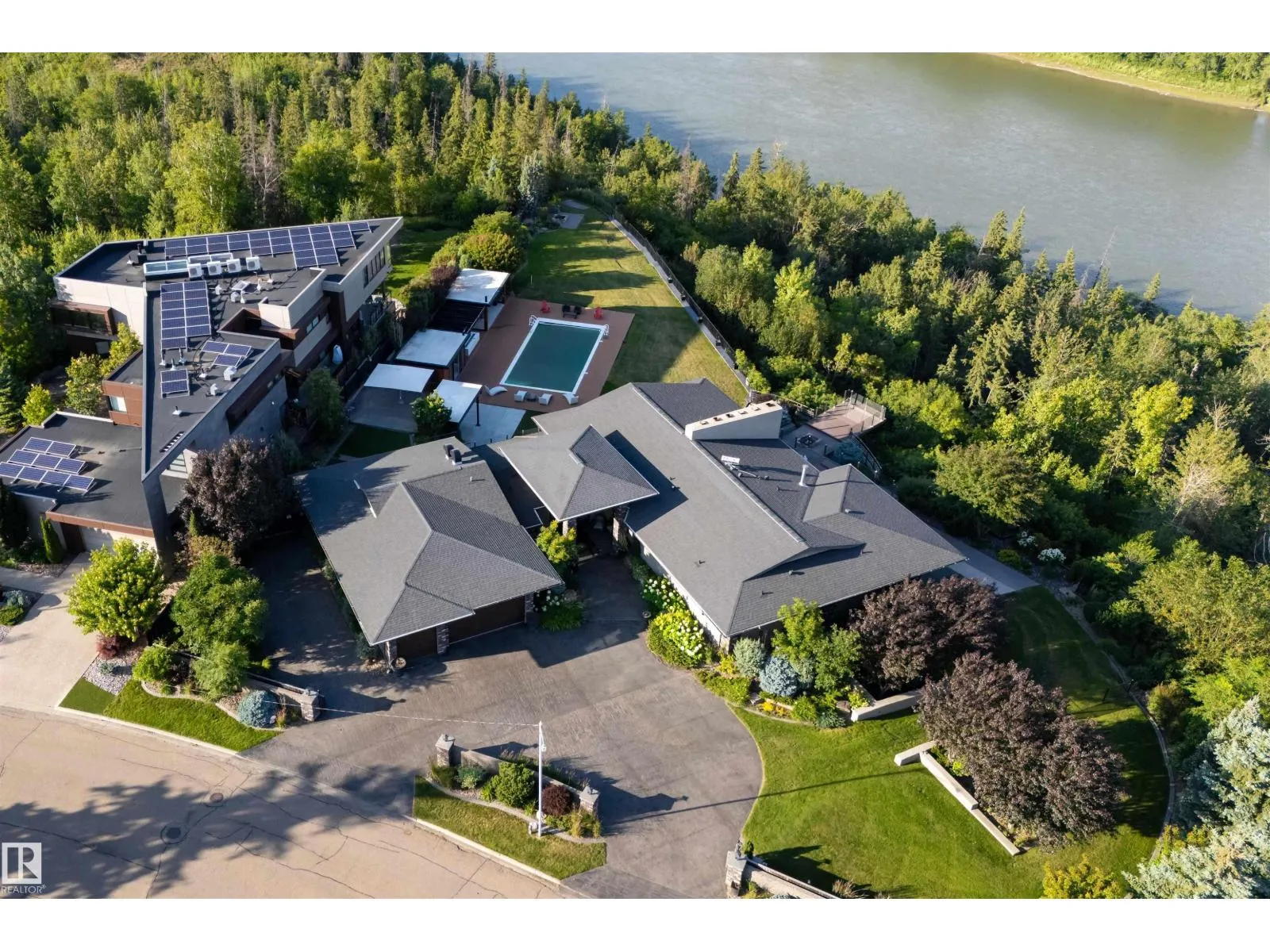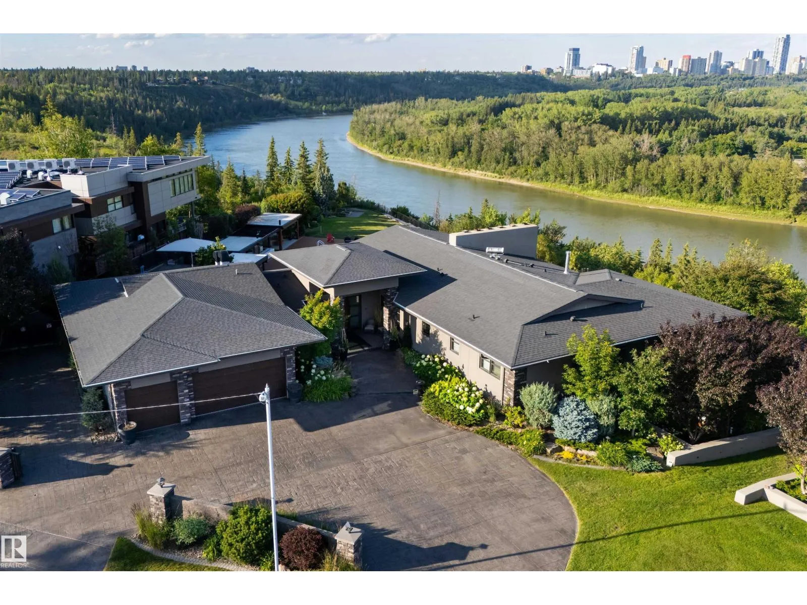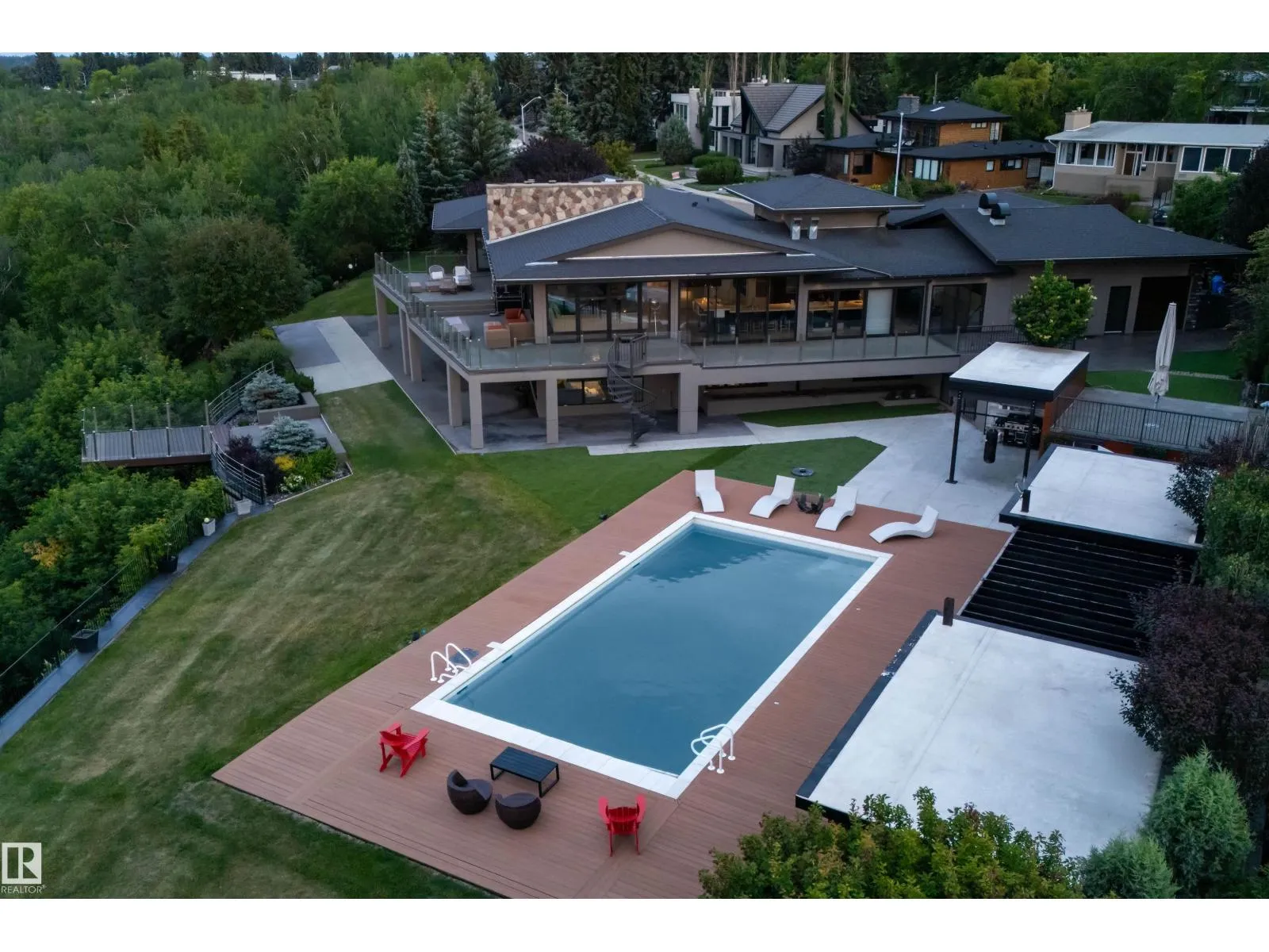 An iconic address with world-class views. Welcome to 13758 Valleyview Drive. Set on an extraordinary 49,000+ sq ft lot with unobstructed panoramic views of downtown Edmonton and the river valley, this custom-built estate offers over 6,500 sq ft of elevated living. Every detail has been crafted for luxury, from the grand chefâs kitchen and open-concept living spaces to the expansive main deck designed for upscale entertaining. Nearly every room captures breathtaking vistas. The upper level is anchored by a lavish primary retreat with spa-like ensuite, boutique-style walk-in closet, sitting lounge, and wet bar. The walkout basement features a private theatre, billiards room, wet bar, office, and guest suite. Step outside to your resort-style backyard with a spectacular in-ground pool and mature landscaping. A rare opportunity on one of Edmontonâs most prestigious streets. (id:27476)