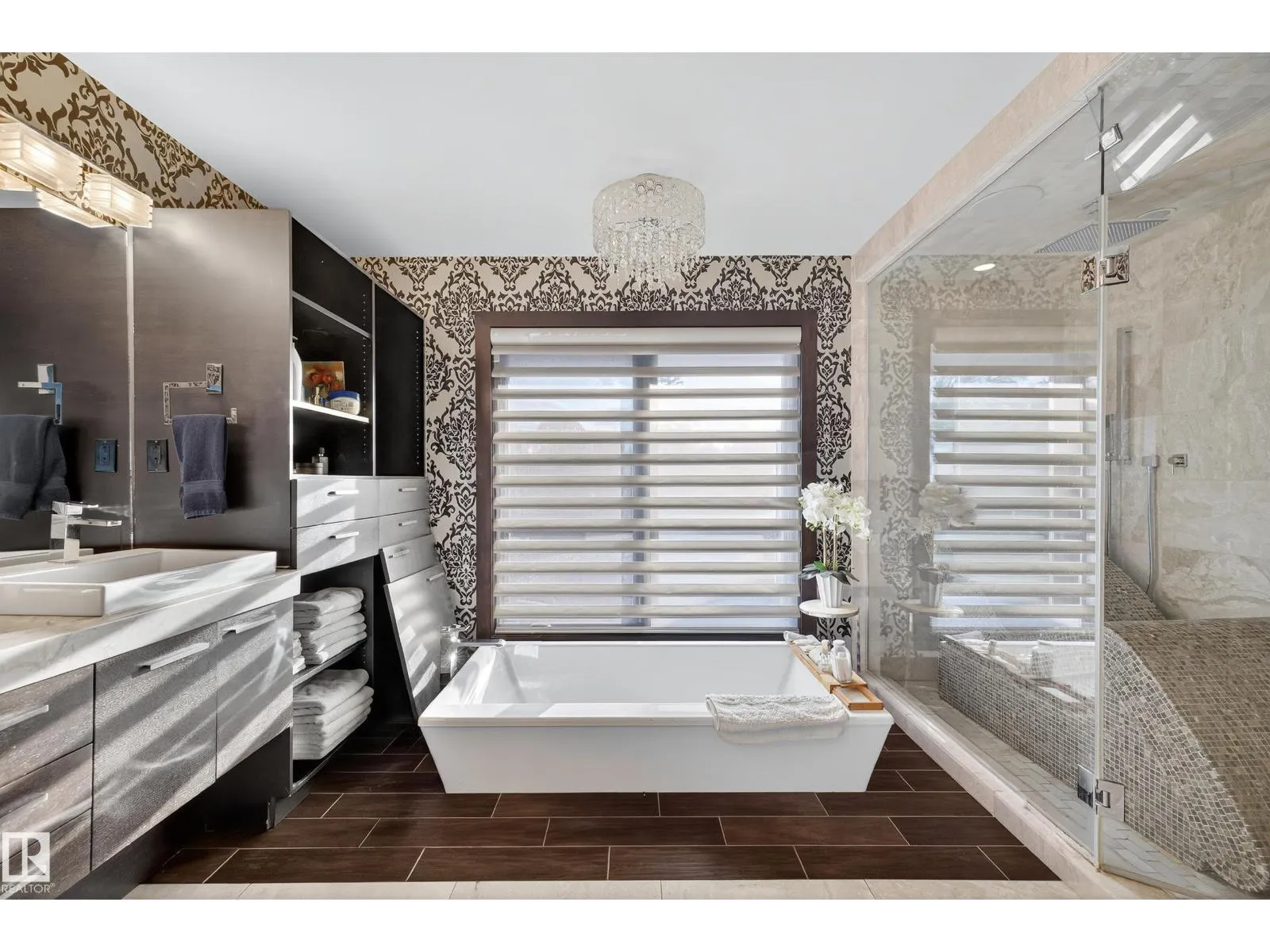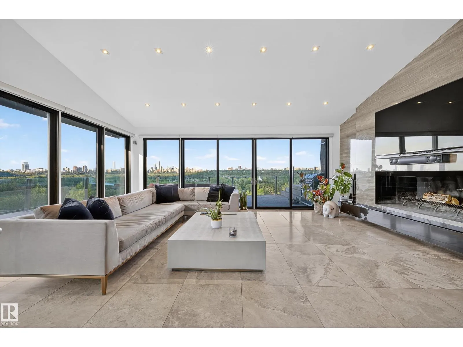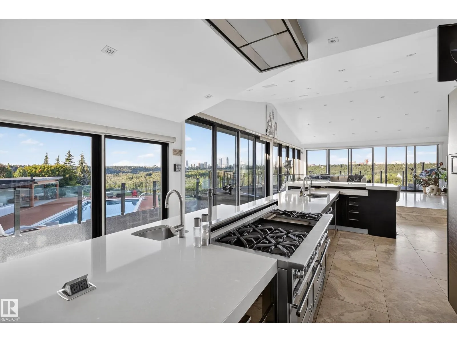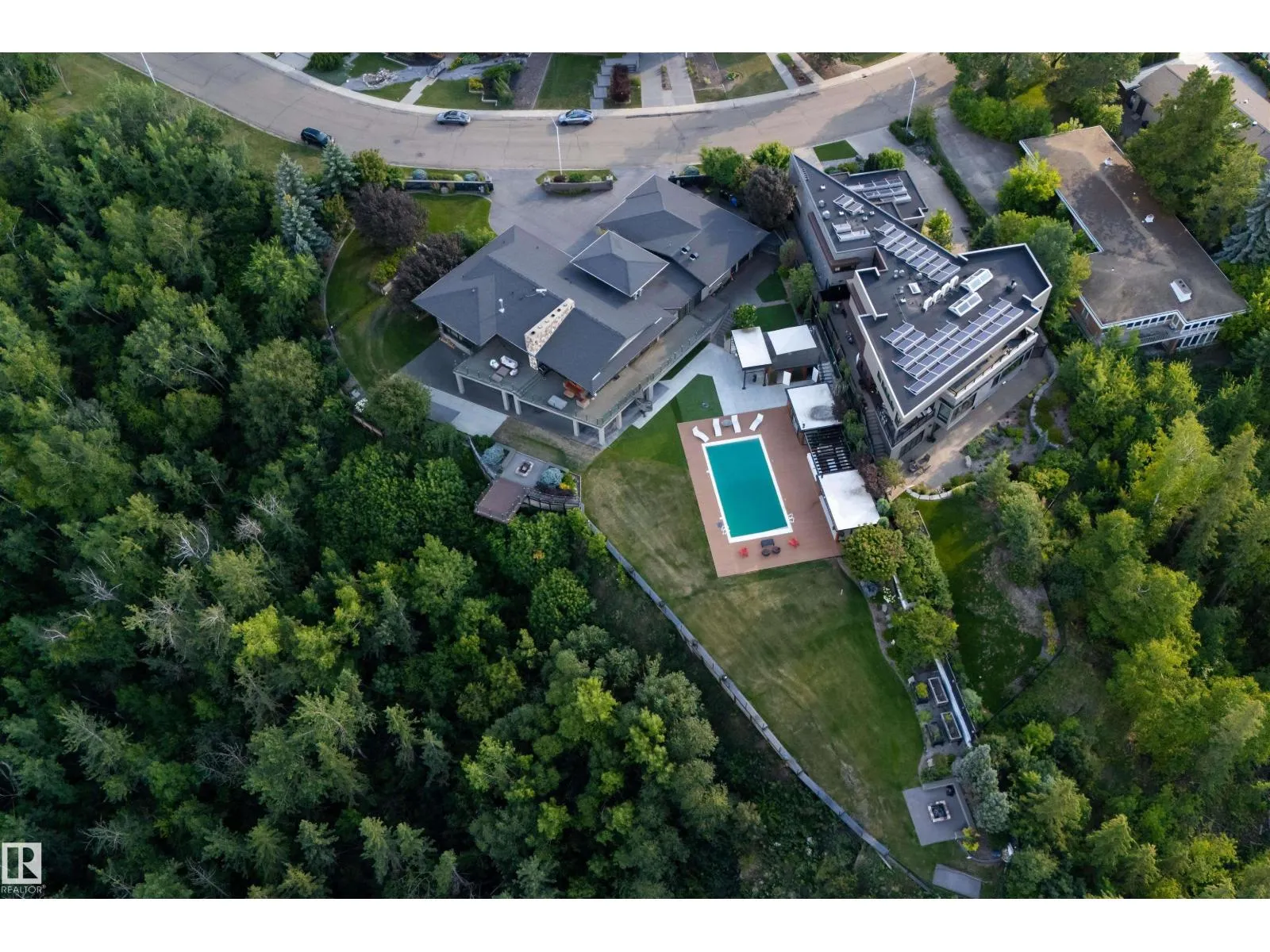 An iconic address with world-class views. Welcome to 13758 Valleyview Drive. Set on an extraordinary 49,000+ sq ft lot with unobstructed panoramic views of downtown Edmonton and the river valley, this custom-built estate offers over 6,500 sq ft of elevated living. Every detail has been crafted for luxury, from the grand chefâs kitchen and open-concept living spaces to the expansive main deck designed for upscale entertaining. Nearly every room captures breathtaking vistas. The upper level is anchored by a lavish primary retreat with spa-like ensuite, boutique-style walk-in closet, sitting lounge, and wet bar. The walkout basement features a private theatre, billiards room, wet bar, office, and guest suite. Step outside to your resort-style backyard with a spectacular in-ground pool and mature landscaping. A rare opportunity on one of Edmontonâs most prestigious streets. (id:27476)