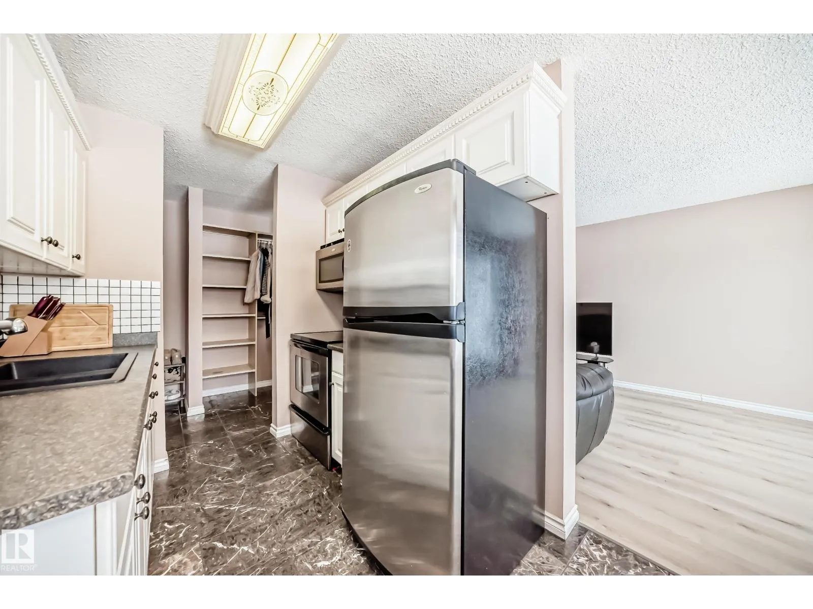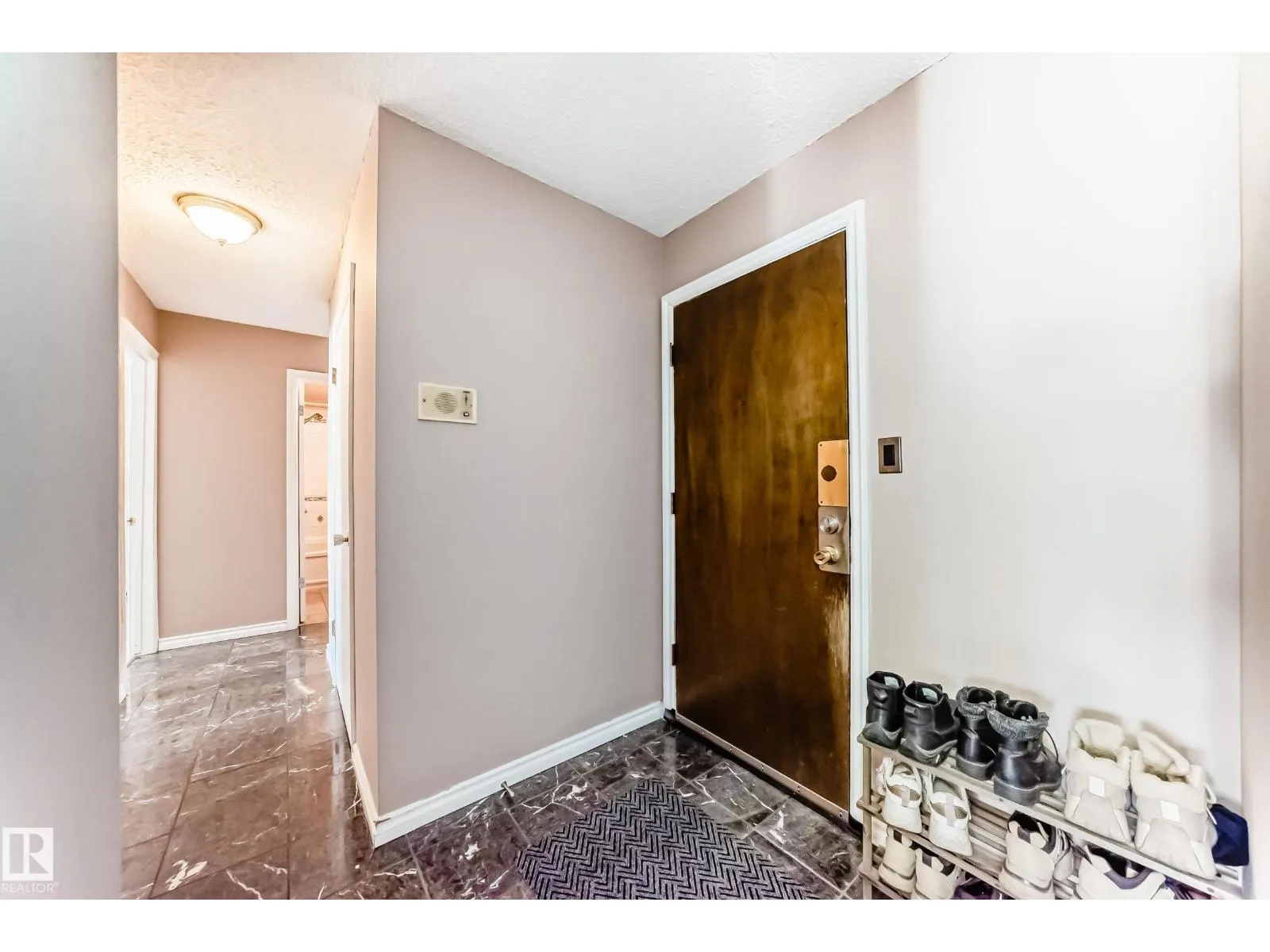 BEST LOCATION IN THE COMPLEX!! An 18+ building with condo fees that cover ALL Utilities. This spacious 2 bed room S.E. facing corner unit gives you morning sun, park views and your parking stall view as well. This spacious ground-floor unit has been recently upgraded to complement the kitchen, dining room, hallway and bathroom marble flooring. Vinyl plank in the bedrooms and living room along with fresh paint throughout. The living room sliding glass patio doors provide access to greenspace and a communal garden. Ample storage and large bedrooms round out this above-average unit. Plaza 2000 is located between retail and services to the north and Caernarvon Park to the south. It is also conveniently located near shopping, the YMCA and the future LRT expansion. A must-see for buyers looking for a 2 bedroom Northside condo. (id:27476)
