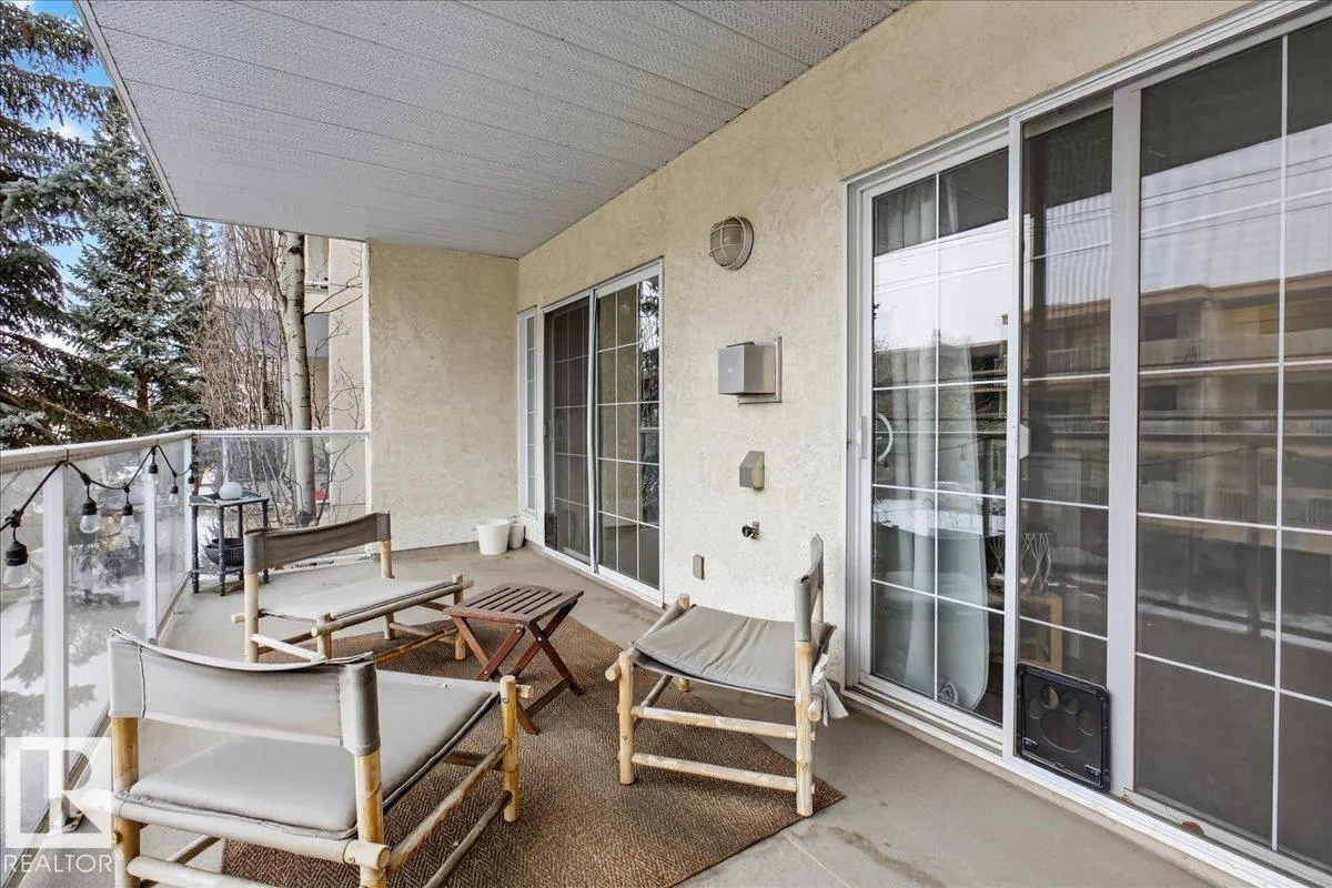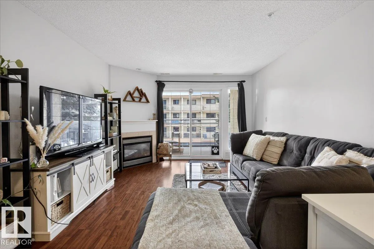 This spacious 1061 sq ft 2 bed, 2 bath + den Glenora Mansion condo in the heart of Westmount features urban living at its best. Steps away from the Brewery District, easy access to downtown, Ice District, Grant MacEwan and the UofA - lots of shopping, entertainment and dining options within walking distance. The west facing unit is filled with lots of natural light, has AC, and a large balcony with natural gas BBQ hookup perfect for relaxing whatever the season. Features include: large open concept living room/ dining room, maple cabinetry, stainless steel appliances, laminate flooring, corner gas fireplace, generous primary bedroom with walk-in closet and ensuite with soaker tub and separate walk-in shower, den/ flex space, insuite stacked washer/dryer. Other building features include titled heated underground parking (1 assigned stall + assigned storage in front of parking stall) close to elevator, car wash/vacuum area, 2 level exercise room and steam room. Mustsee unit with so much to offer! (id:27476)