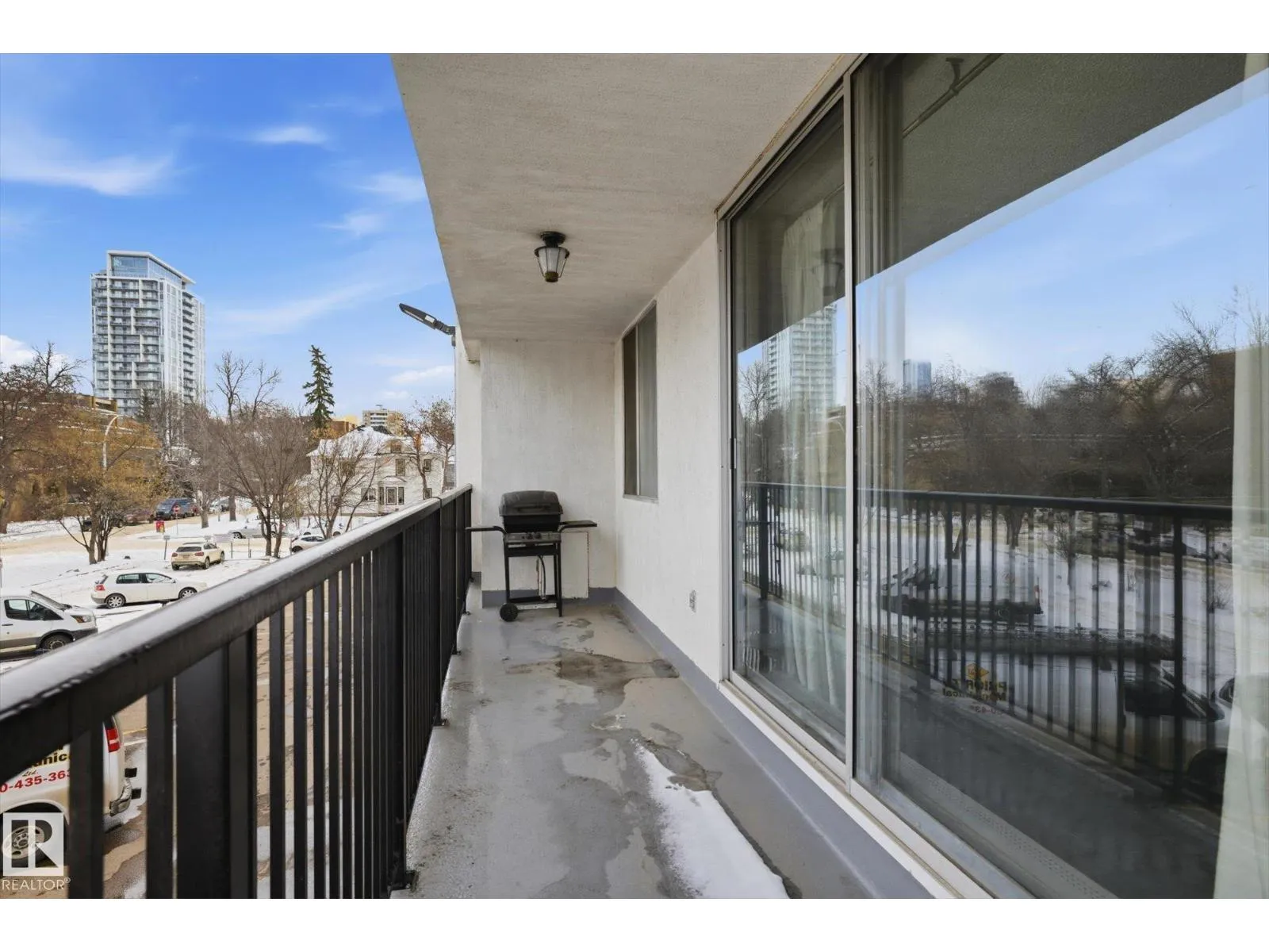 Quick Possession Available in the Iconic Valhalla Building! This 1-bed, 1-bath second-floor condo has been nicely updated over the years, including laminate flooring, a full kitchen renovation with quartz countertops, backsplash & cabinets, plus an updated 4pc bathroom. It also features a good-sized balcony, in-suite storage room & comes with one heated underground parking stall (with plenty of additional street & visitor parking). The property offers a ton of in-house amenities, all included in your condo fees: utilities (heat, electricity & water), same-floor free laundry, a salt water pool paired with a nicely equipped gym overlooking the river valley, a south-facing outdoor patio, party/game room, central A/C & professional management with an in-house caretaker. Pet & Child friendly. Steps from the river valley, walking trails, golf course, public transit, brewery district & everything downtown living has to offer! (Some photos have been virtually staged). (id:27476)