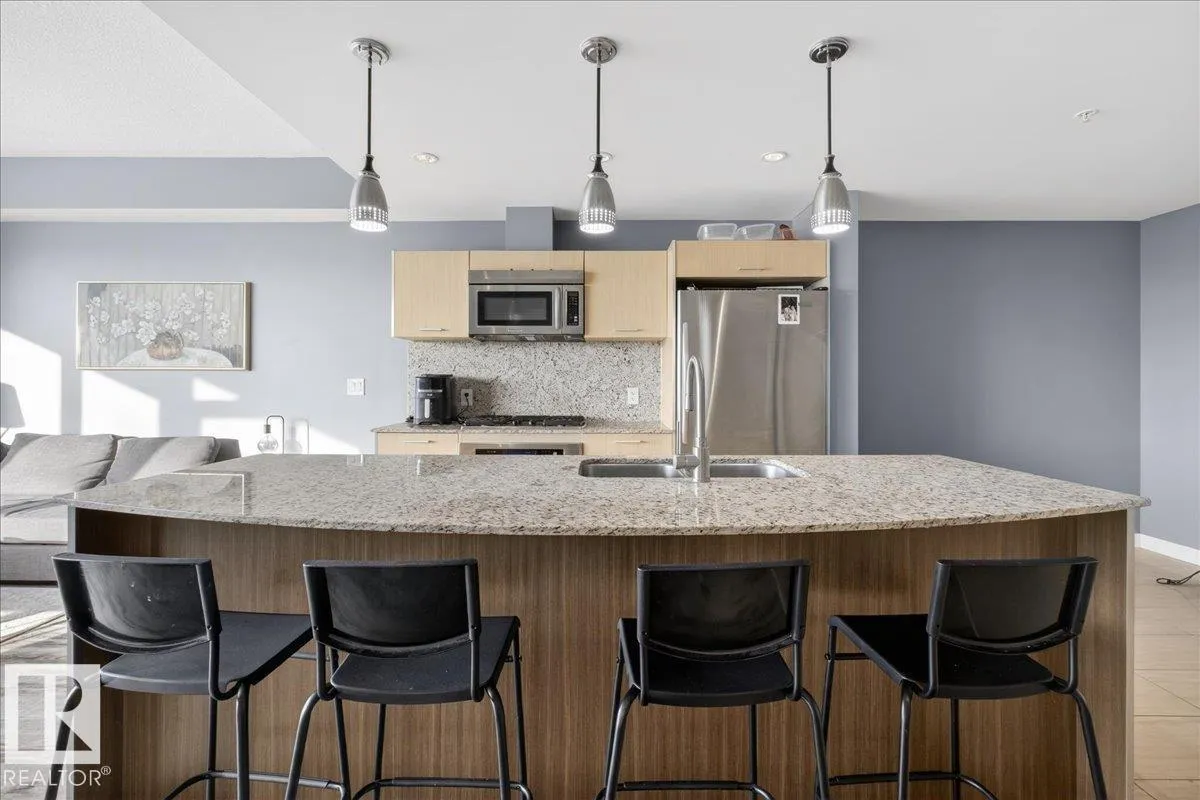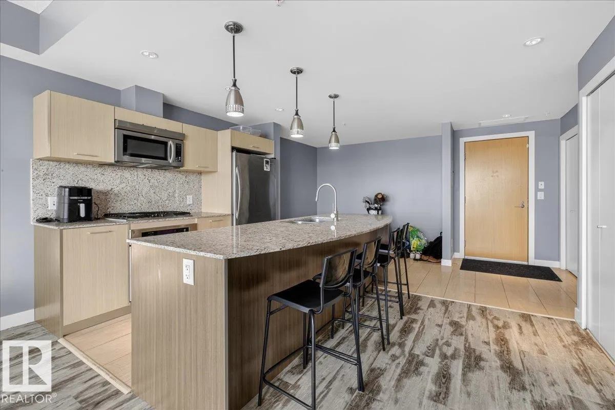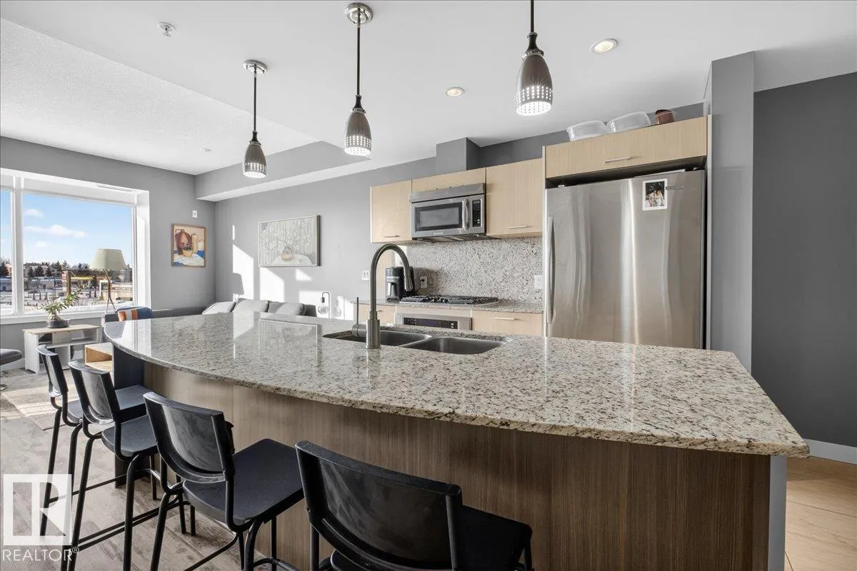 Welcome to effortless urban living in this bright SOUTH-facing 1 bedroom condoâperfect for first-time buyers, downsizers, or parents investing for a student. Built with concrete construction, this building offers exceptional sound attenuation and peace of mind. Enjoy year-round comfort with a heat pump system providing both HEAT and A/CâALL utilities are included in the condo fees for simplified budgeting. The unobstructed exposure floods the space with natural light through stunning floor-to-ceiling windows. Inside, youâll find a modern aesthetic featuring granite countertops, laminate flooring, and an open-concept layout designed for functionality and flow. Step onto your private balcony complete with natural gas lineâideal for summer BBQs. This unit also includes a heated underground parking stall and a titled storage locker for added convenience. Located within walking distance to the LRT and everyday amenities, this is low-maintenance living in a prime location. Exceptional Value - do not wait! (id:27476)