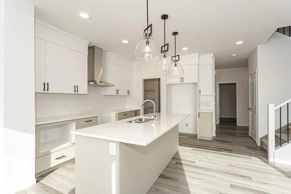 Welcome to this stunning brand new home in Kinglet! This home offers 1,961 sq ft of thoughtfully designed living space with modern finishes and a functional layout throughout. The main floor features luxury vinyl plank flooring and an open concept design with large windows that flood the space with natural light and a main floor office. The chef inspired kitchen boasts quartz countertops, ceiling height cabinetry, stainless steel appliances, and a walkthrough in pantry. A separate side entrance provides future potential for a basement suite, adding excellent versatility. A stylish half bathroom completes the main level. Upstairs, youâll find a spacious bonus room, three generously sized bedrooms, and two full bathrooms. The primary suite offers a walk in closet and a luxurious 5 piece ensuite. Located in a growing, family friendly community, this home blends modern design, comfort, and future potential. (id:27476)