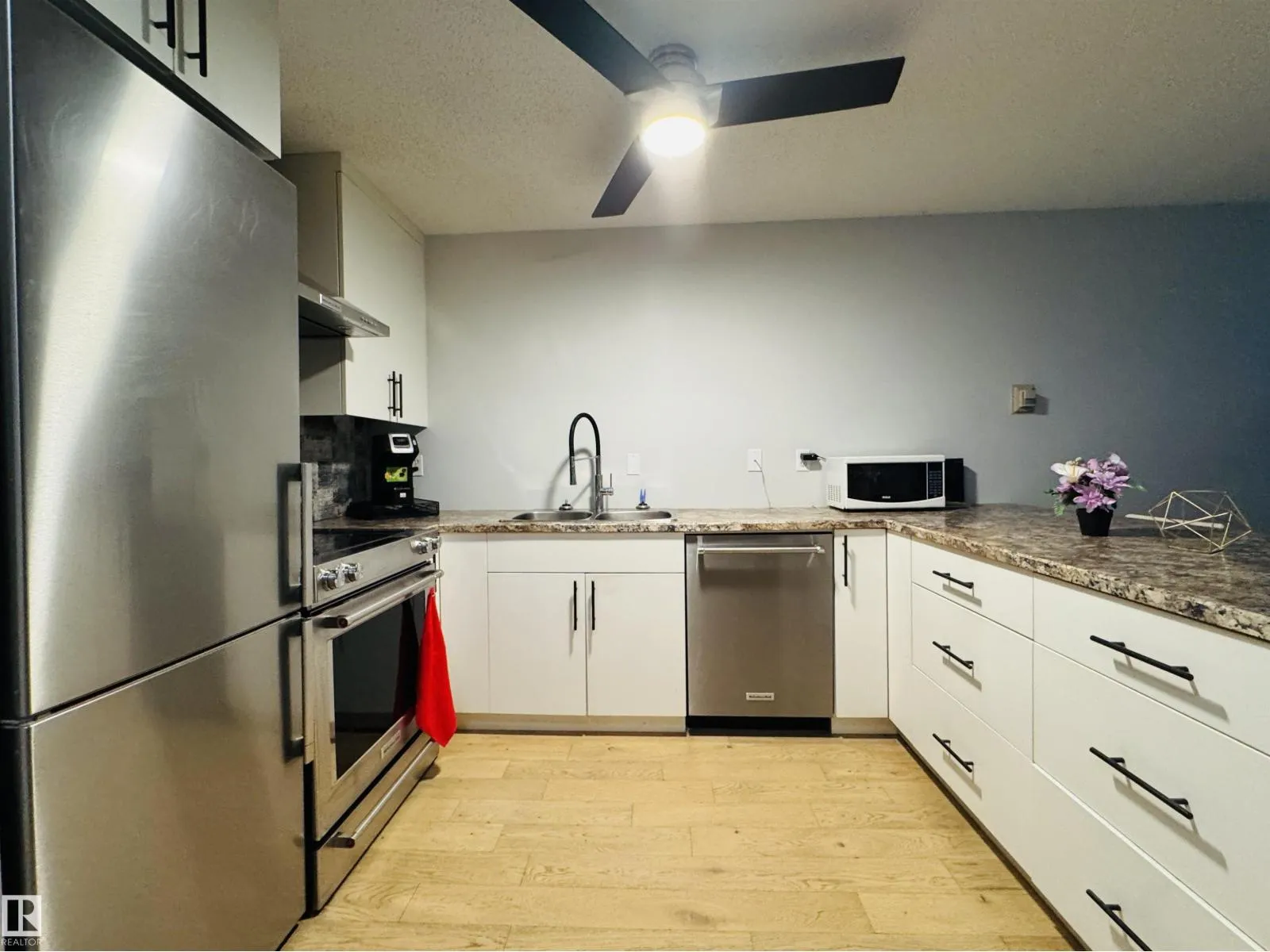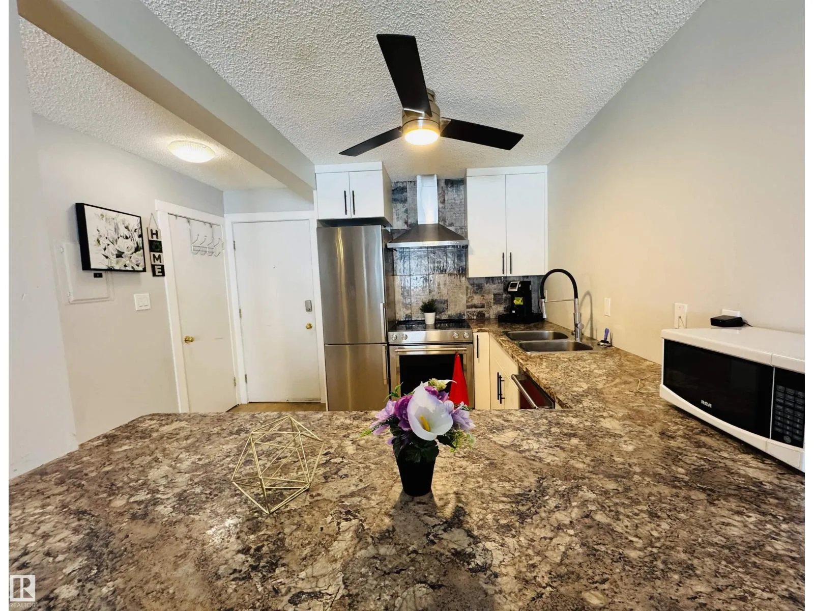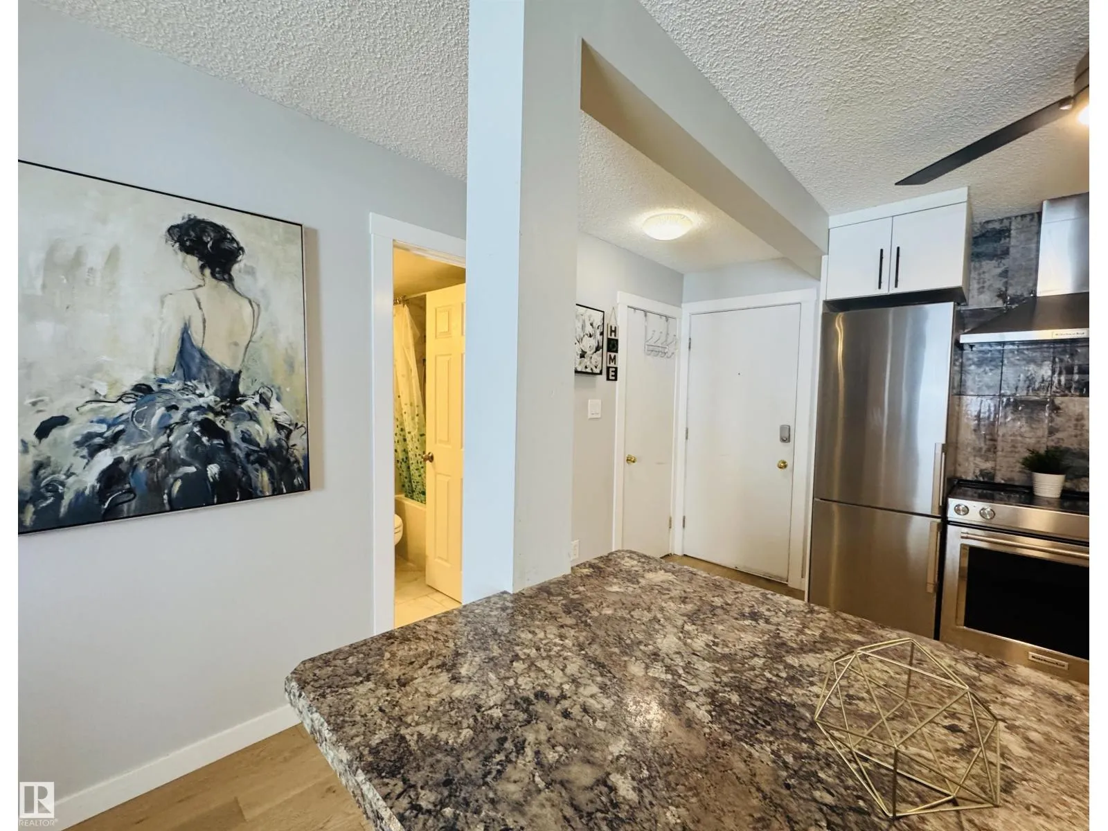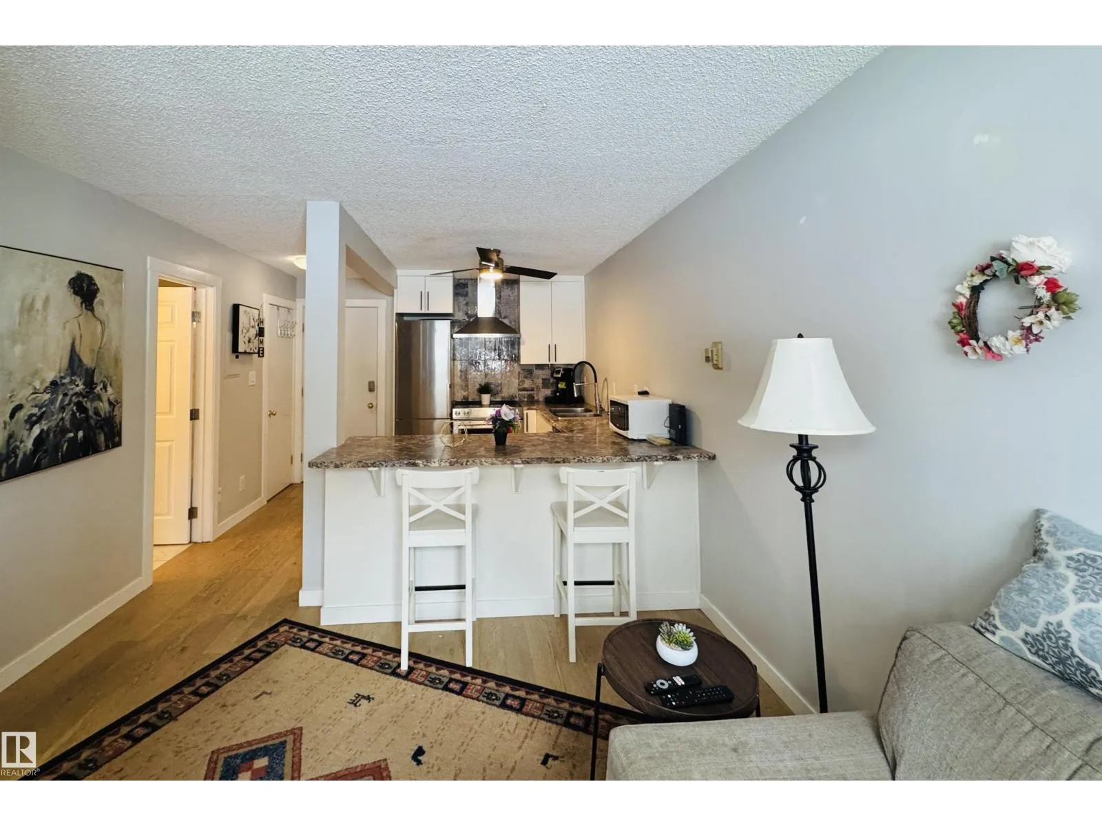 IMPRESSIVE & RENOVATED!! 1 Bedroom, 1 Bath condo presents: Vinyl Plank flooring throughout, Newer White Kitchen with 3 Stainless Steel appliances, the stainless steel hood fan & the island breakfast/lunch/dinner bar. It also boasts a lovely primary bedroom, 4PC bath plus the Insuite laundry to include the stacker washer & dryer. You will find the patio/deck just out the sliding glass doors from the cozy sized living room. AMAZING LOCATION in Oliver/Wîhkwêntôwin, one block to the Brewery District and all amenities, two parks all within a blocks radius plus an outdoor swimming pool and located a block off of Jasper Ave. You are also walking distance to the promenade that overlooks the river valley & walking distance to buses, bike lanes & so much more. Cute & Cozy - this is a must to see! (id:27476)