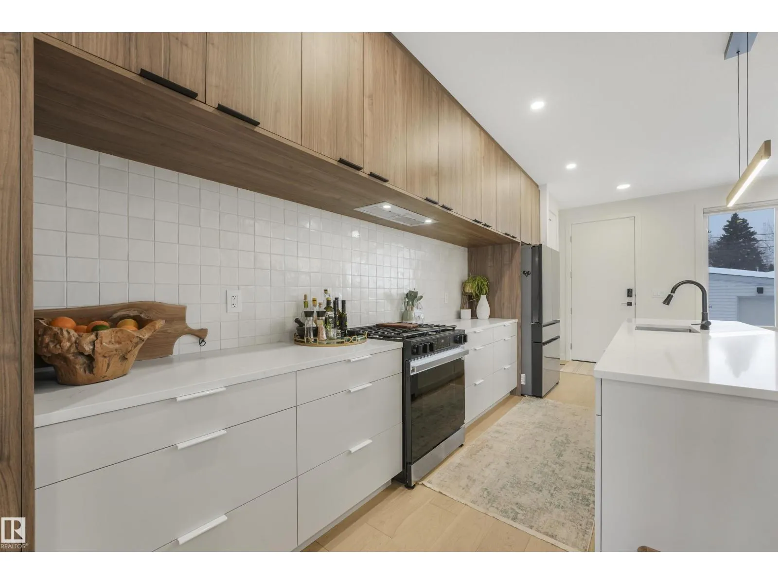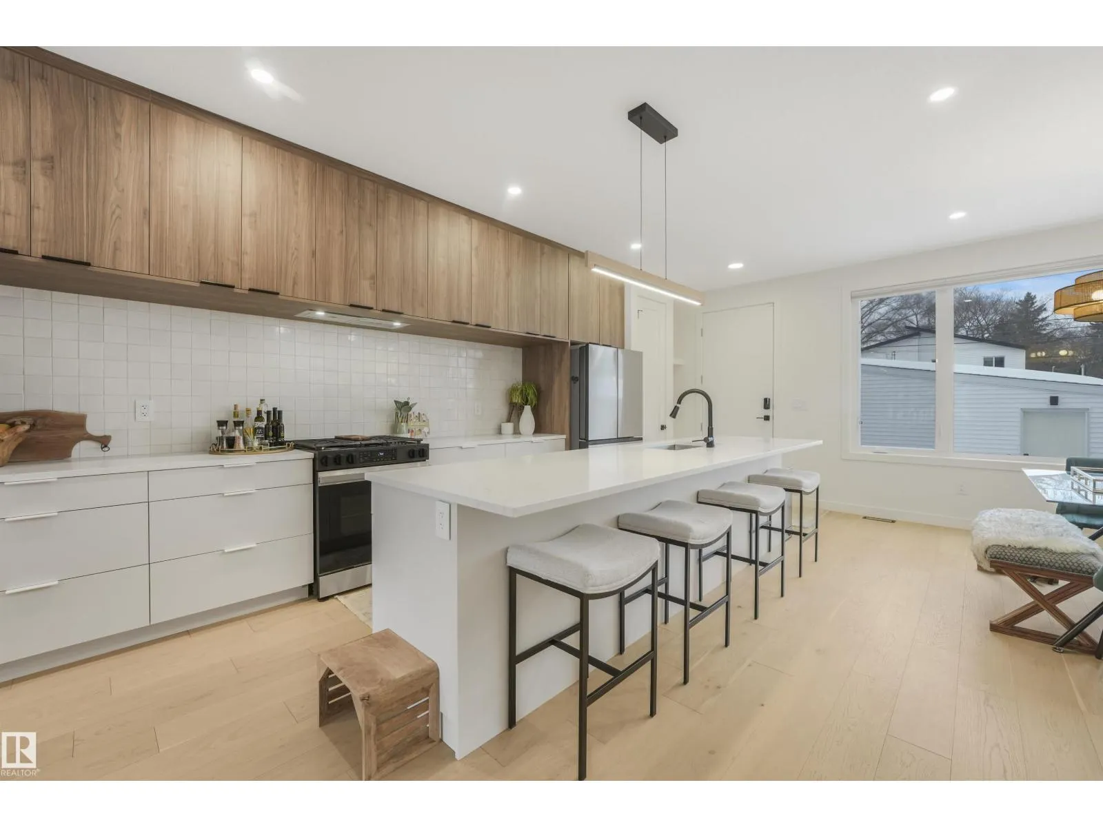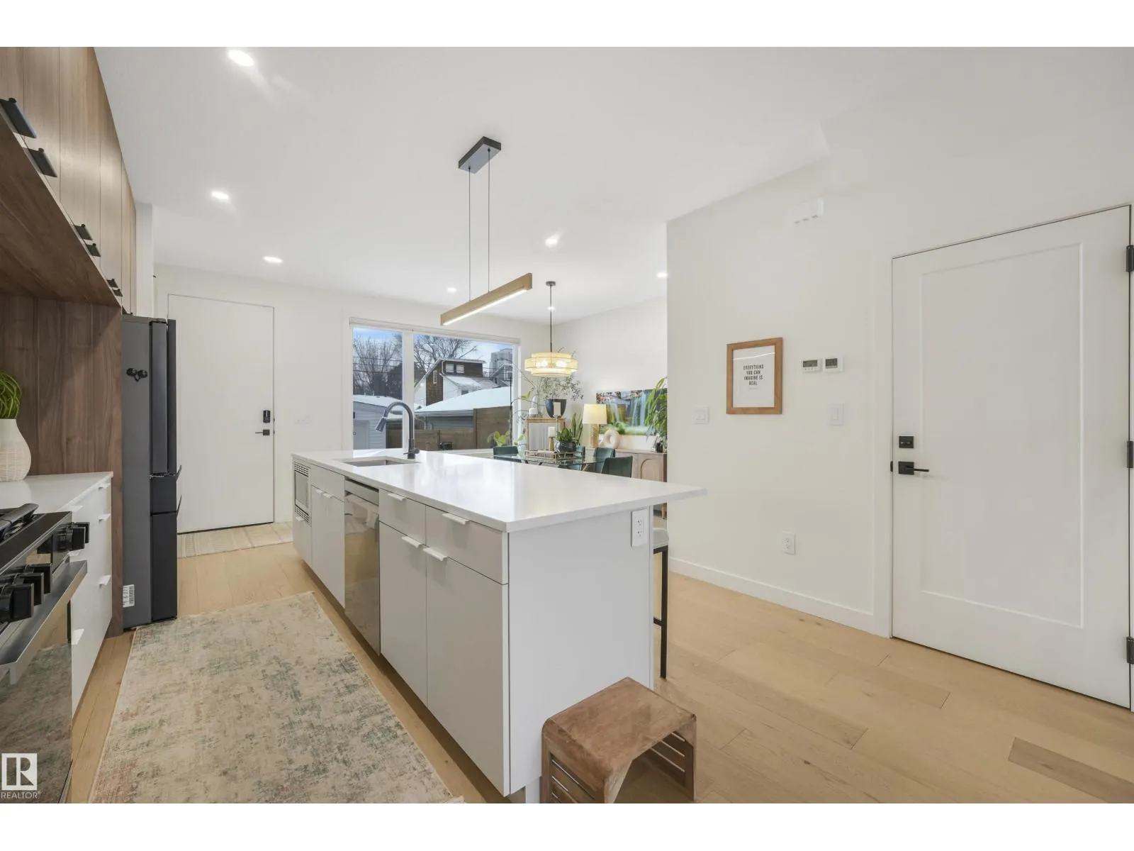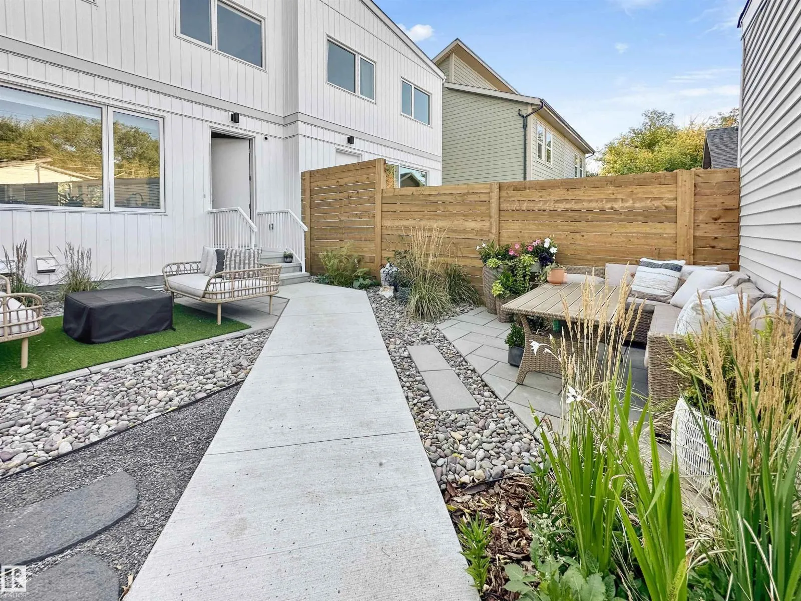 Better than new in desirable Idylwylde! This modern half duplex showcases thoughtfully selected natural finishes and a bright, open concept main floor designed for effortless living. The spacious living room features a large picture window that fills the home with natural light and flows seamlessly into the dining area and kitchen. The functional kitchen offers a pantry and large island, while the dining area overlooks the landscaped and fenced backyard. Upstairs boasts a generous primary bedroom with walk-in-closet and 4-pc ensuite, plus two additional bedrooms, a 5-pc main bath, and convenient upper floor laundry. The fully finished basement features a LEGAL SUITE complete with a full kitchen and separate in-suite laundry, ideal for rental income or extended family. Enjoy the convenience of a insulated garage and central A/C. unbeatable location just steps to parks, Idylwylde Community League, and Vimy Ridge Academy. Close to the LRT, Bonnie Doon Shopping Centre, and an easy commute to downtown. (id:27476)