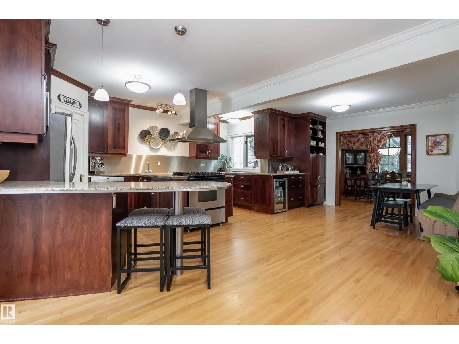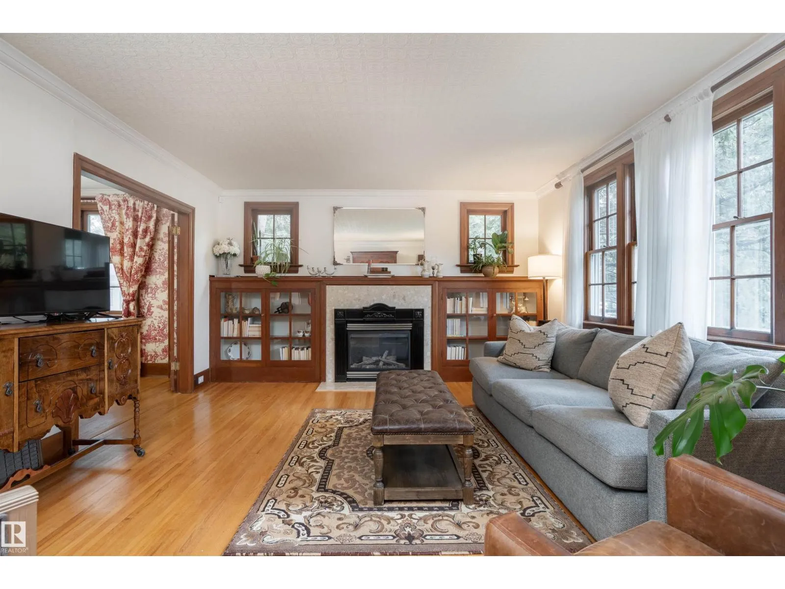 Discover this spectacular home in Rossdale on a double lot, only steps to the River Valley with striking views of the Alberta Legislature from your front street. The main floor features a spacious open-concept kitchen with gas stove, granite counter tops and SS Appliances. The formal dining room is one of a kind w/ custom curtains that will make for a conversation piece at dinner! The cozy front living room sets the mood with a gas fire place & original built-in craftsman cabinets. The main floor primary bedroom includes a renovated 5-piece ensuite w/ a tiled shower & clawfoot tub to maintain the homes old-school charm. Upstairs, an open loft is perfect for a morning coffee, or cuddling with the family for a movie. Two generously sized bedrooms each offer built-in window nooks for reading/extra storage. The fully finished basement has 2 bedroom in-law suite with massive windows, and it's own private entrance and private patio. Major updates: plumbing, electrical, shingles, triple pane windows, and more! (id:27476)