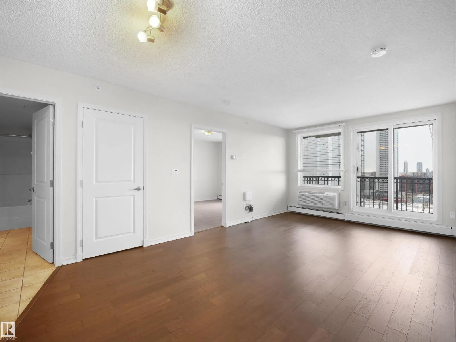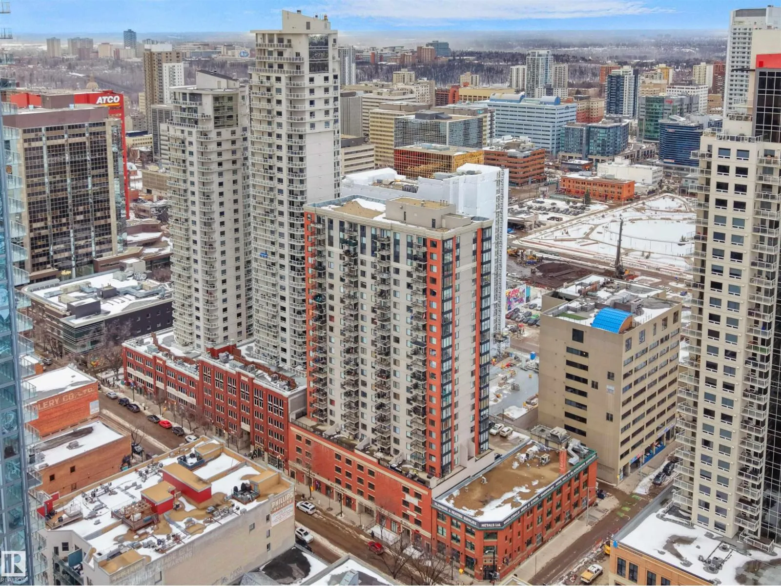Beautiful Downtown view from your private balcony! Two bedrooms air-conditioned condo is located on the 16th floor in the heart of downtown Edmonton. This open plan unit offers an incredible East facing view. This home has been tastefully updated with hard wood flooring in the main living areas and carpet in the bedrooms. Large windows and sunny exposure gives spacious look. In-suite laundry makes life convenient and the semi-ensuite bath is well-designed for access from the primary bedroom or the living room. Just imagine enjoying cup of chai and sunsets from the balcony on a summer evening! You can walk to everything from this incredibly convenient location... from the Rogers Place, Winspear Centre for Music and the Art Gallery, to Edmonton City Centre, the Edmonton Public Library, and Churchill Square! Plus, quick access to Edmonton's beautiful river valley. Public transit is easy with buses and the LRT just steps away. And if you own a car, you'll appreciate the underground parking as well! (id:27476)