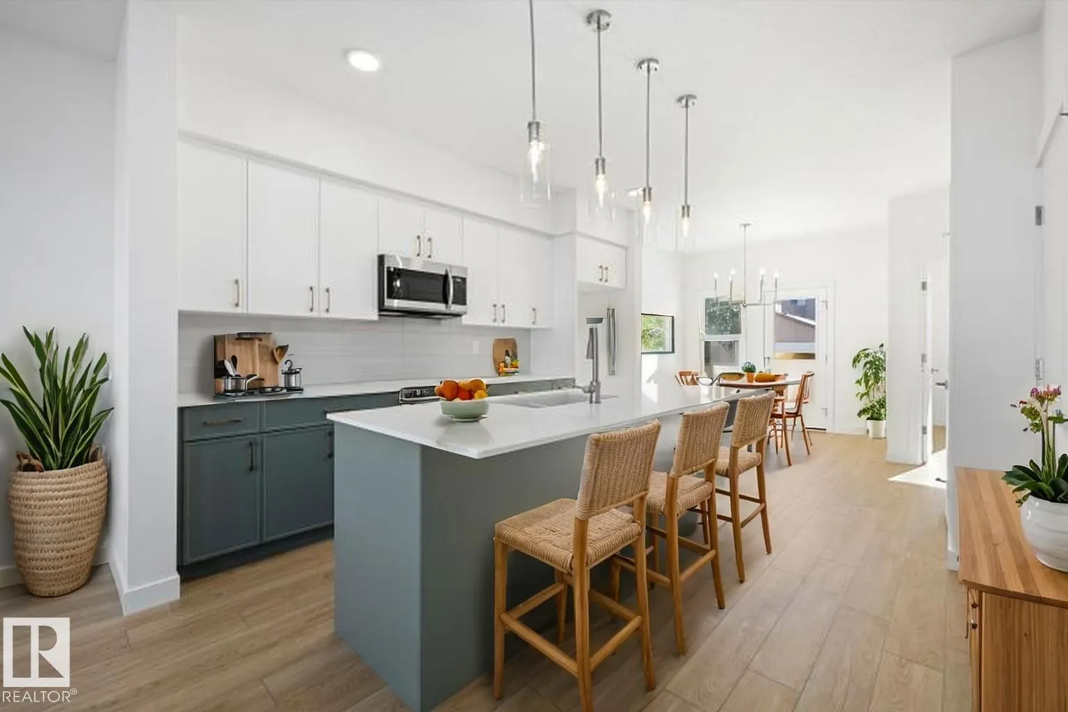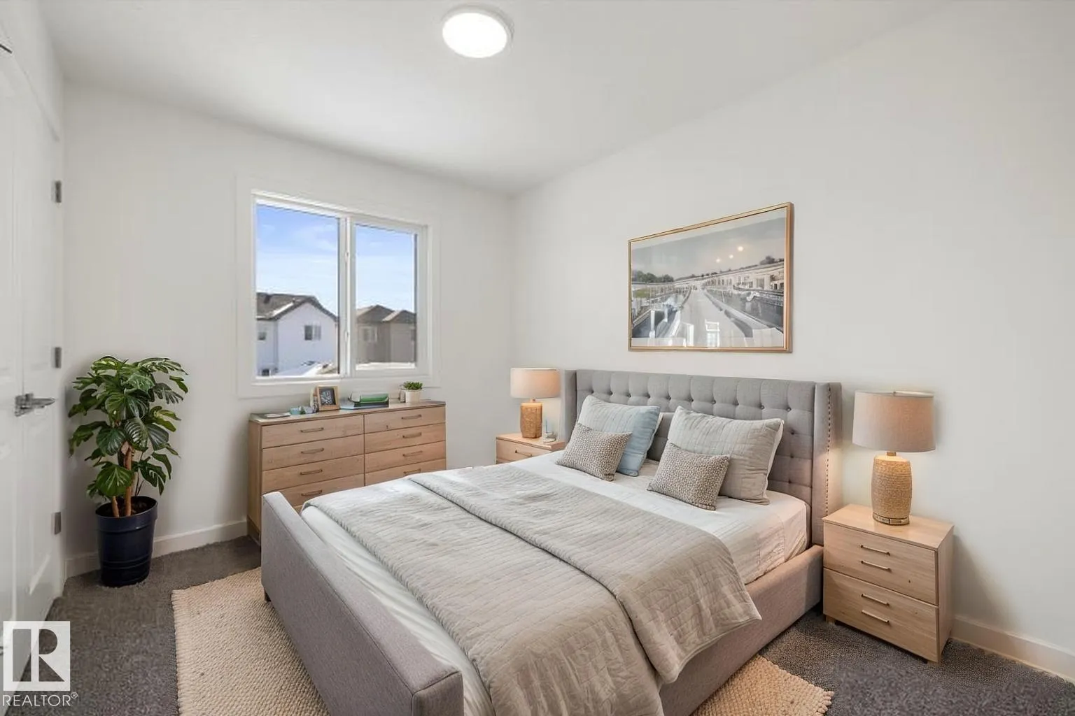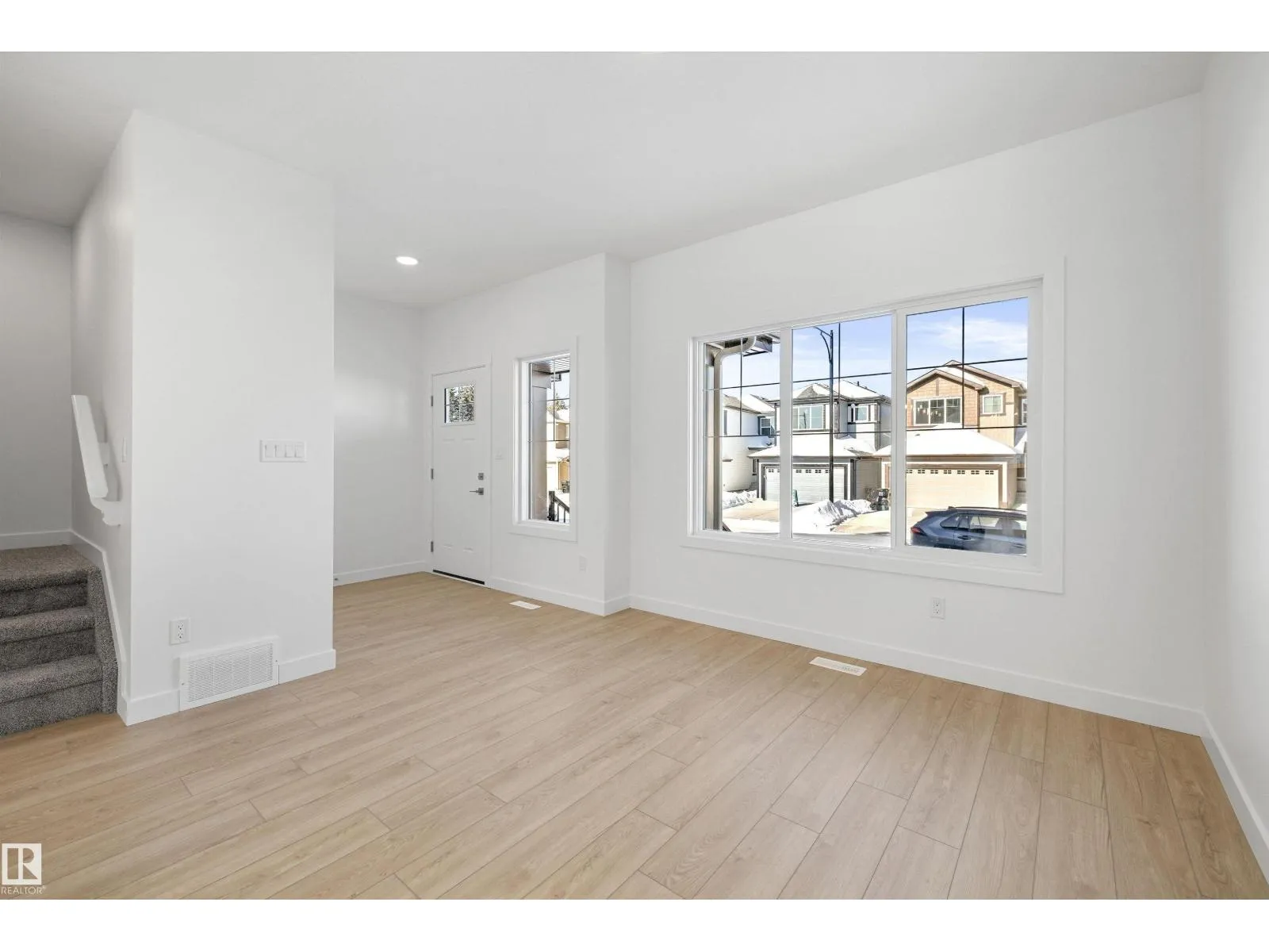 Experience the perfect blend of style and versatility in this charming Sterling Homes laned residence, located in the quiet community of Edgemont Place. The main floor feels exceptionally airy with 9â ceilings, triple-pane windows, and a sun-drenched front living room. Designed for multi-generational living or remote work, this level features a rare main-floor bedroom and full bathroom, offering a private space for guests or a home office. At the heart of the home, the kitchen shines with quartz countertops, a central island, and upgraded cabinetry overlooking the yard. The upper level serves as a peaceful retreat, headlined by a primary suite with a walk-in closet and private ensuite. Two additional bedrooms, a full bath, and convenient upper-floor laundry ensure an organized daily routine. Finished with luxury vinyl plank flooring and a separate side entrance, this home also includes a large backyard with a parking pad and basement rough-ins for future growth. (id:27476)