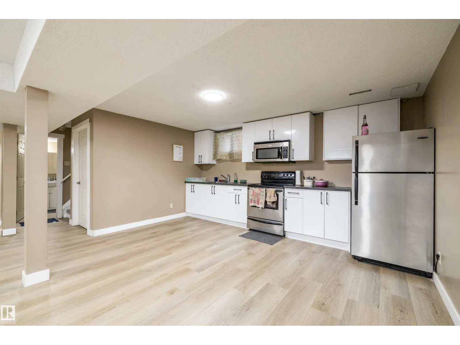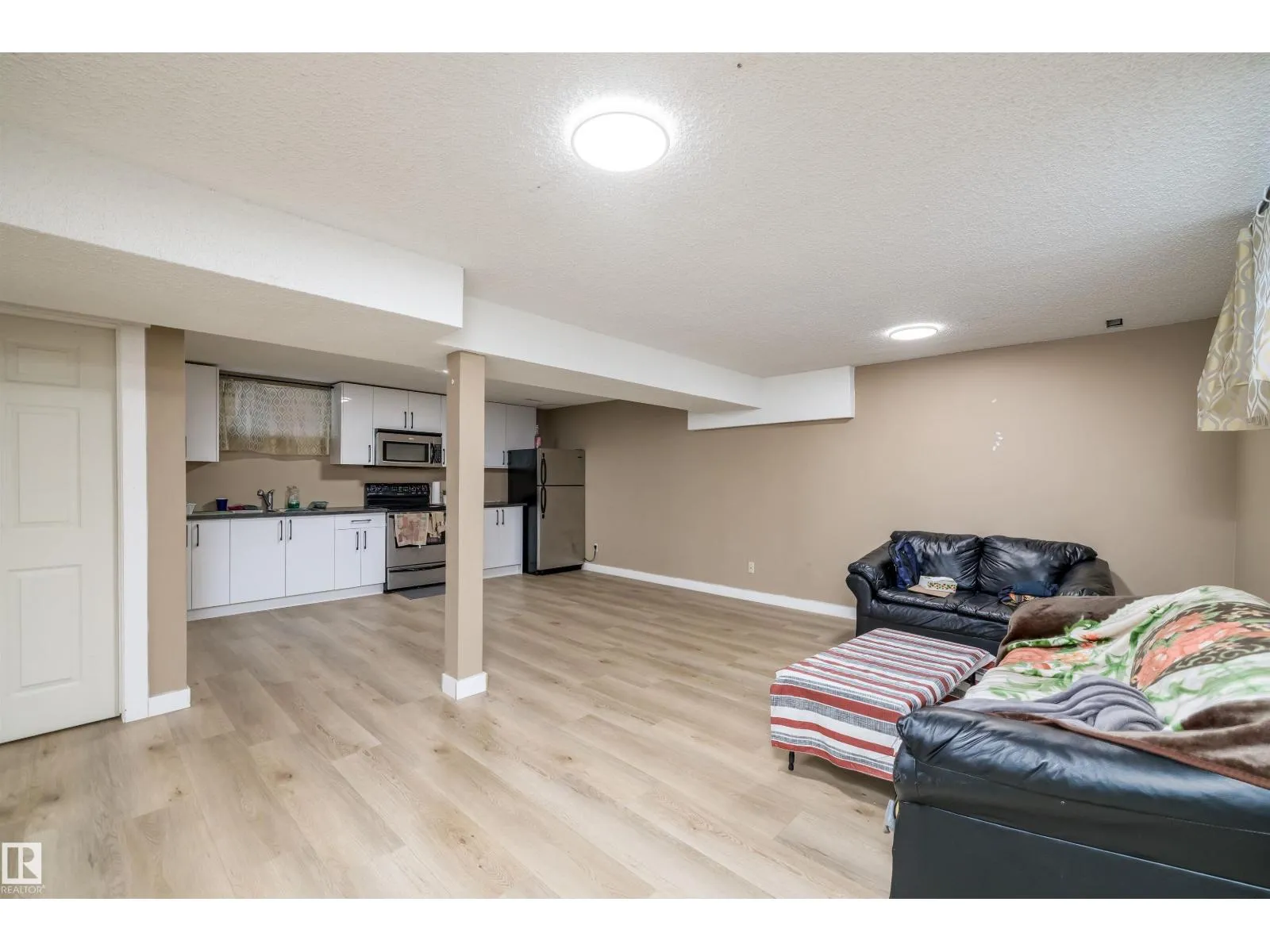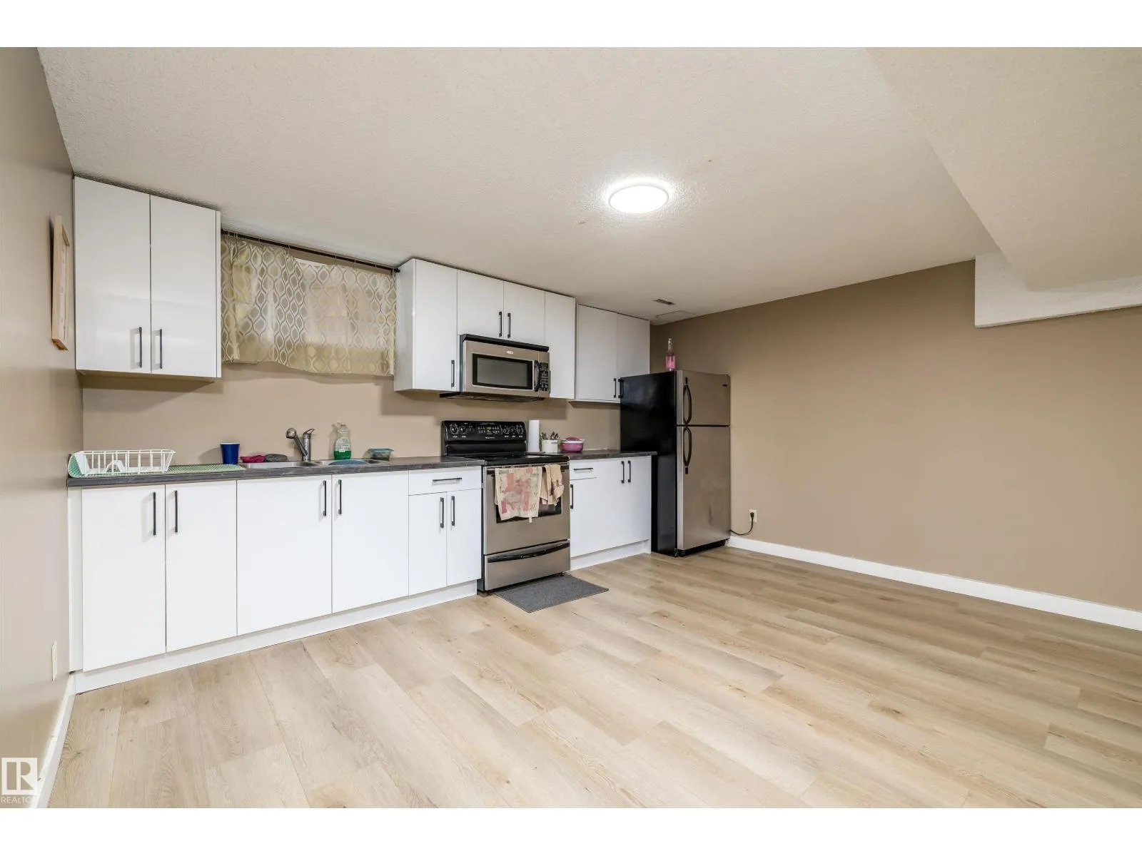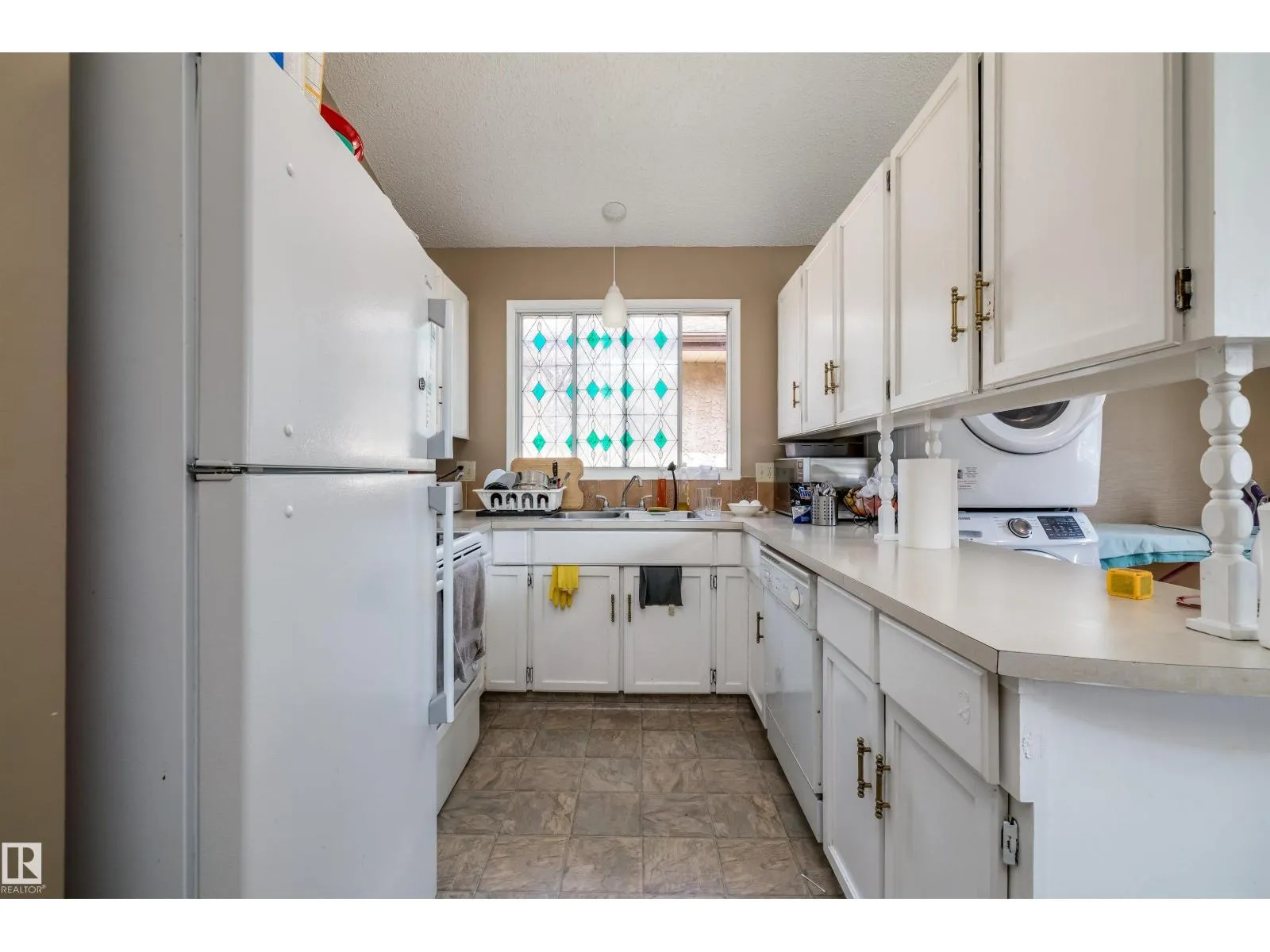 Welcome to this beautifully maintained bungalow on a CORNER LOT (54 x 110) in desirable Kiniski Gardens. Offering 5 bedrooms, a separate entrance, and a second kitchen, this property is perfect for families, first-time buyers, or investors seeking strong rental potential. The main floor features 3 spacious bedrooms, a full bathroom, bright living area, and convenient laundry. The fully finished basement adds 2 more bedrooms, a second living room, full bathroom, dedicated laundry, brand-new kitchen, new flooring, and modern lighting. Recent upgrades include a new roof and fence (2023), providing peace of mind for years to come. An oversized double detached garage offers ample parking and storage space. Enjoy the large patio and fully fenced yard, ideal for kids, pets, and entertaining. Located on a quiet street just steps from ravine trails, schools, parks, shopping, and public transit. Move-in ready with incredible flexibility and valueâthis is a must see opportunity in southeast Edmonton. (id:27476)