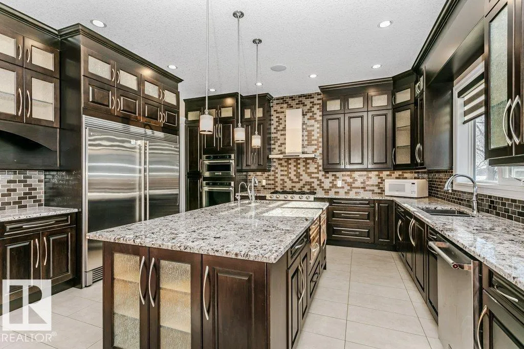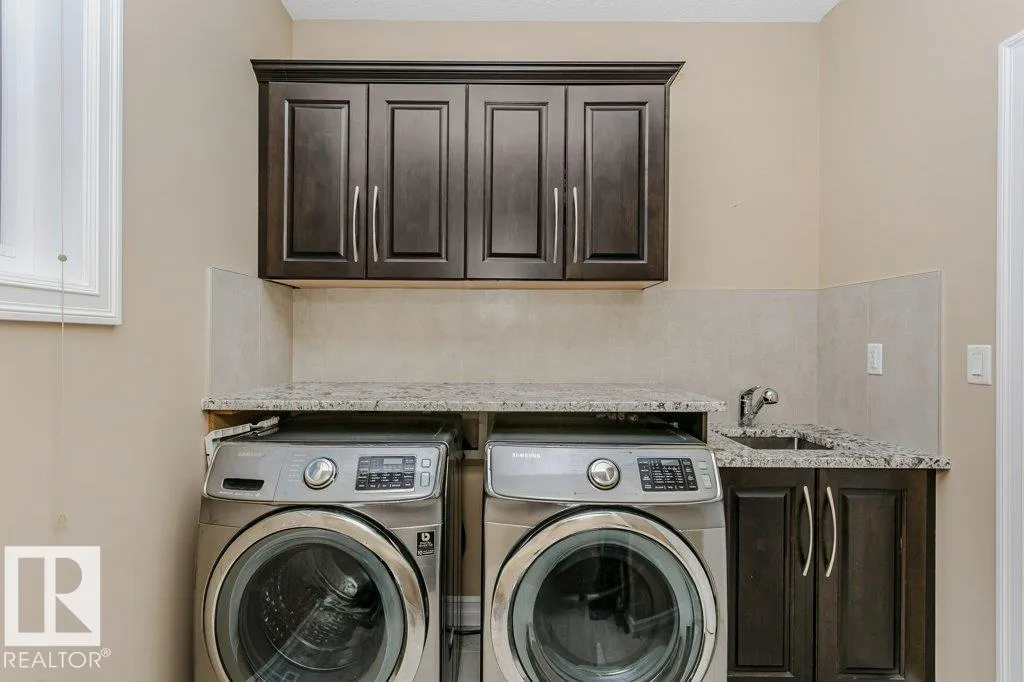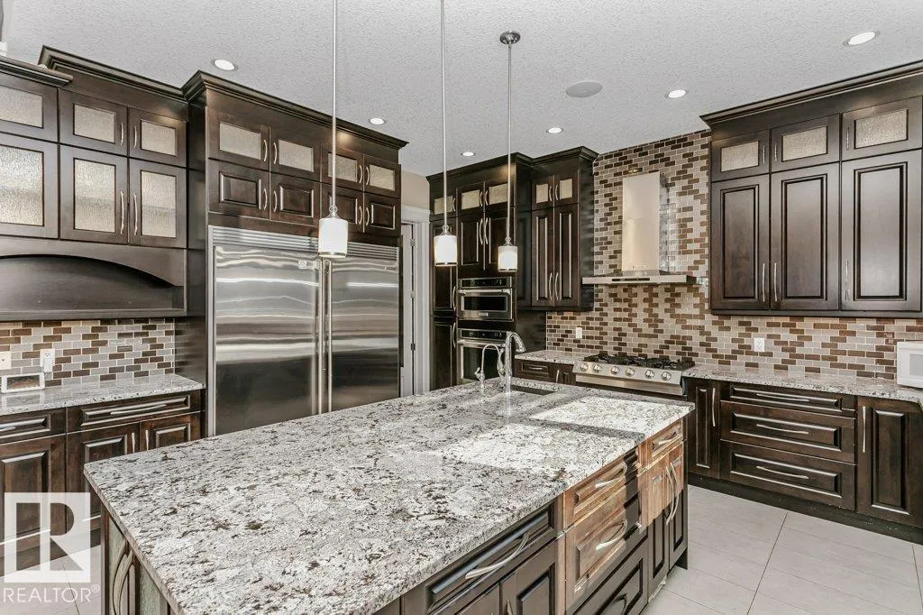 Style, quality & value in Allard Estatesâover 5,000 sq ft of finished living space, custom designed and built by Blackstone Homes. This executive 2-storey offers a tandem triple garage, 5 bedrooms, and 4.5 baths, plus oversized entertaining rooms. From the welcoming foyer to the soaring 20â ceilings in the great room, youâll find premium upgrades throughout. Enjoy formal and informal spaces with tigerwood flooring, 10â ceilings on all three levels, wrought-iron spindles, and expansive windows with custom blinds (some remote). The gourmet kitchen impresses with custom cabinetry, a huge granite island, walk-through pantry, and stainless-steel appliances. Upstairs: a luxurious primary suite, generous bedrooms including a Jack & Jill bath, one with ensuite, and a bonus room. The finished basement adds games/rec space, a wet bar, full bath, bedroom, and ample storage. Quick access to Anthony Henday, Ellerslie Rd, South Edmonton Common & the airportâprestige location. Perfect for hosting and everyday living. (id:27476)