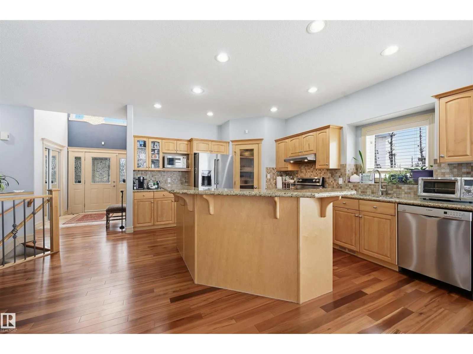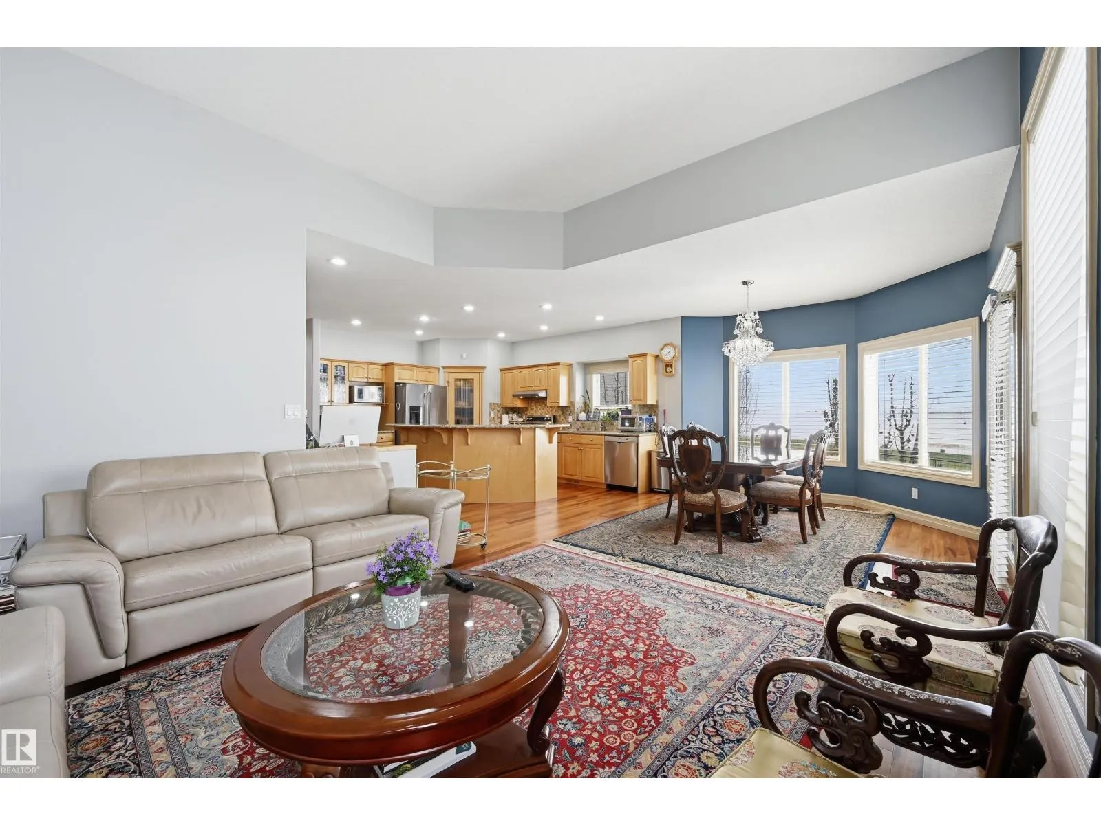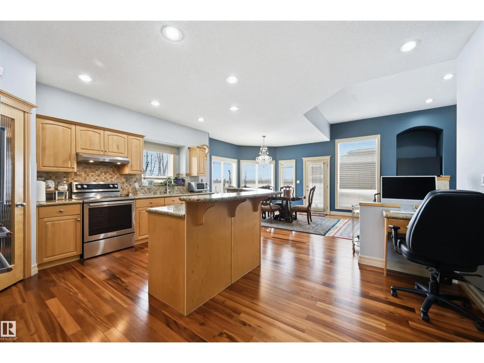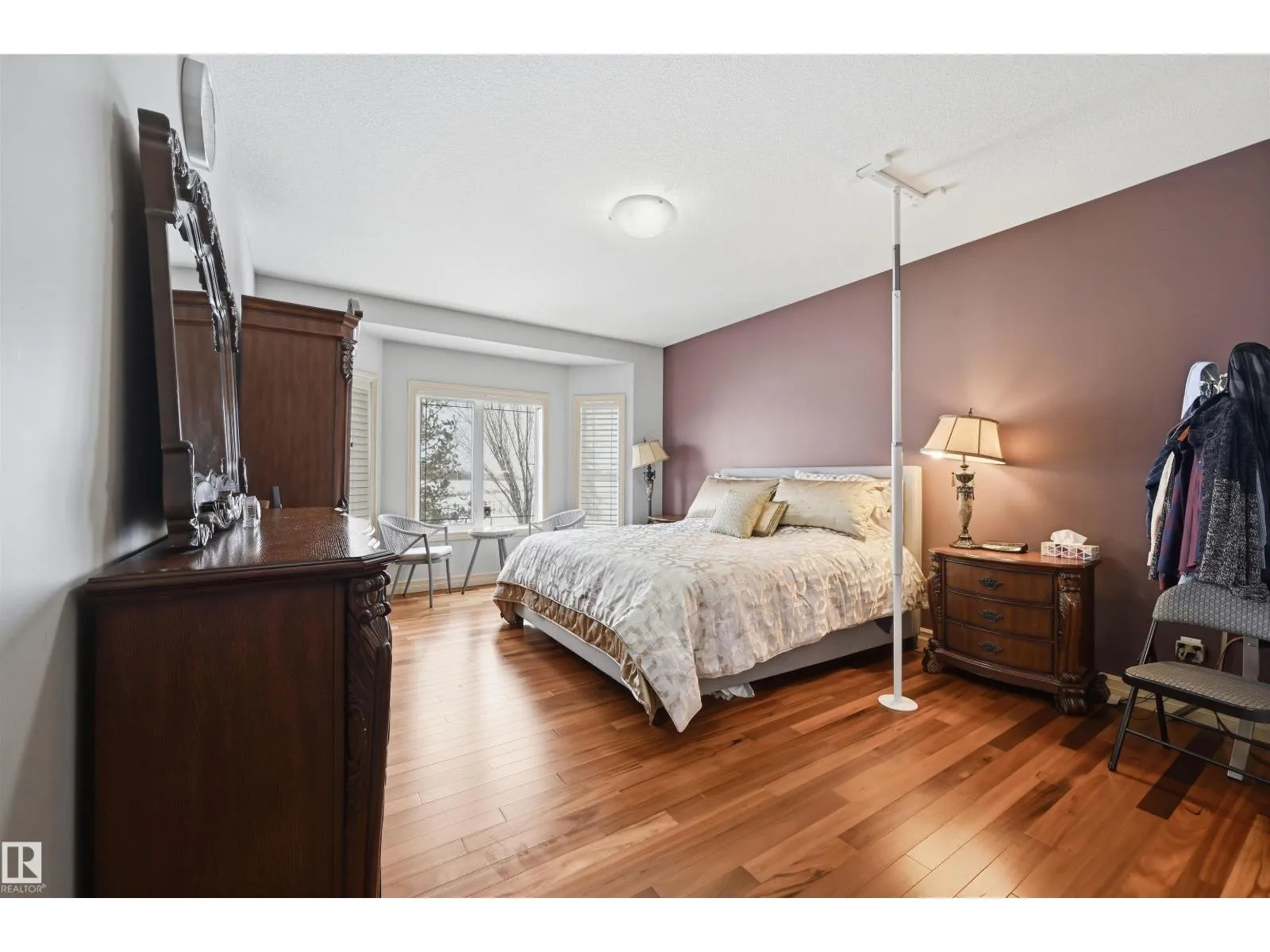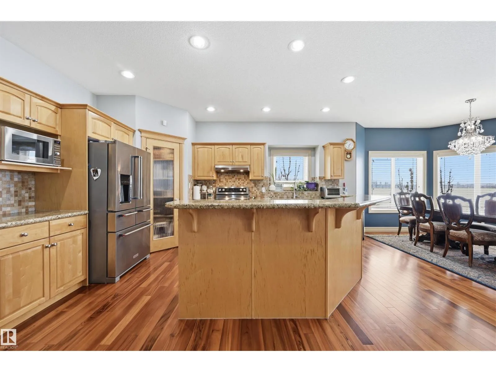 EXCEPTIONAL WALK OUT LUXURY 4 bedrm bungalow. Backing to a DRY POND & treed green space nestled in a cul de sac in the popular neighborhood of Riverside. Approx 3500 sf of luxury living space (1811 sf above grade). Open sunny plan is perfect for entertaining & family gatherings. Soaring 11/9 ft ceilings add to the airiness of this cheery home. Gourmet Chefâs kitchen w/granite counters, NEWER S/S appliances & large W/I pantry. Brazilian hardwood & tile flooring adorns much of the main. Main floor features a FLEX (dining/den) rm w/French drs, laundry & RARE second bedroom/ full bathrm. Spacious primary bedrm w/luxurious ensuite. Lower level has newer flooring, IN FLOOR heating, 2 large bedrms, games area w/wetbar, B/I entertainment centre, 2nd FP & a 3rd full bathrm (upg w/quartz). 9 ft ceilings, upgraded humidifier, BBQ gas line, A/C 2024, U/G sprinklers, newer H20 tank, $20K gazebo, HEATED O/S garage w/epoxy floors. West facing 7500 sf pie yard w/fruit trees. Access to Rec Centre & multiple schools & EIA (id:27476)