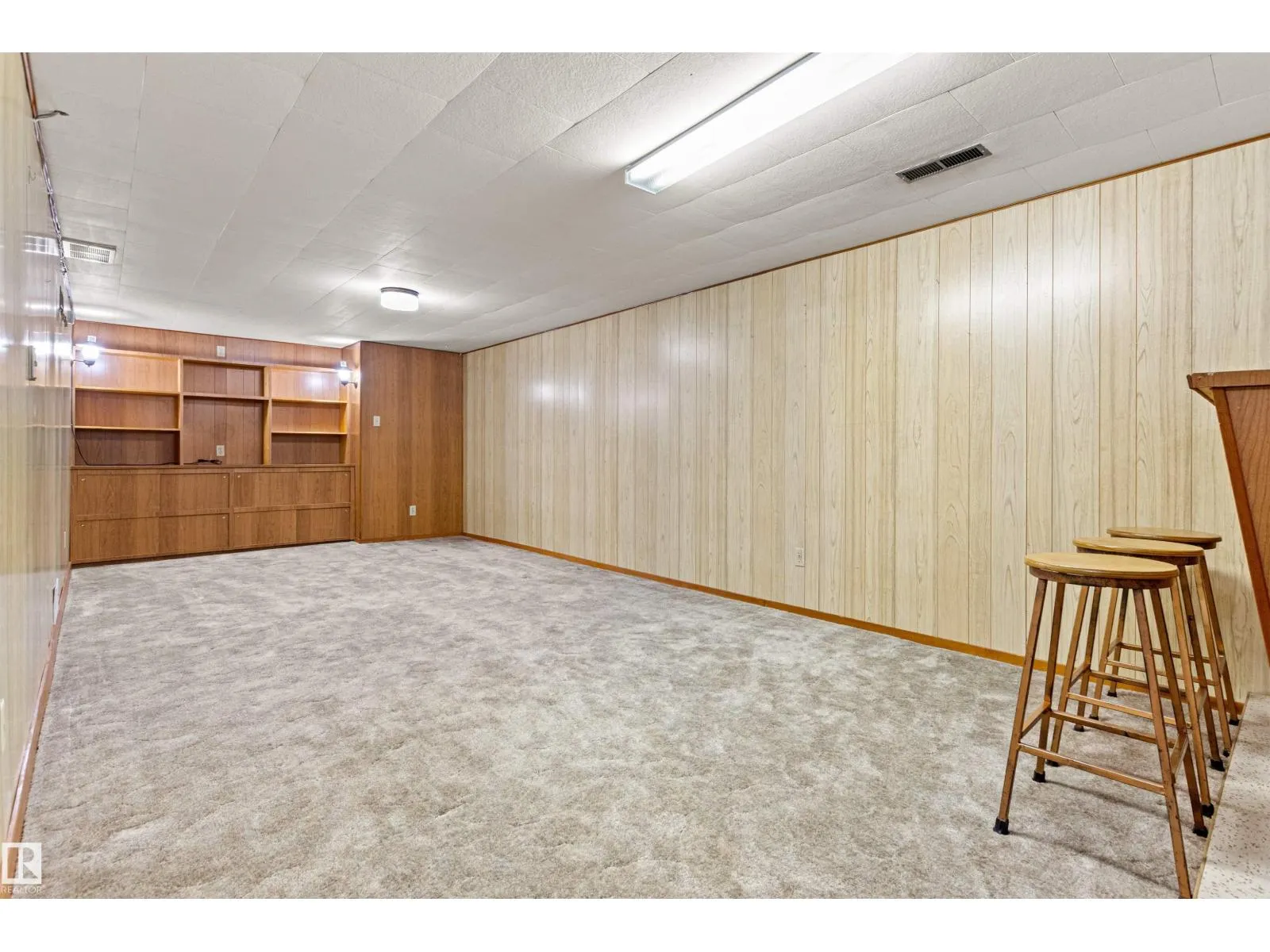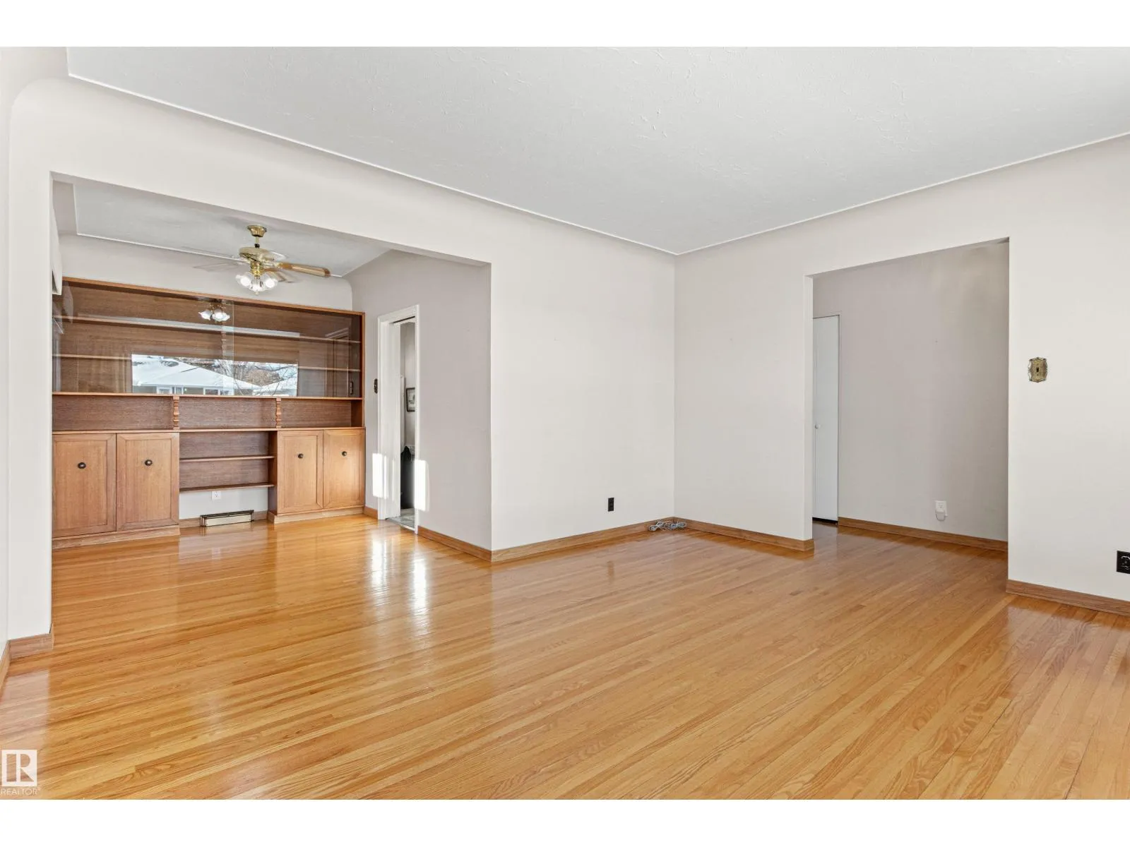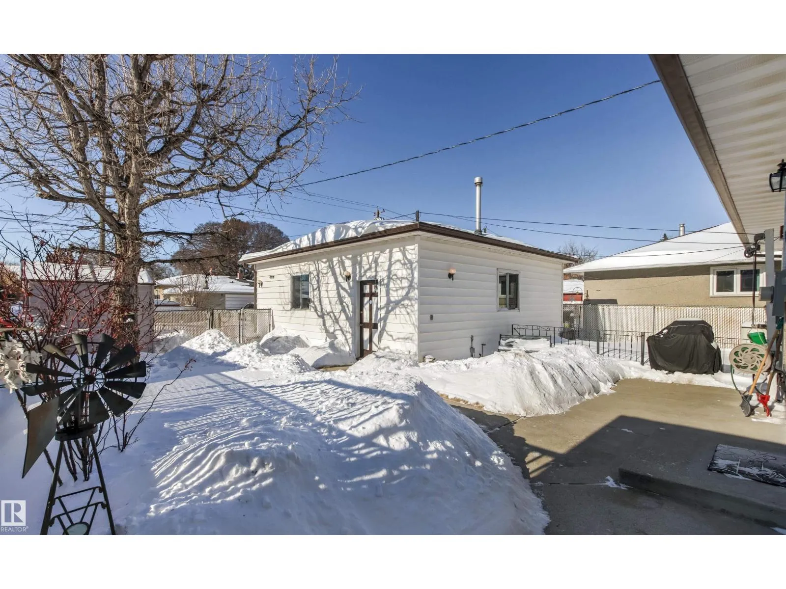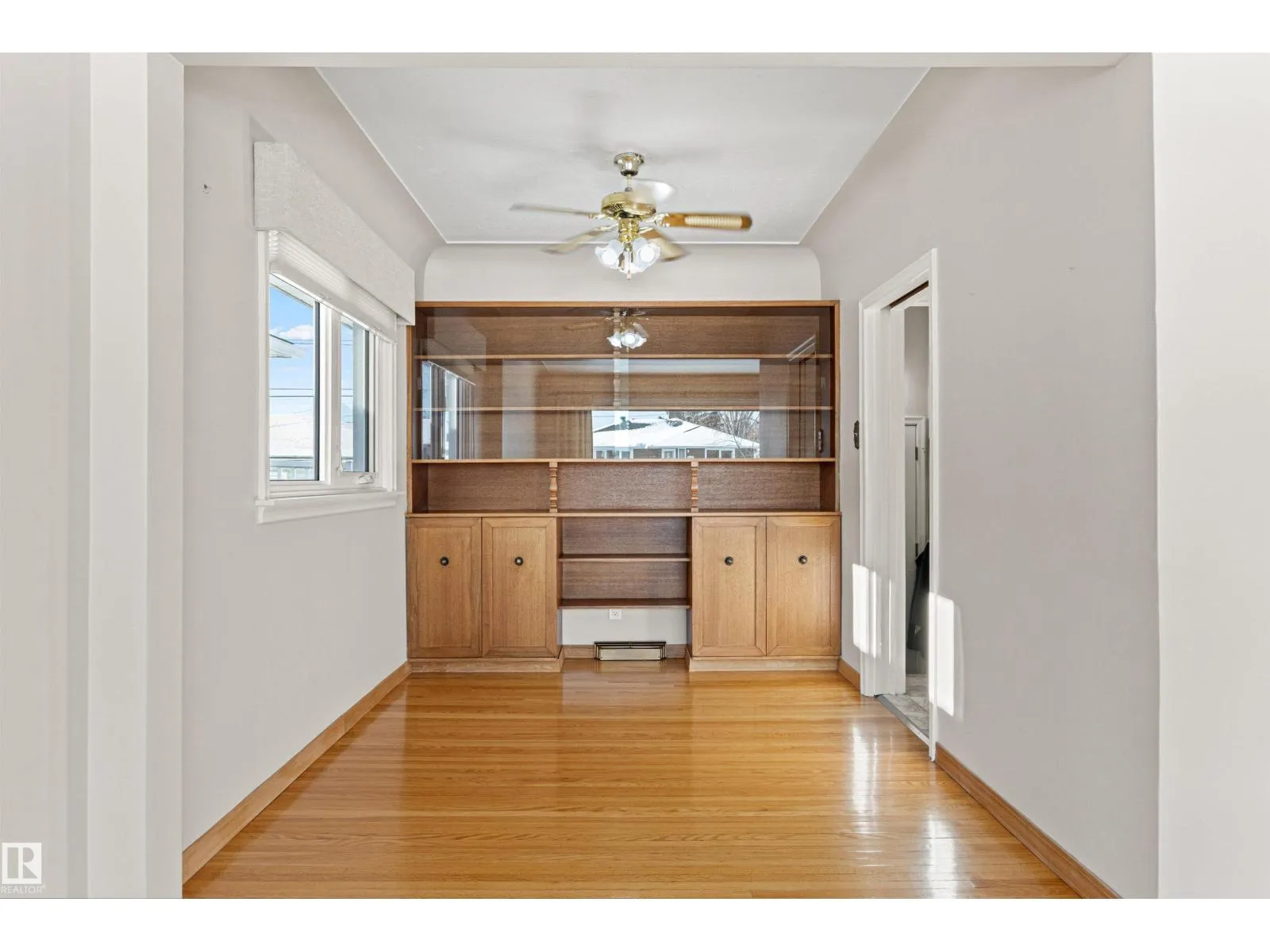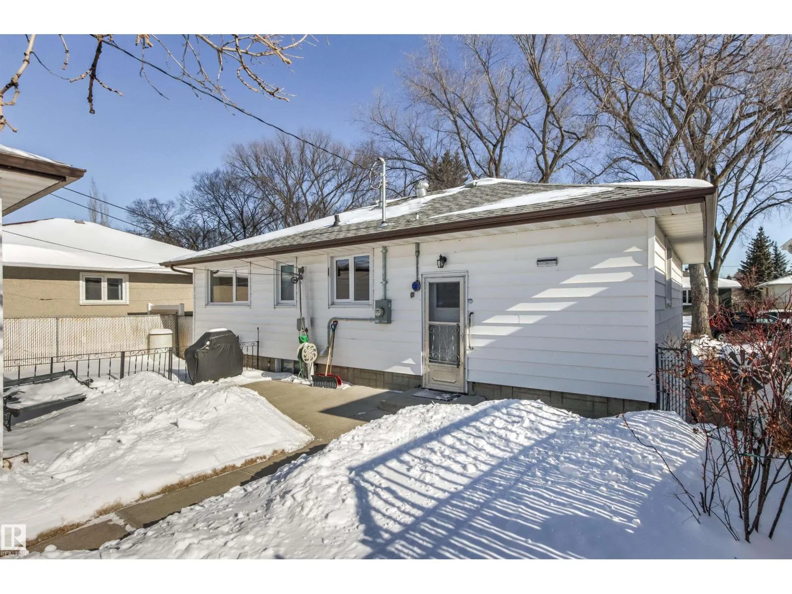 Solid McQueen bungalow has been enjoyed and lovingly cared for by the same family since 1962. Situated on a tree lined street, private West back yard, underground sprinkler front/back, detached heated oversized double garage (23'9X26'9) and RV parking. Garage has 10' ceiling, 220V, 18' overhead door, car wash, floor drain, steel beam w hoist, wall of cabinets and plenty of space for a work shop. This lovely home has charm and character with original hardwood floors & coved ceiling. Main floor has 3 bedrooms, upgraded 4 piece bath, spacious living rm, formal dining rm with built in cabinet, well designed kitchen with solid wood cabinets and breakfast nook. Basement has large family rm with wall unit & bar, 4th bedroom, 3 piece bath, cold rm, laundry/utility rm & storage. Walking distance to all levels of schools including Thrive Elementary and Archbishop MacDonald. Quick commute to Downtown, Groat Road, Yellowhead Trail and Whitemud Drive. Family friendly neighbourhood close to all amenitities. (id:27476)