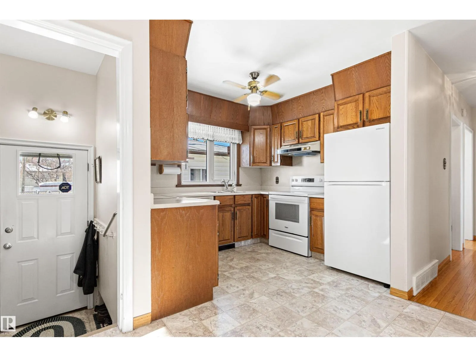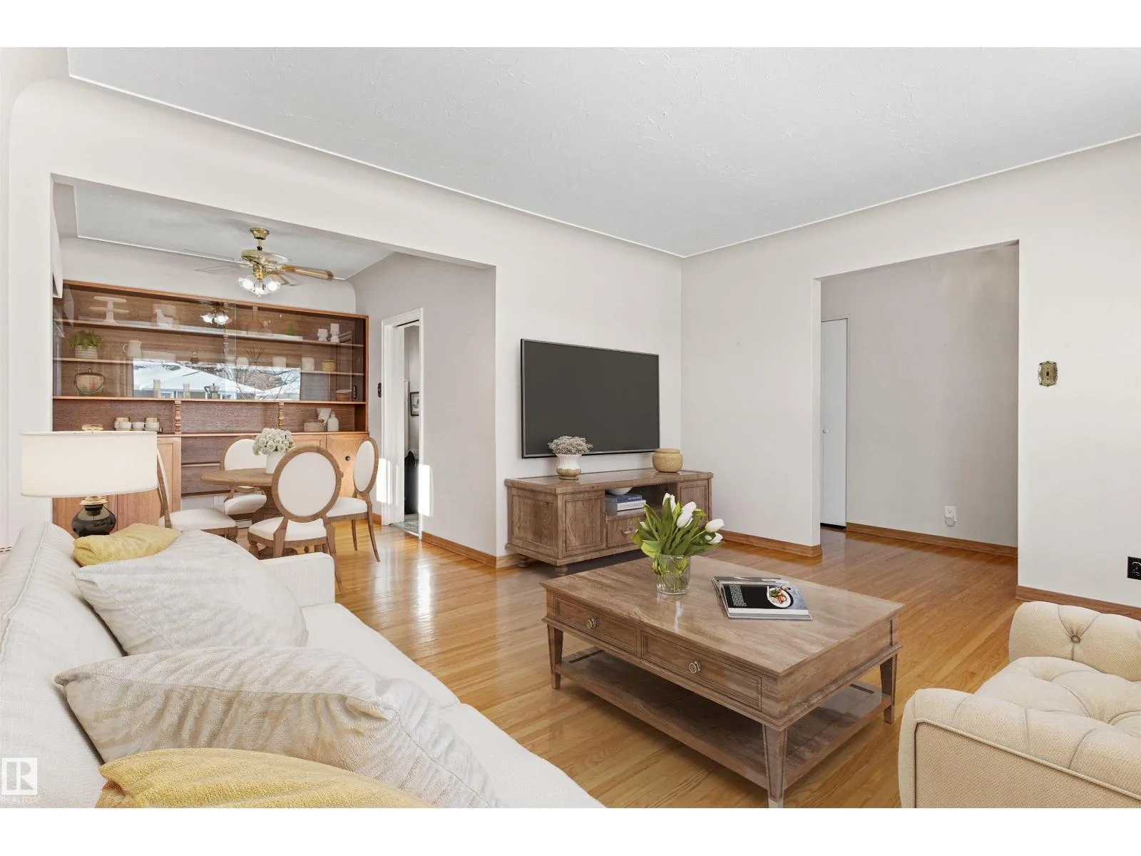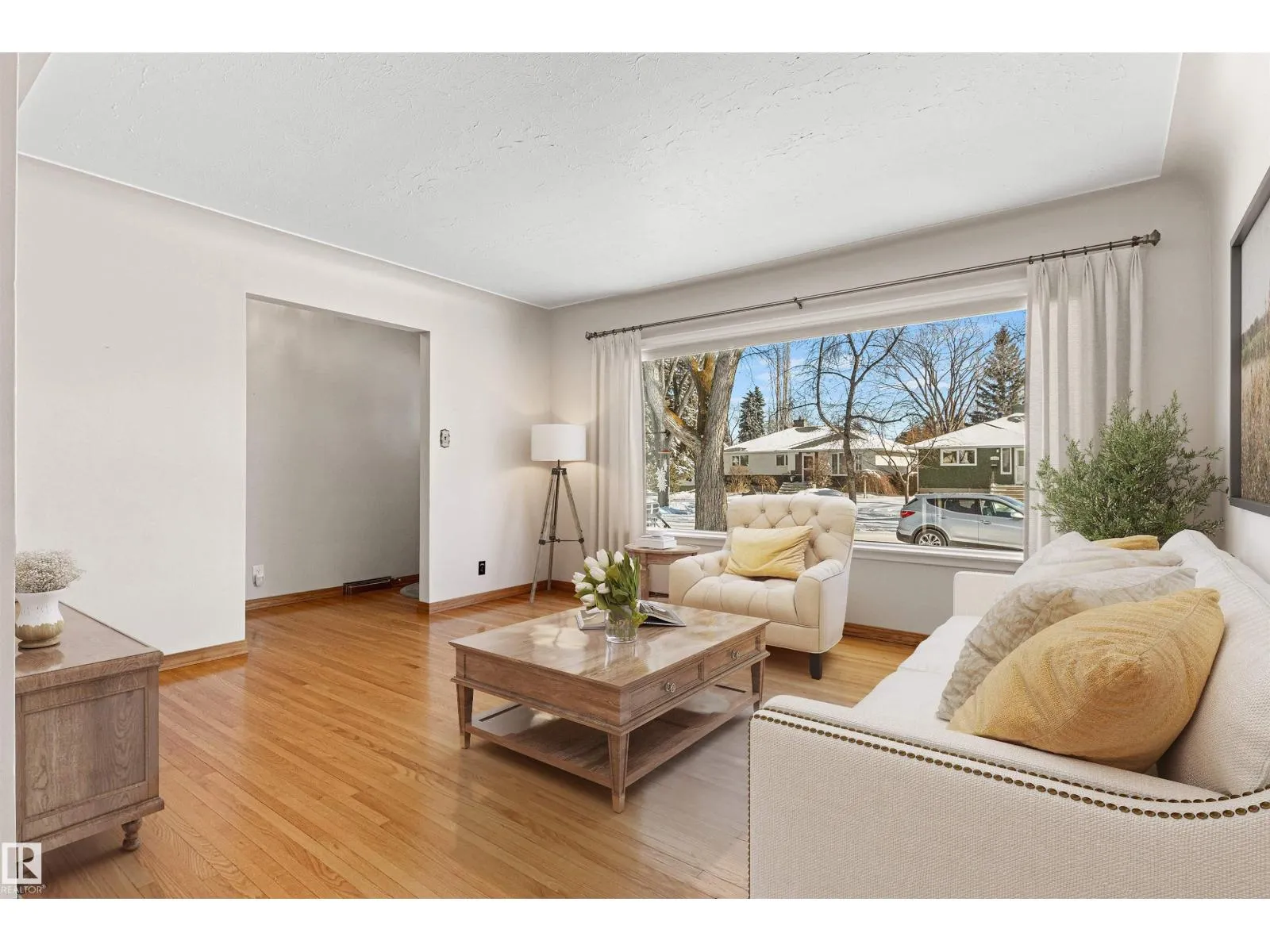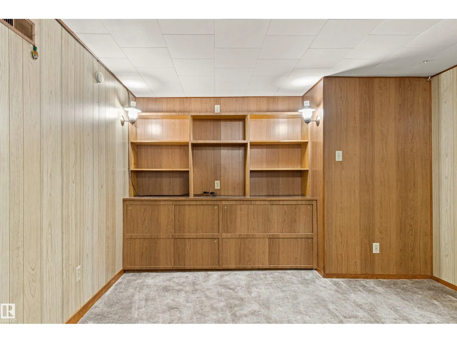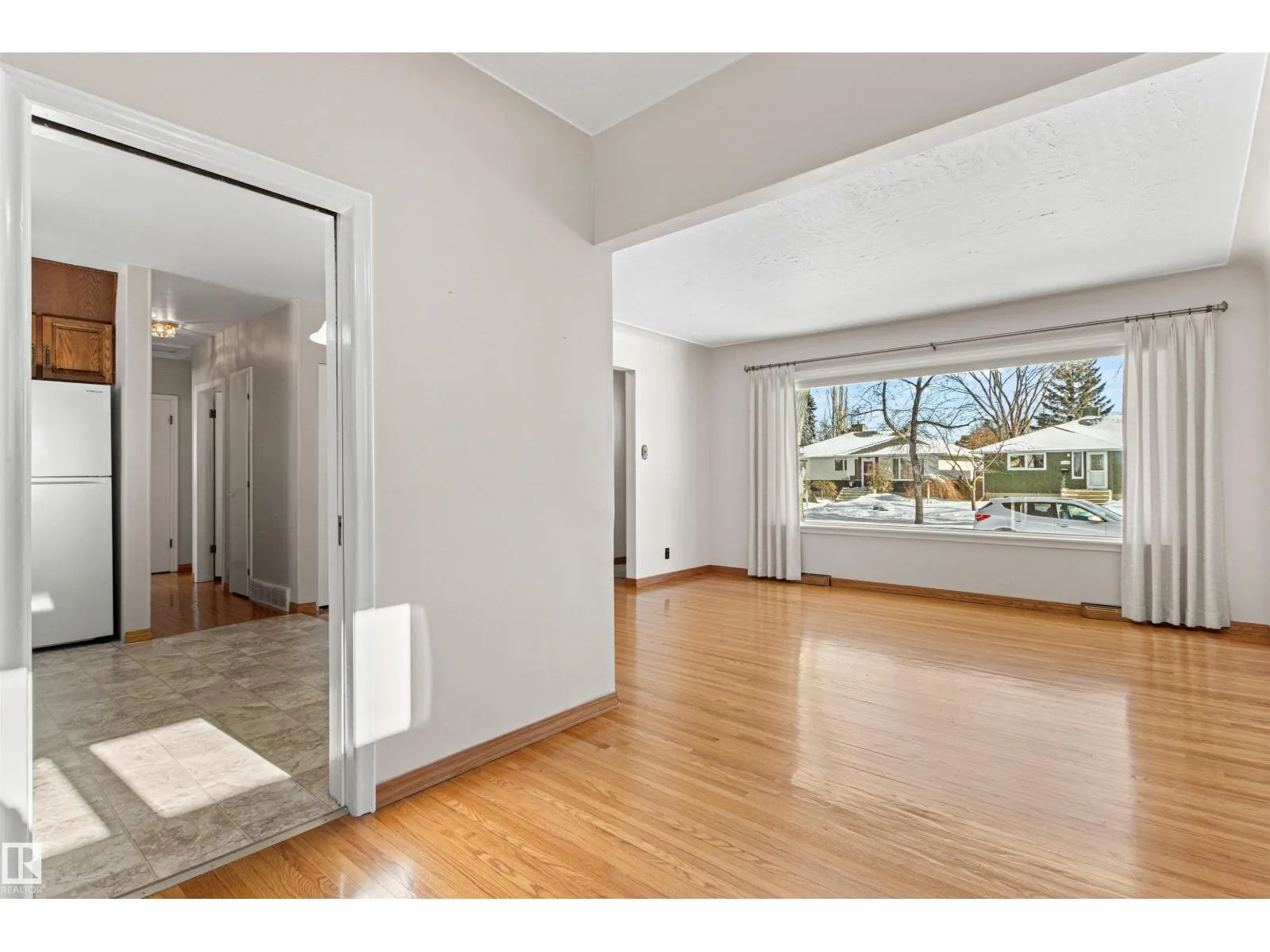Solid McQueen bungalow has been enjoyed and lovingly cared for by the same family since 1962. Situated on a tree lined street, private West back yard, underground sprinkler front/back, detached heated oversized double garage (23'9X26'9) and RV parking. Garage has 10' ceiling, 220V, 18' overhead door, car wash, floor drain, steel beam w hoist, wall of cabinets and plenty of space for a work shop. This lovely home has charm and character with original hardwood floors & coved ceiling. Main floor has 3 bedrooms, upgraded 4 piece bath, spacious living rm, formal dining rm with built in cabinet, well designed kitchen with solid wood cabinets and breakfast nook. Basement has large family rm with wall unit & bar, 4th bedroom, 3 piece bath, cold rm, laundry/utility rm & storage. Walking distance to all levels of schools including Thrive Elementary and Archbishop MacDonald. Quick commute to Downtown, Groat Road, Yellowhead Trail and Whitemud Drive. Family friendly neighbourhood close to all amenitities. (id:27476)