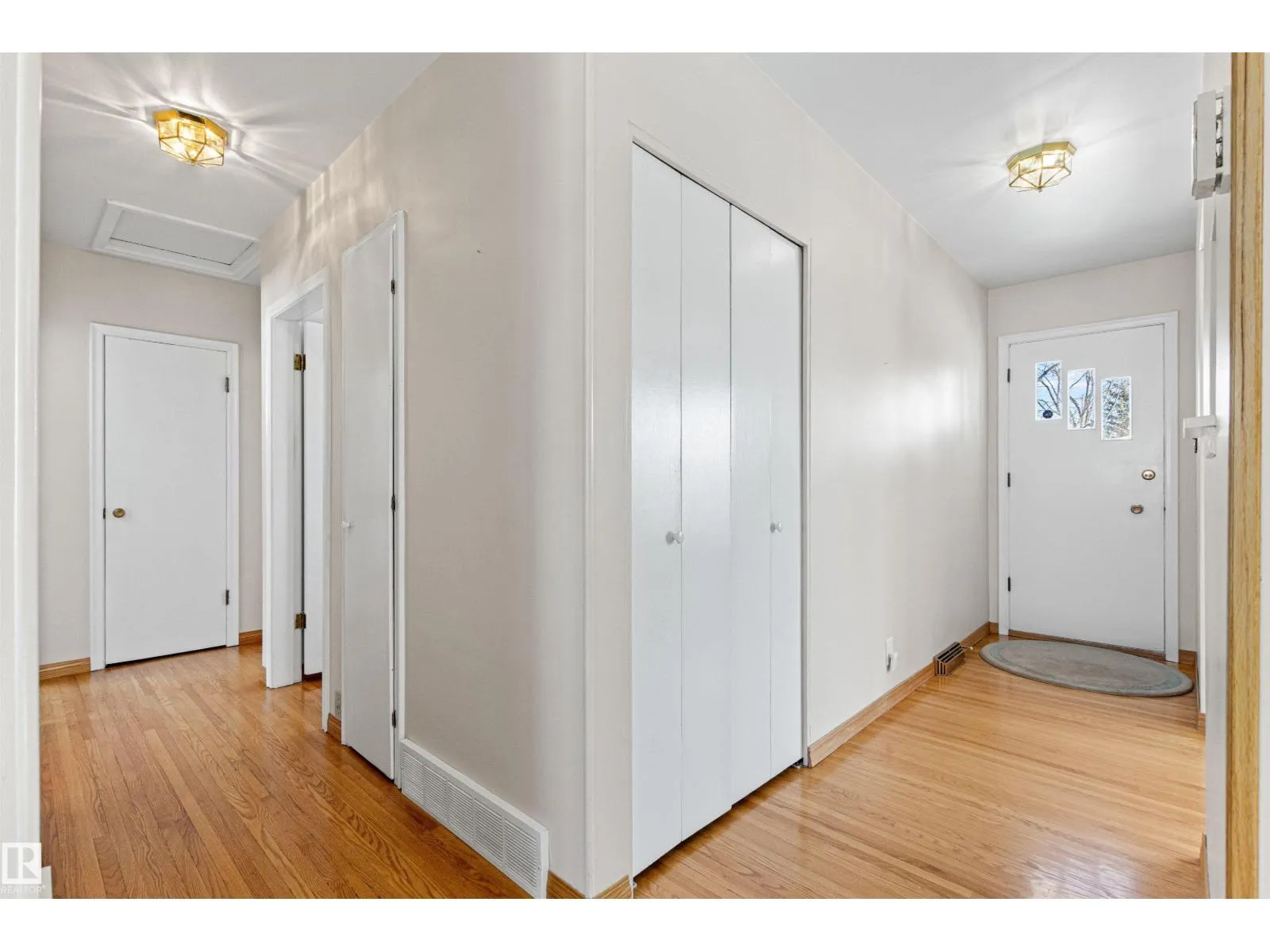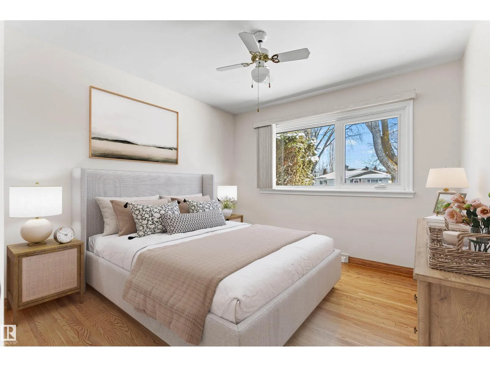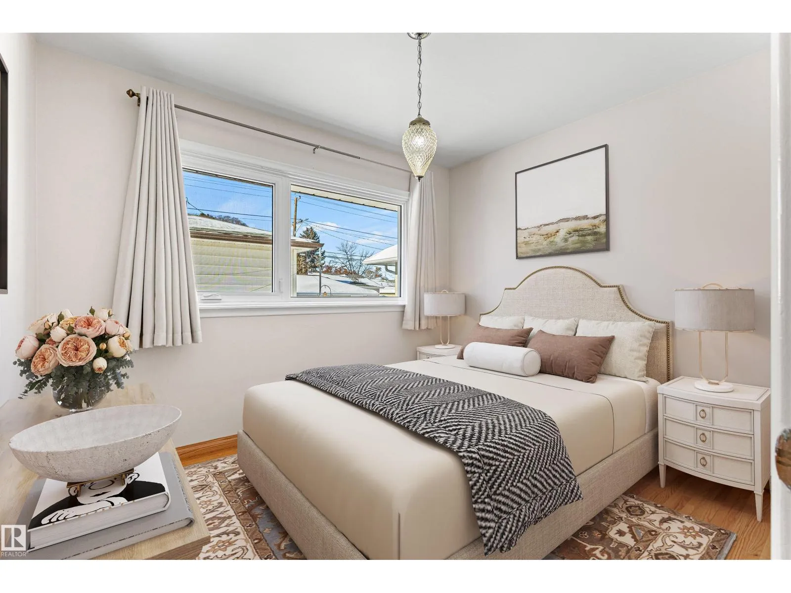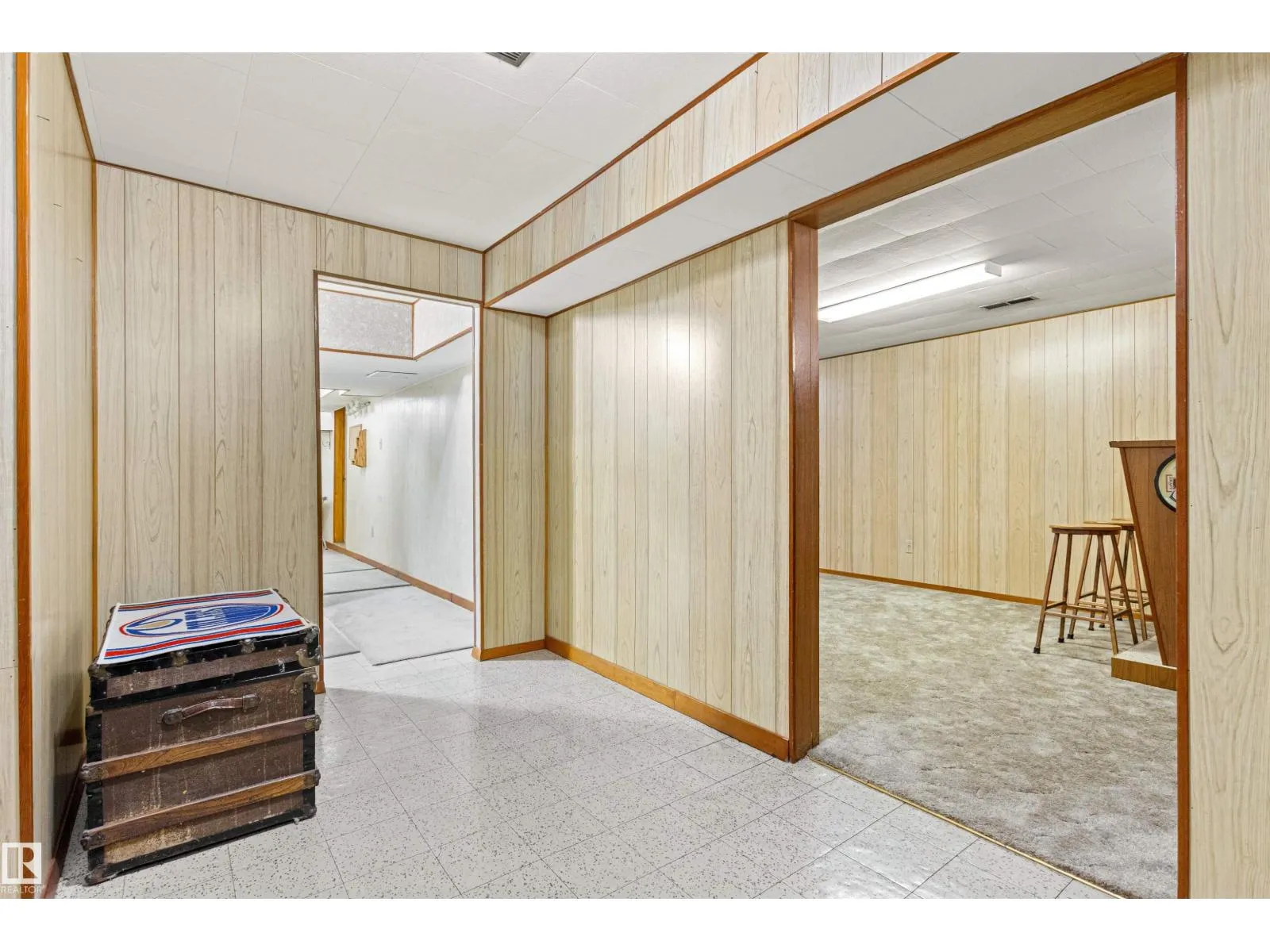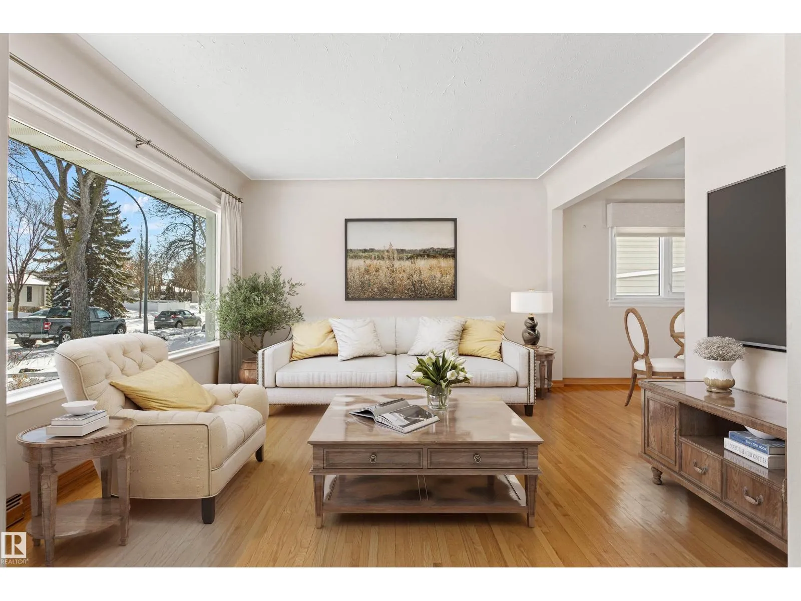 Solid McQueen bungalow has been enjoyed and lovingly cared for by the same family since 1962. Situated on a tree lined street, private West back yard, underground sprinkler front/back, detached heated oversized double garage (23'9X26'9) and RV parking. Garage has 10' ceiling, 220V, 18' overhead door, car wash, floor drain, steel beam w hoist, wall of cabinets and plenty of space for a work shop. This lovely home has charm and character with original hardwood floors & coved ceiling. Main floor has 3 bedrooms, upgraded 4 piece bath, spacious living rm, formal dining rm with built in cabinet, well designed kitchen with solid wood cabinets and breakfast nook. Basement has large family rm with wall unit & bar, 4th bedroom, 3 piece bath, cold rm, laundry/utility rm & storage. Walking distance to all levels of schools including Thrive Elementary and Archbishop MacDonald. Quick commute to Downtown, Groat Road, Yellowhead Trail and Whitemud Drive. Family friendly neighbourhood close to all amenitities. (id:27476)