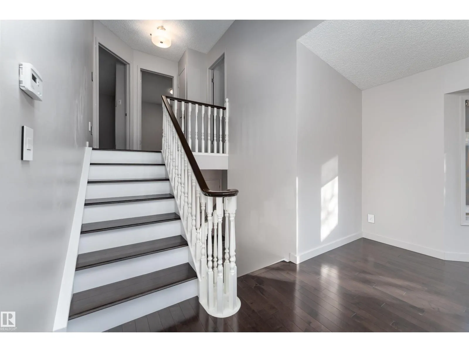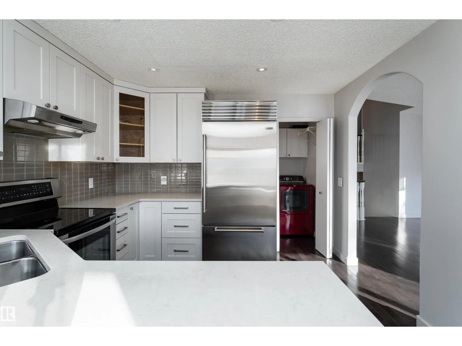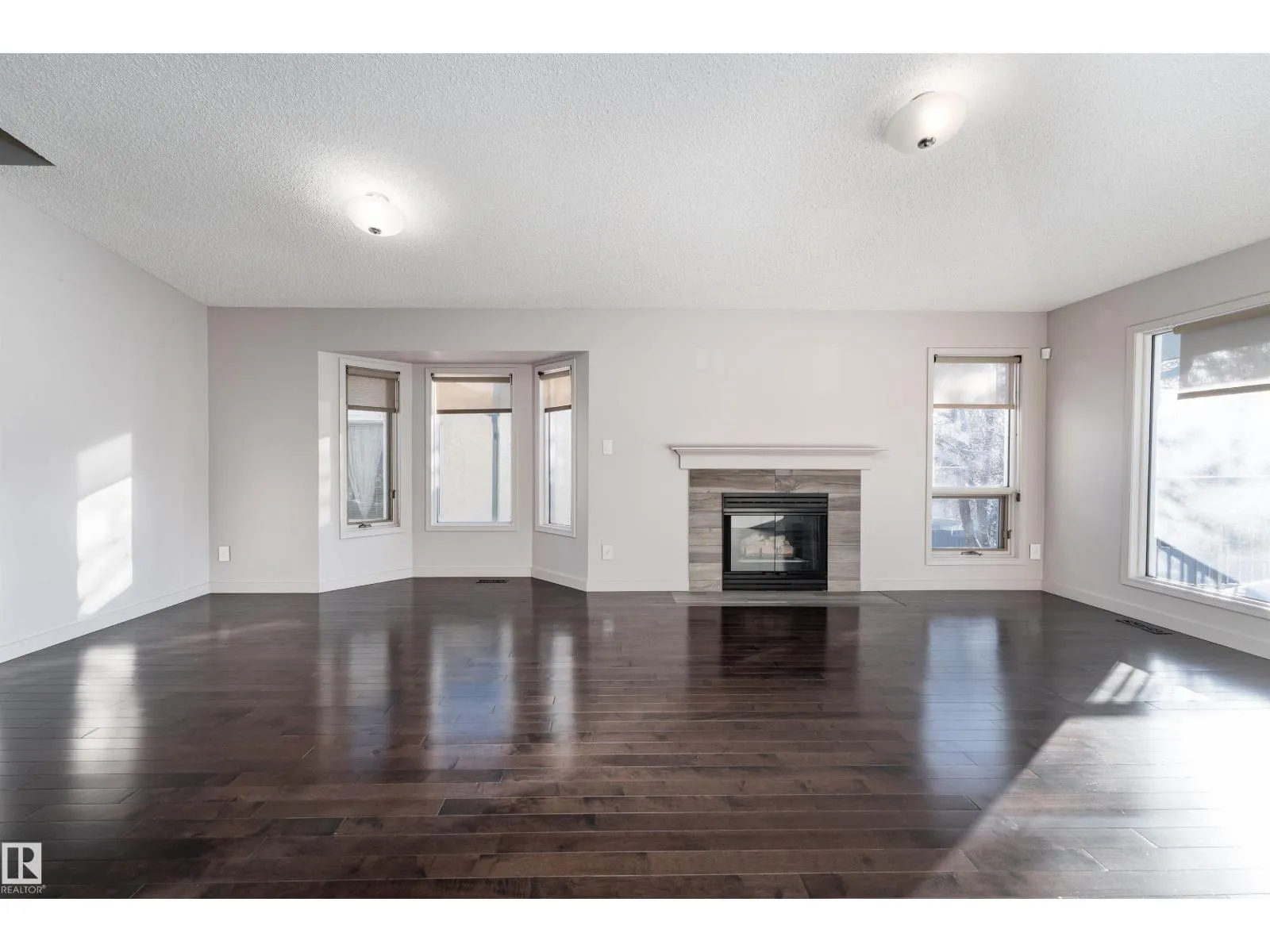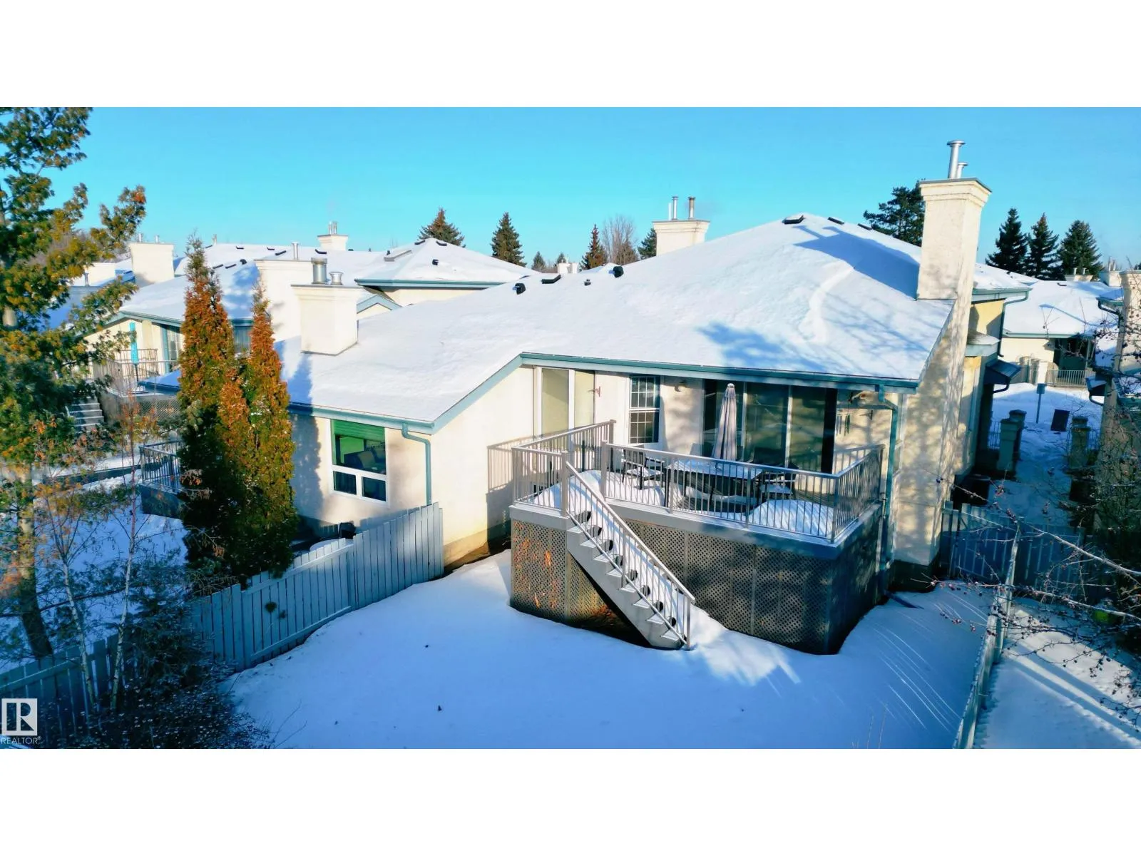 Charming 3-level split half duplex located in the sought-after adult living community of Whitemud Creek Estates, Ogilvie Ridge Phase 1. A bright and spacious living room welcomes you with a cozy fireplaceâperfect for relaxing evenings at home. The kitchen features crisp white cabinetry and ample counter space, while the adjoining dining area is filled with natural light from a large window overlooking the deck. Upstairs, the primary bedroom offers a peaceful retreat with a walk-in closet and a 4pc ensuite. A second bedroom and an additional 4pc bathroom complete the upper level. The fully finished basement adds even more living space, featuring a generous recreation room with a second fireplace, a third bedroom, a 4pc bathroom, and convenient storage. Step outside to a spacious deck and fully fenced yard. Added comforts include air conditioning, Hunter Douglas blinds and a double attached garage. Low-maintenance living in a serene community surrounded by mature trees and nearby walking trails. (id:27476)