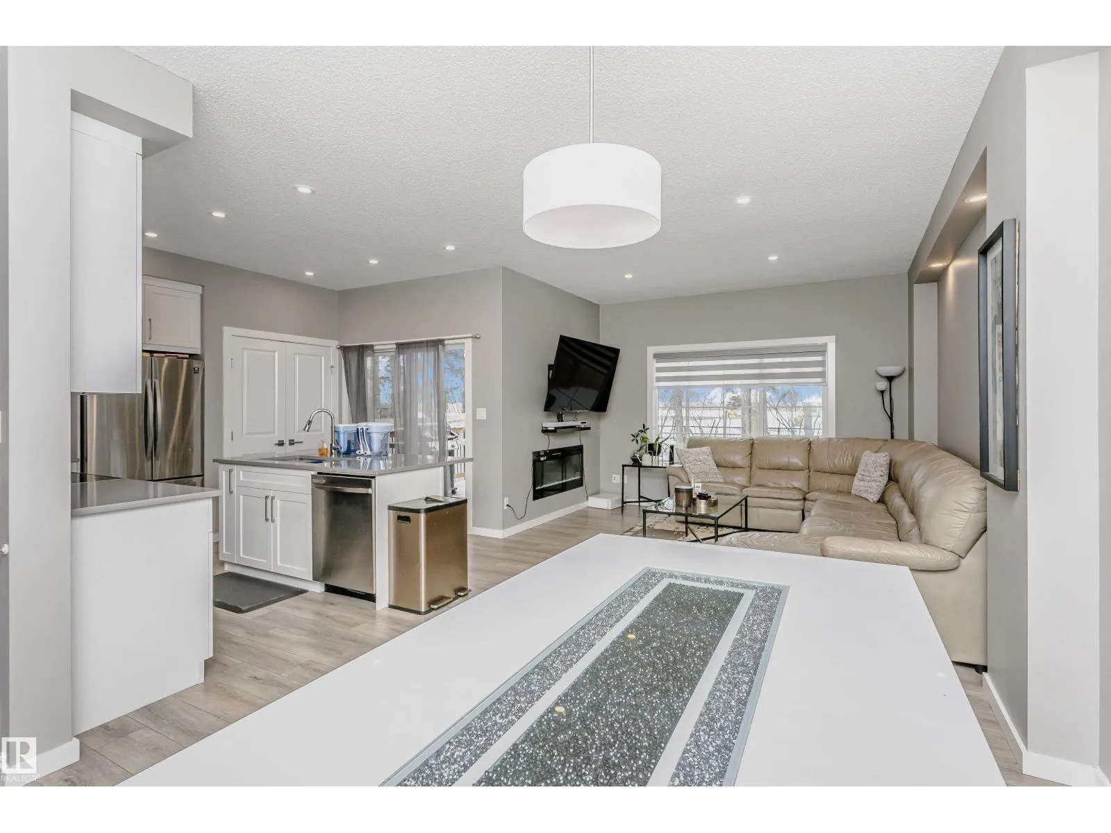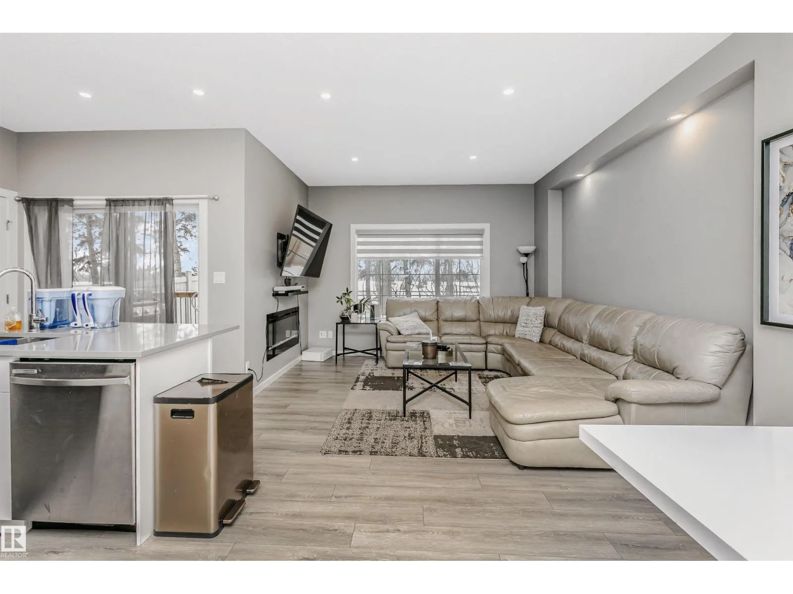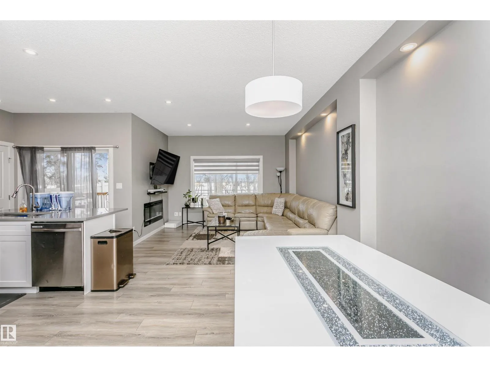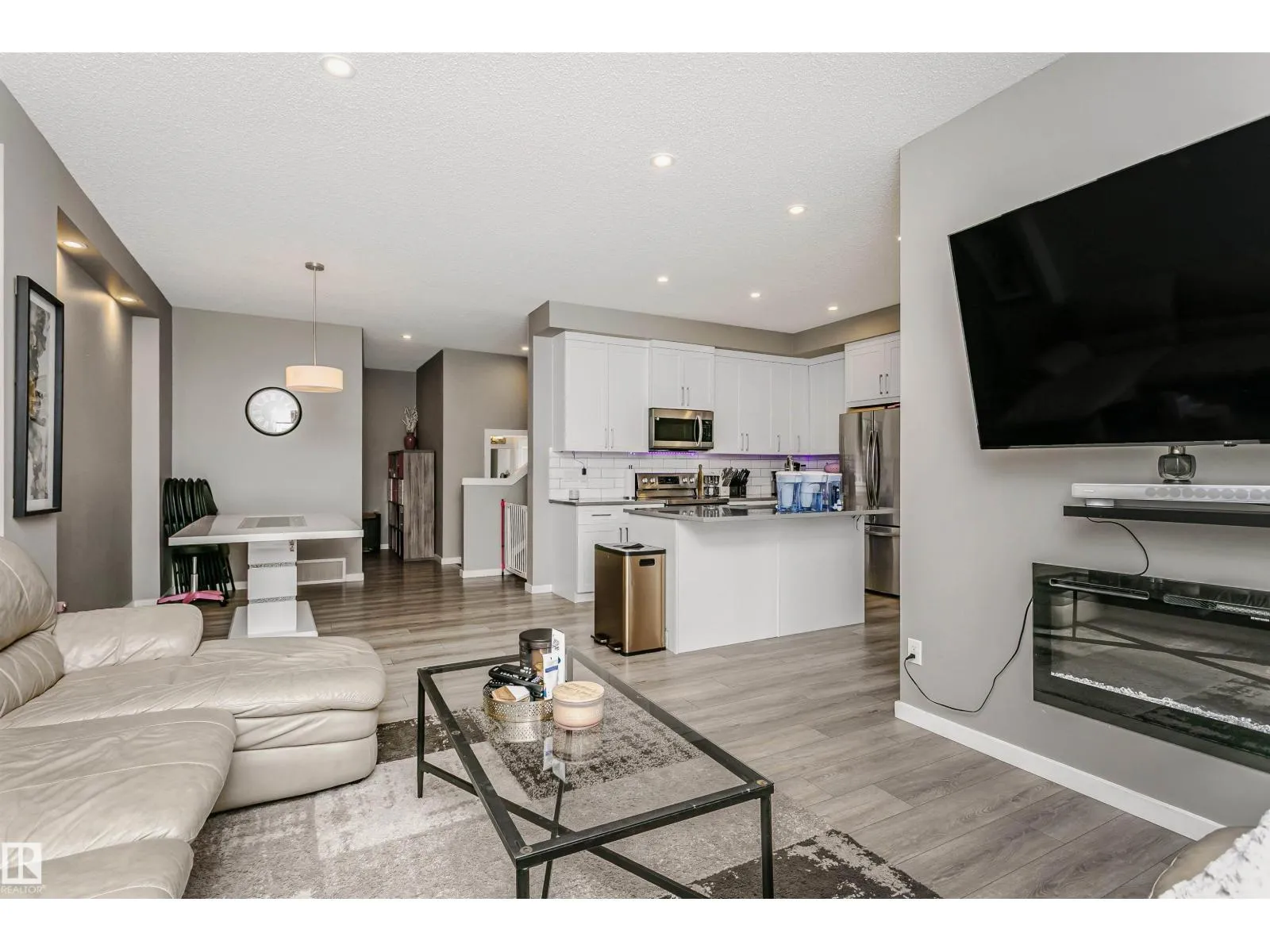 Welcome to this desirable community of Chappelle in SW Edmonton. This a charming 2-storey, 3 bedrooms, 2.5 bathroom home, which features a bright & open layout. On the main floor, designed for comfortable living & entertaining, you will find a kitchen w/ tall cabinets and quartz countertops, large island, pantry & S.S appliances. A good-sized dining room can fit 6-8 people table. The great room at the rear of the house has an electric linear fireplace & backs West onto a serene tree-line. It gives you a natural light & privacy abound. Upstairs you'll find a central bonus room separating the owners suite from the additional two bedrooms, main bathroom, & a laundry room. Primary bedroom has a large walk in closet, and ensuite with two sinks and walk-in shower! 9' ceilings on the main floor, triple pane windows, LED pot lights. Step outside to enjoy your fenced backyard, neighboring w/ a green space, and a deck, which is perfect for outdoor living. Double attached garage. Close to shopping, parks & schools (id:27476)