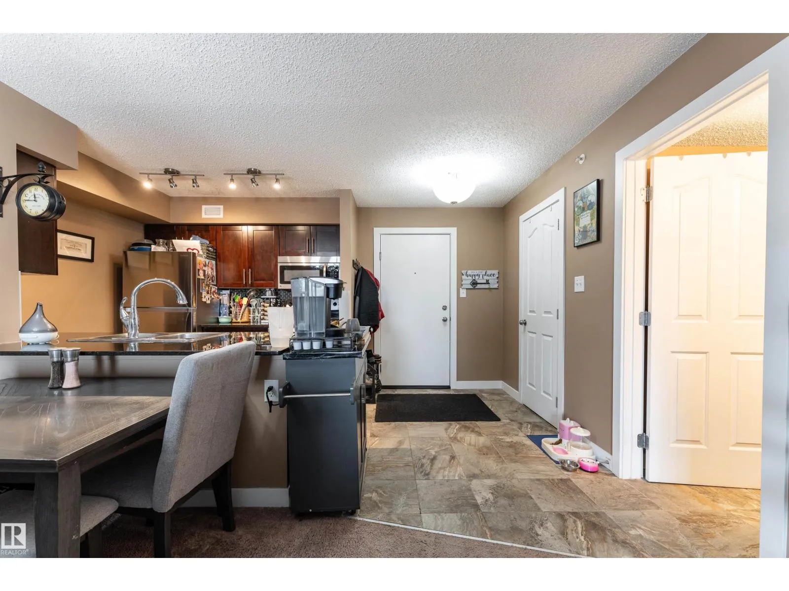 Enjoy the rare advantage of TOP-FLOOR CONDO with TWO TITLED HEATED UNDERGROUND PARKING STALLS â ONE WITH A PRIVATE STORAGE ROOM, a standout feature that truly elevates this homeâs value! Welcome to TOP-FLOOR LIVING in the sought-after McConachie community. This bright and beautifully maintained 2-BEDROOM, 2-BATHROOM condo offers a stylish OPEN-CONCEPT layout ideal for first-time buyers or savvy investors. The modern kitchen showcases STAINLESS STEEL APPLIANCES, QUARTZ COUNTERTOPS, and ample cabinetry, flowing seamlessly into the dining and living areas. A SMART SPLIT-BEDROOM DESIGN ensures privacy, with the spacious primary suite featuring a FULL ENSUITE and generous closet space, while the second bedroom and bath are perfect for guests, roommates, or a HOME OFFICE. Enjoy peaceful top-floor views, IN-SUITE LAUNDRY ROOM with ADDITIONAL STORAGE and NEWER STACKED WASHER/DRYER and low-maintenance livingâall just minutes from SCHOOLS, PARKS, SHOPPING, TRANSIT AND MAJOR HIGHWAYS. (id:27476)