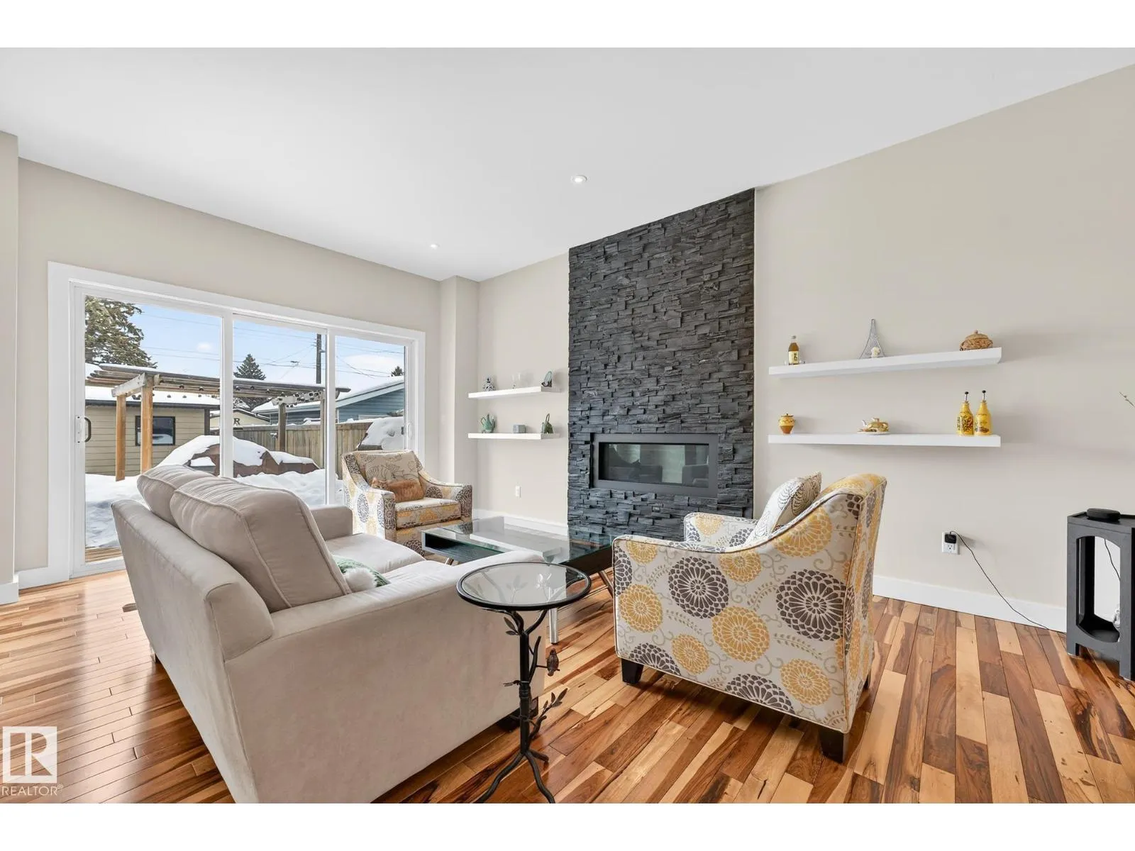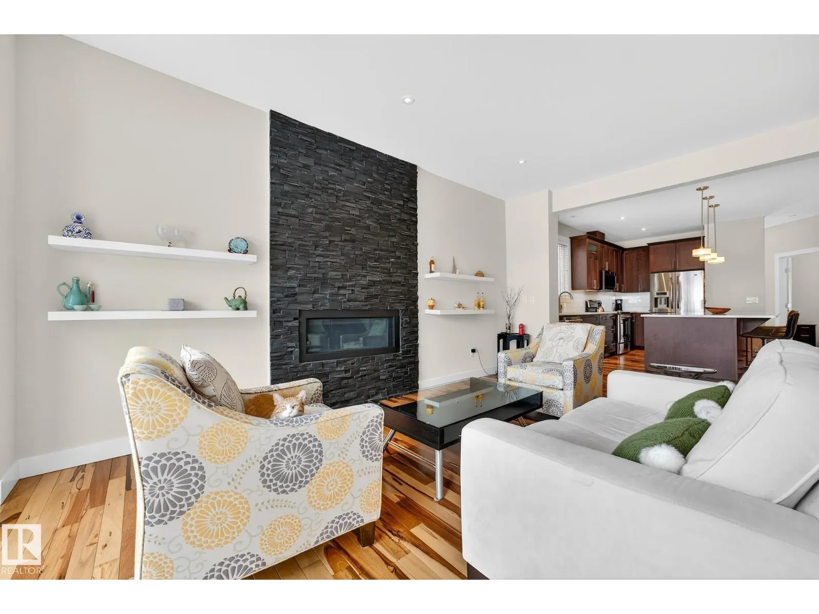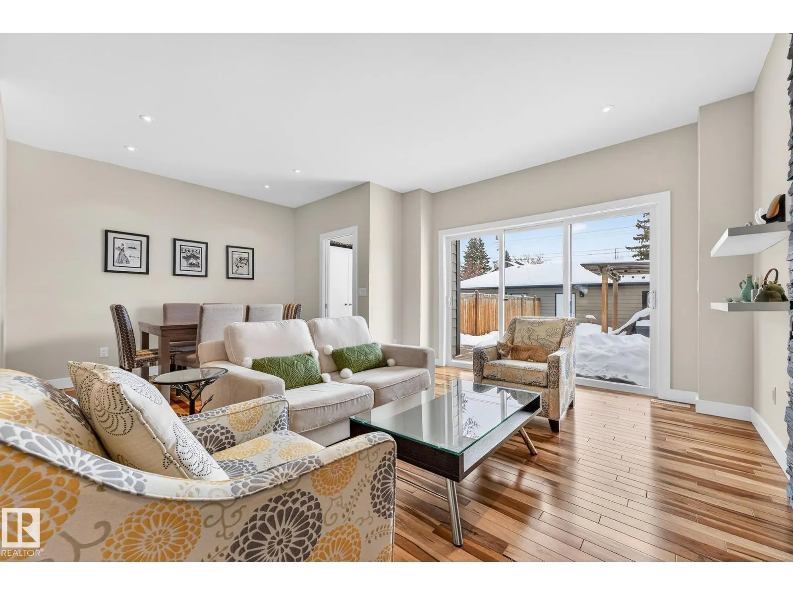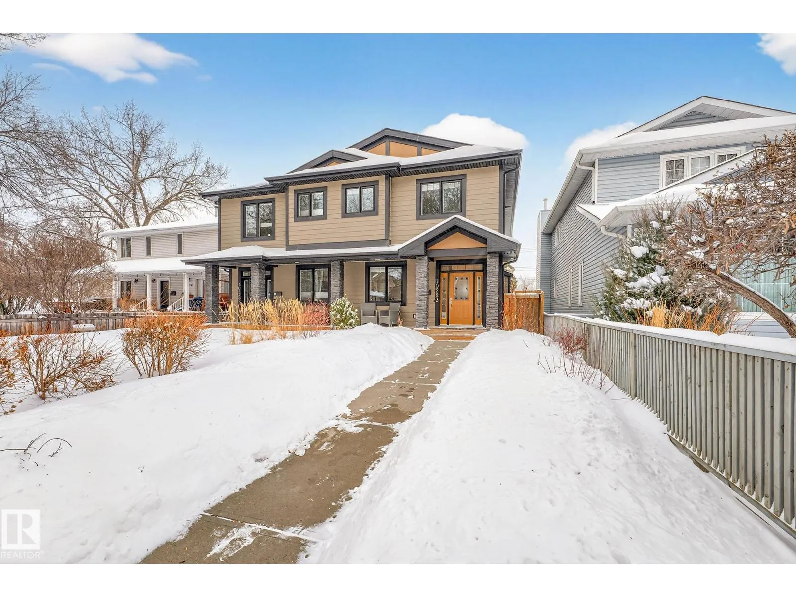 Welcome to Riverdale â one of Edmontonâs most sought-after communities, just minutes to downtown and steps from the river valley trails. This fully finished 1,863 sq ft executive home is designed for modern living, delivering sophisticated interiors and functional spaces. The main floor features a large living & dining area, den & chefâs kitchen designed for entertaining, complemented by rich Brazilian pecan hardwood throughout. Upstairs youâll find three spacious bedrooms, convenient second-floor laundry, & a stunning primary retreat complete with a large walk-in closet and luxurious 5-pc ensuite. The fully finished basement adds even more living space with a generous rec room, fourth bedroom, 4-pc bath, and abundant storage. Enjoy low-maintenance living with ecoscaping in the front and a thoughtfully designed backyard showcasing stone patios, wood decks, pergola, a fountain, and beautiful perennials. The oversized double garage is insulated & heated. An exceptional opportunity in an unbeatable location. (id:27476)