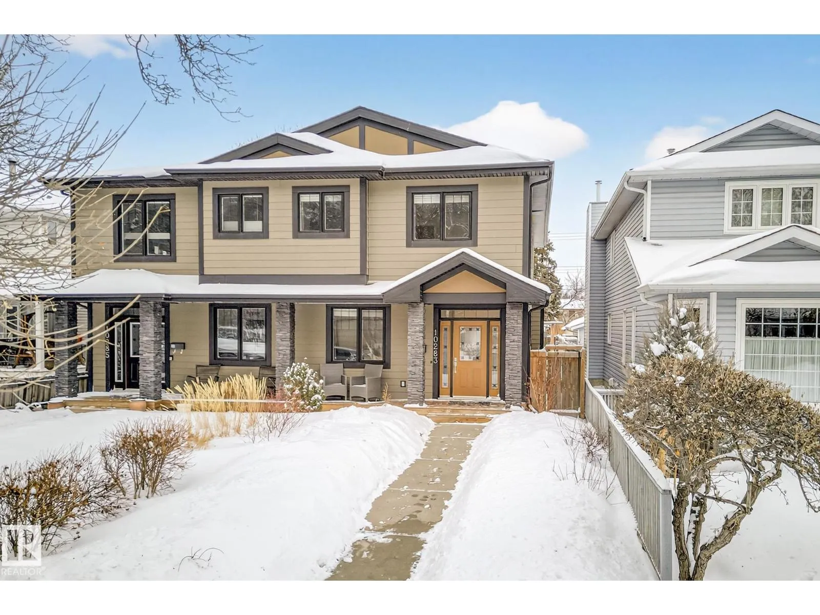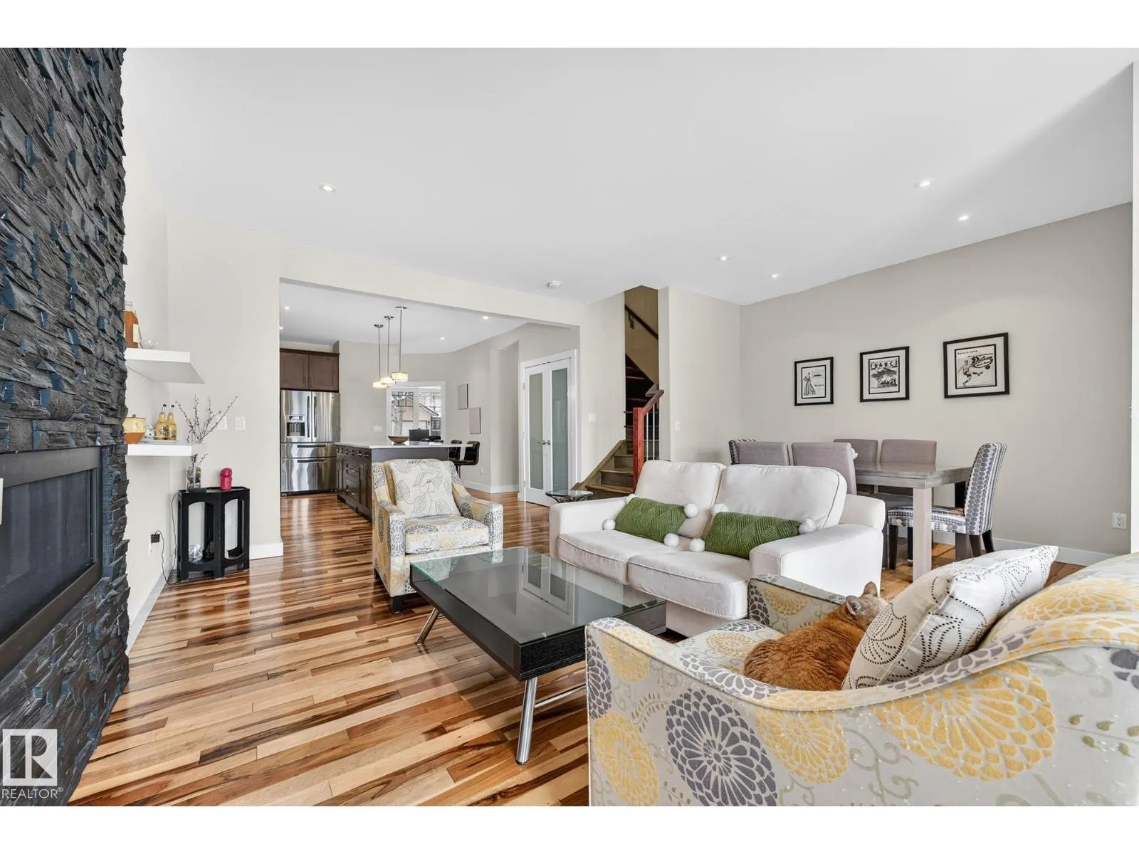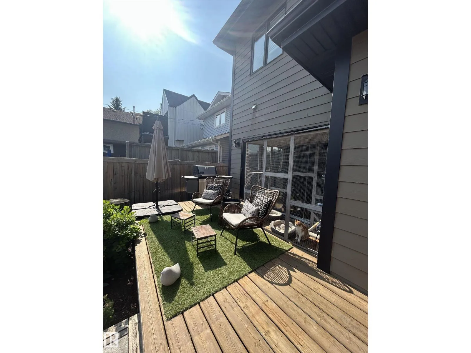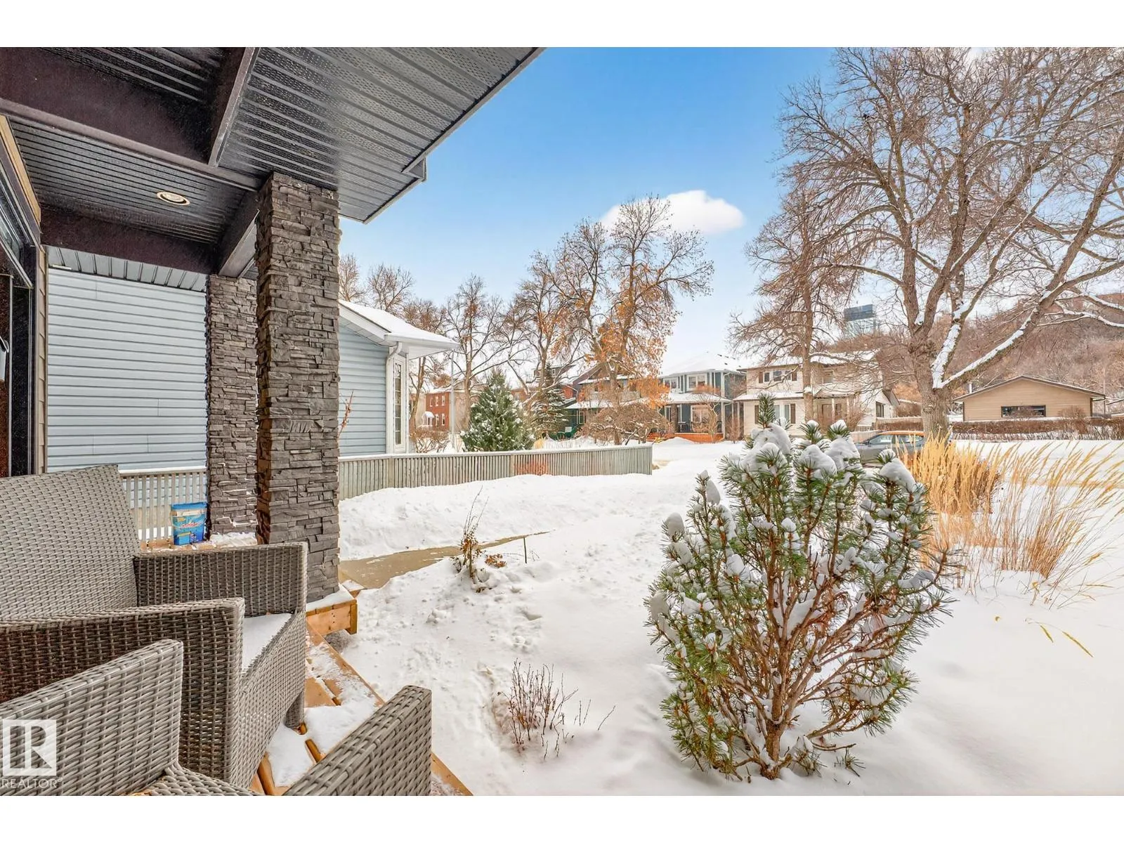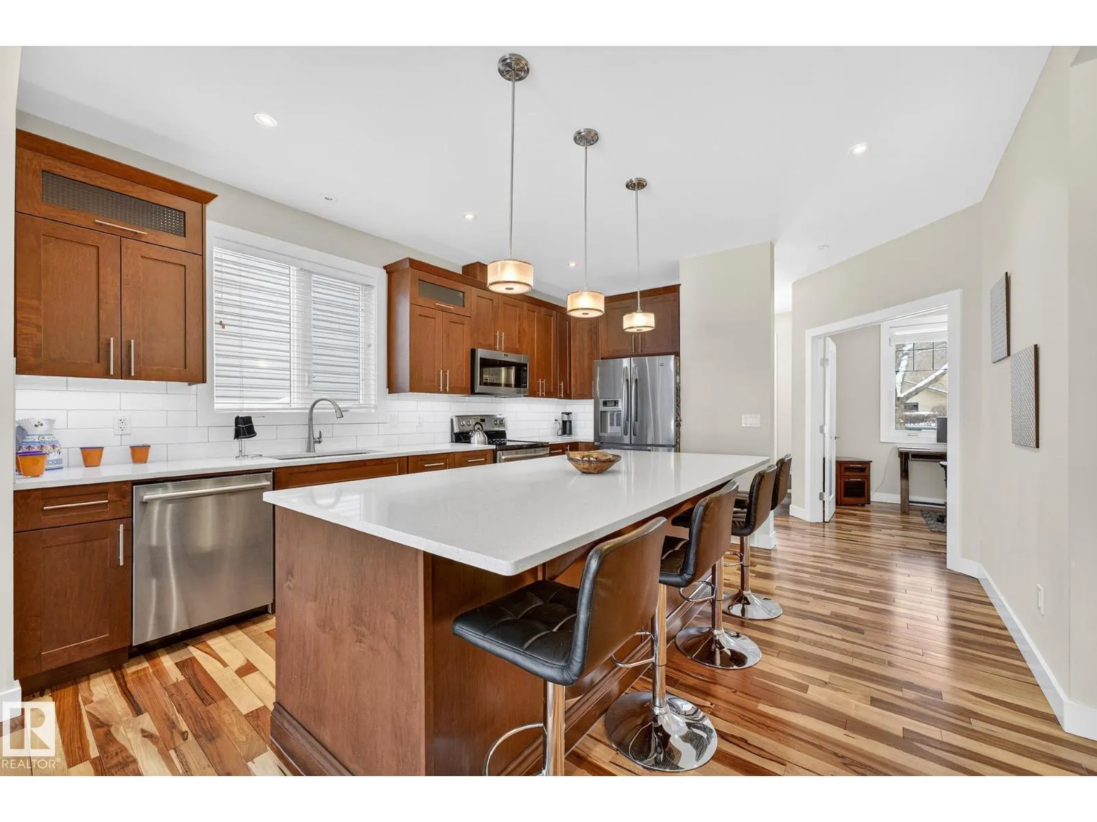 Welcome to Riverdale â one of Edmontonâs most sought-after communities, just minutes to downtown and steps from the river valley trails. This fully finished 1,863 sq ft executive home is designed for modern living, delivering sophisticated interiors and functional spaces. The main floor features a large living & dining area, den & chefâs kitchen designed for entertaining, complemented by rich Brazilian pecan hardwood throughout. Upstairs youâll find three spacious bedrooms, convenient second-floor laundry, & a stunning primary retreat complete with a large walk-in closet and luxurious 5-pc ensuite. The fully finished basement adds even more living space with a generous rec room, fourth bedroom, 4-pc bath, and abundant storage. Enjoy low-maintenance living with ecoscaping in the front and a thoughtfully designed backyard showcasing stone patios, wood decks, pergola, a fountain, and beautiful perennials. The oversized double garage is insulated & heated. An exceptional opportunity in an unbeatable location. (id:27476)