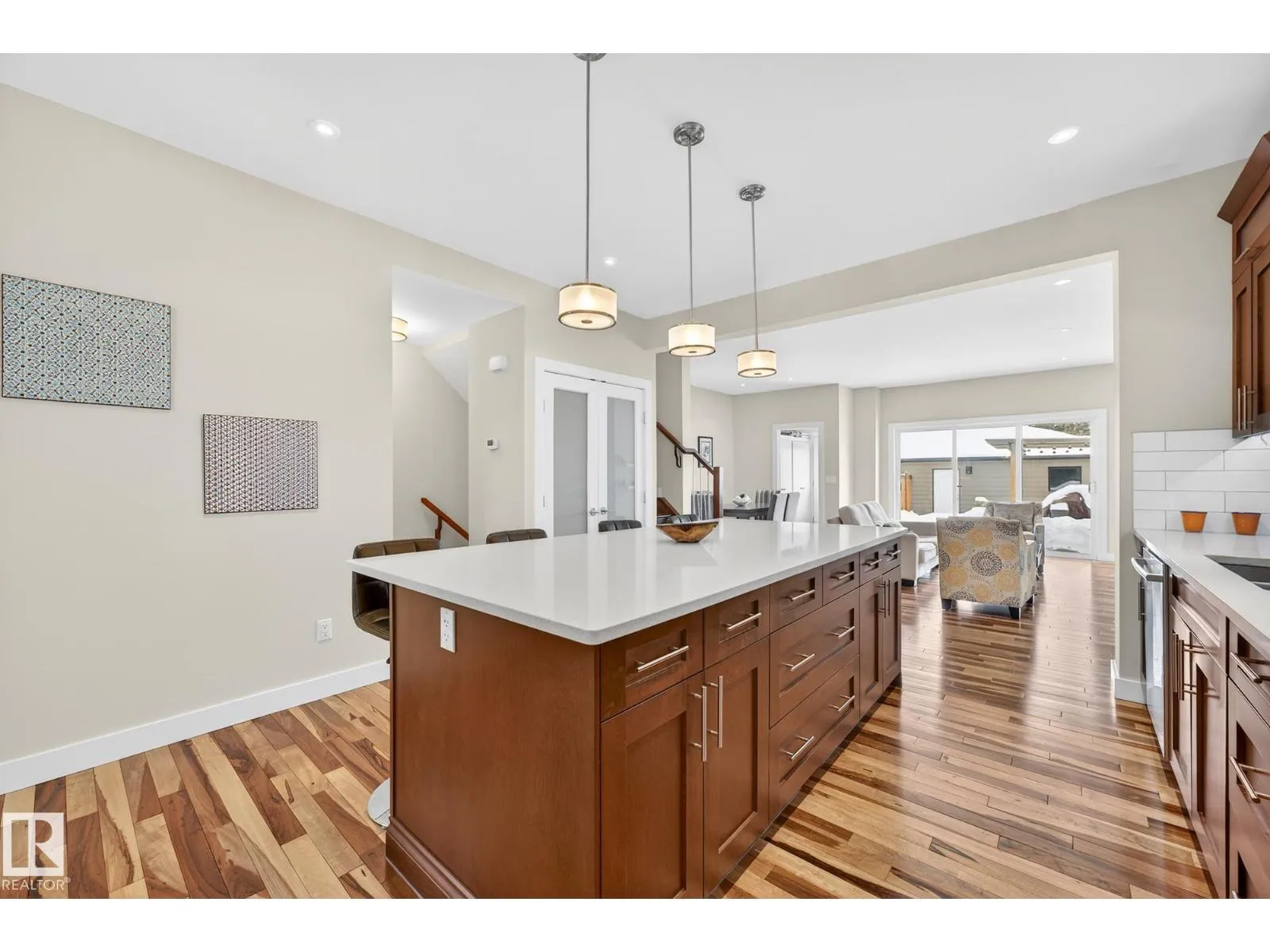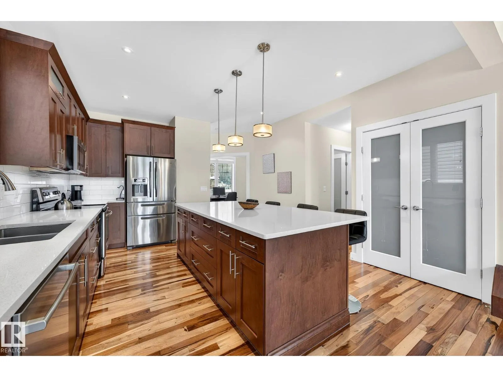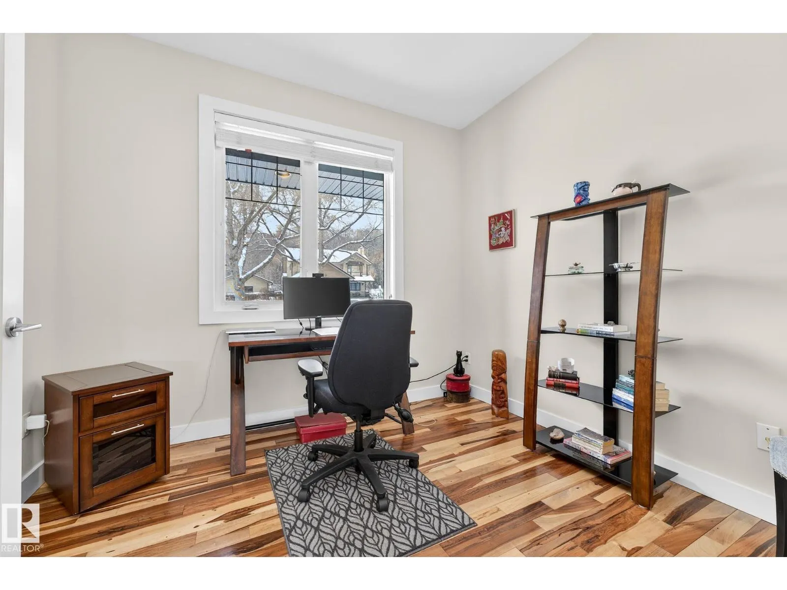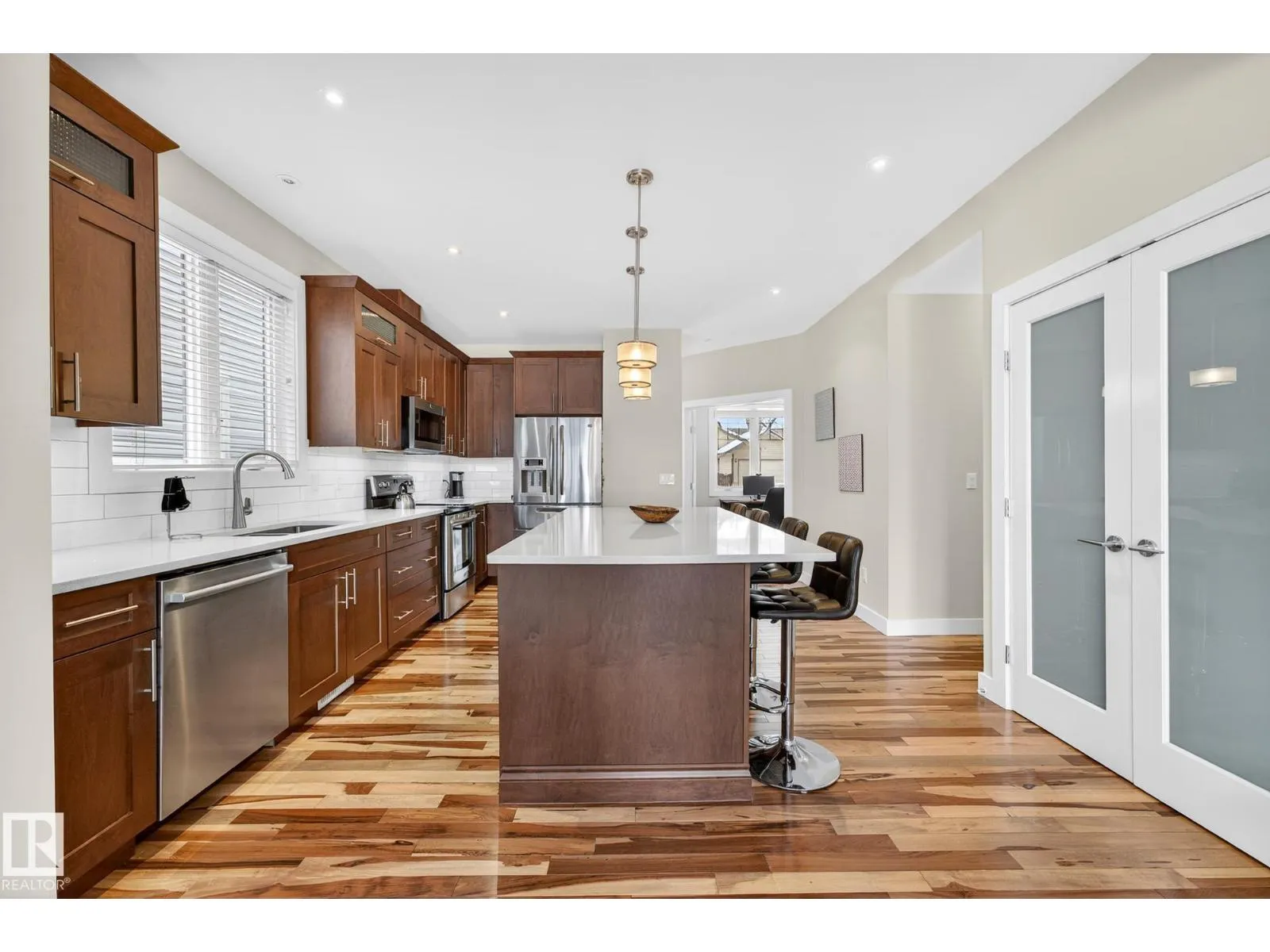 Welcome to Riverdale â one of Edmontonâs most sought-after communities, just minutes to downtown and steps from the river valley trails. This fully finished 1,863 sq ft executive home is designed for modern living, delivering sophisticated interiors and functional spaces. The main floor features a large living & dining area, den & chefâs kitchen designed for entertaining, complemented by rich Brazilian pecan hardwood throughout. Upstairs youâll find three spacious bedrooms, convenient second-floor laundry, & a stunning primary retreat complete with a large walk-in closet and luxurious 5-pc ensuite. The fully finished basement adds even more living space with a generous rec room, fourth bedroom, 4-pc bath, and abundant storage. Enjoy low-maintenance living with ecoscaping in the front and a thoughtfully designed backyard showcasing stone patios, wood decks, pergola, a fountain, and beautiful perennials. The oversized double garage is insulated & heated. An exceptional opportunity in an unbeatable location. (id:27476)