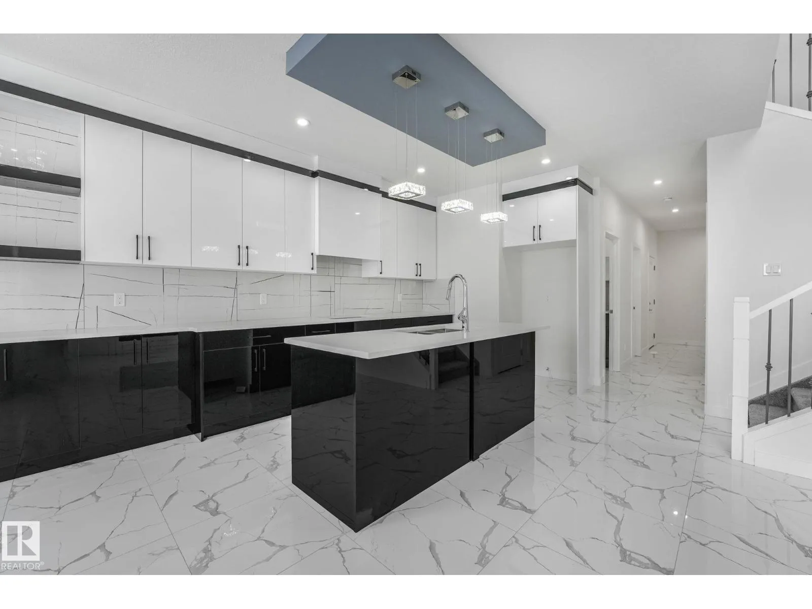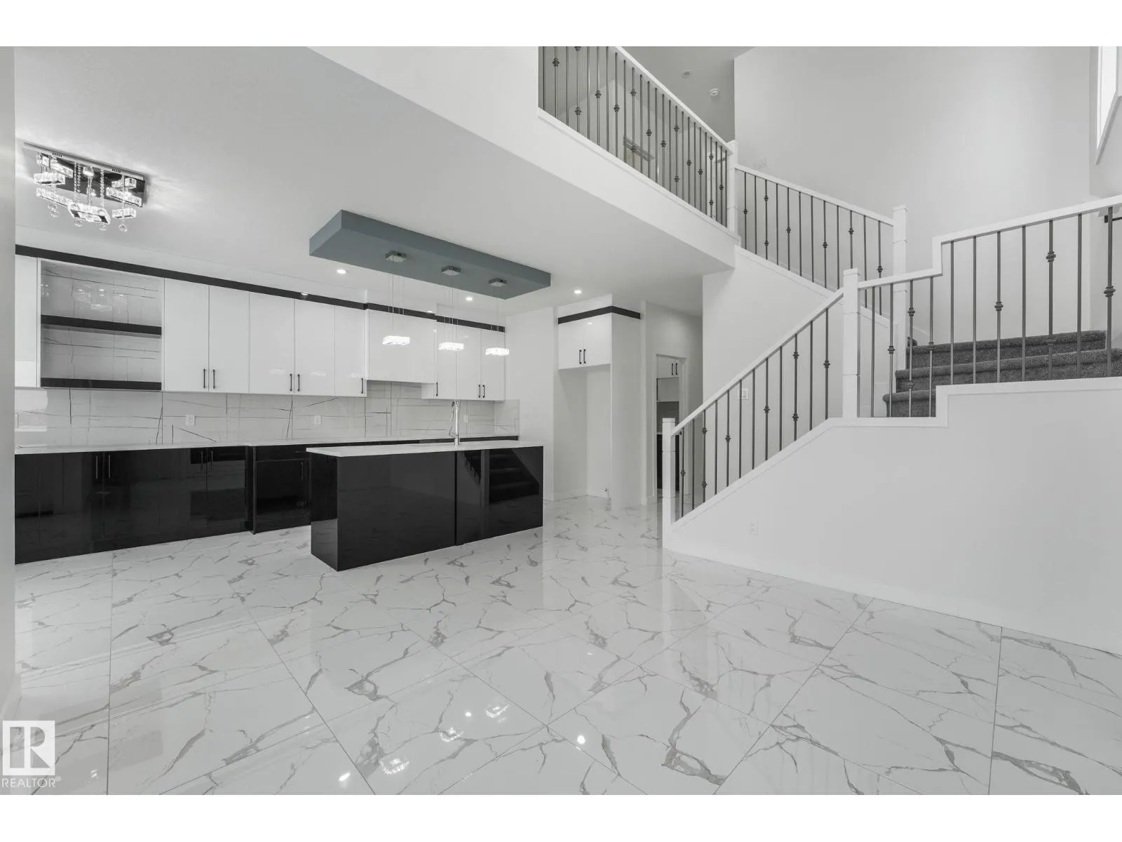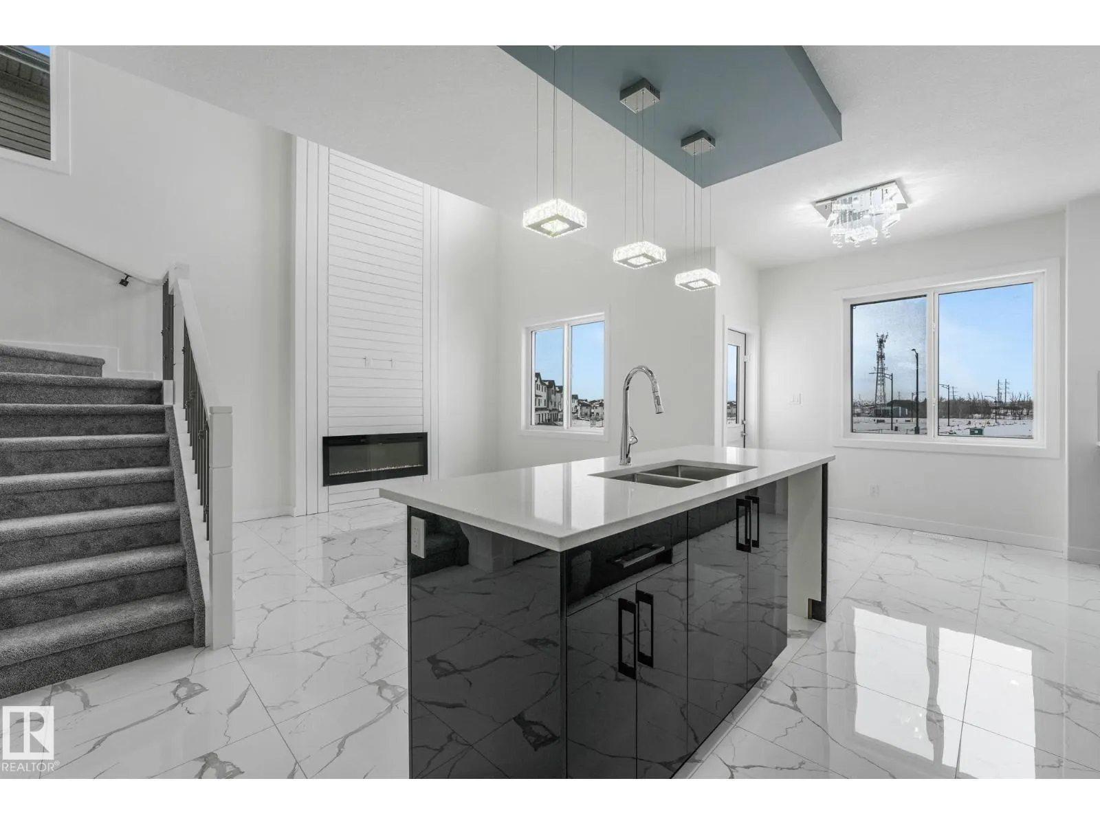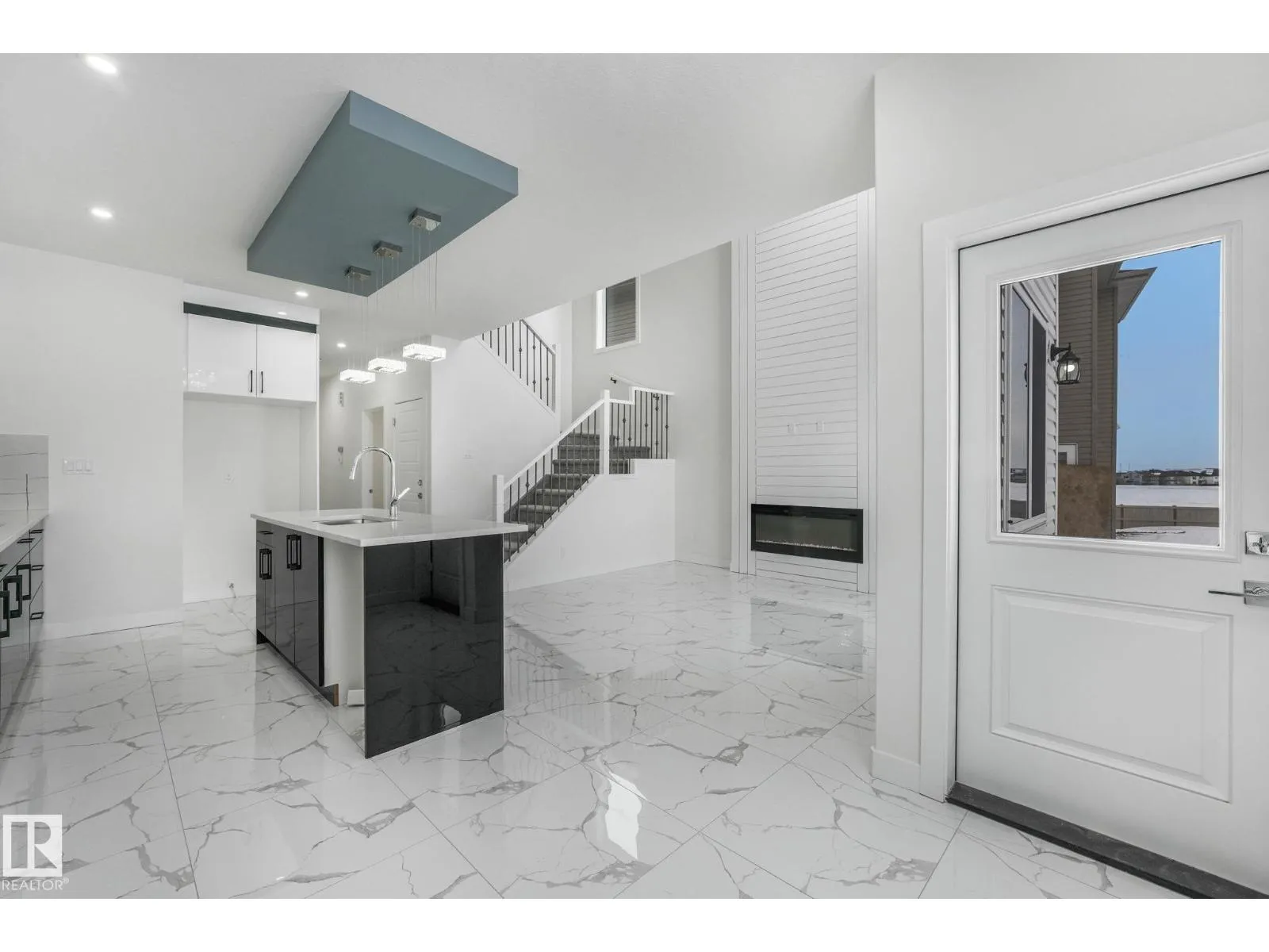 Welcome to this brand-new duplex in Aster, thoughtfully designed for modern family living with strong income potential. The main floor features a private office and full bathroom, ideal for guests or a work-from-home setup, along with a stunning open-to-below living room with a fireplace that creates a bright and spacious atmosphere. The kitchen is both stylish and functional, complete with extended cabinetry and a separate spice kitchen that provides additional prep space and storage. Upstairs, youâll find 3 well-sized bedrooms and a versatile bonus room, perfect for a media area, playroom, or second family space. The fully finished basement includes a 2-bedroom legal suite, offering a great opportunity for rental income or multi-generational living. A front attached double garage adds everyday convenience and curb appeal. Located in Southeast Edmonton, Aster is a growing community featuring landscaped green spaces, walking trails, and a playground, with quick access to shopping, schools, and recreation. (id:27476)