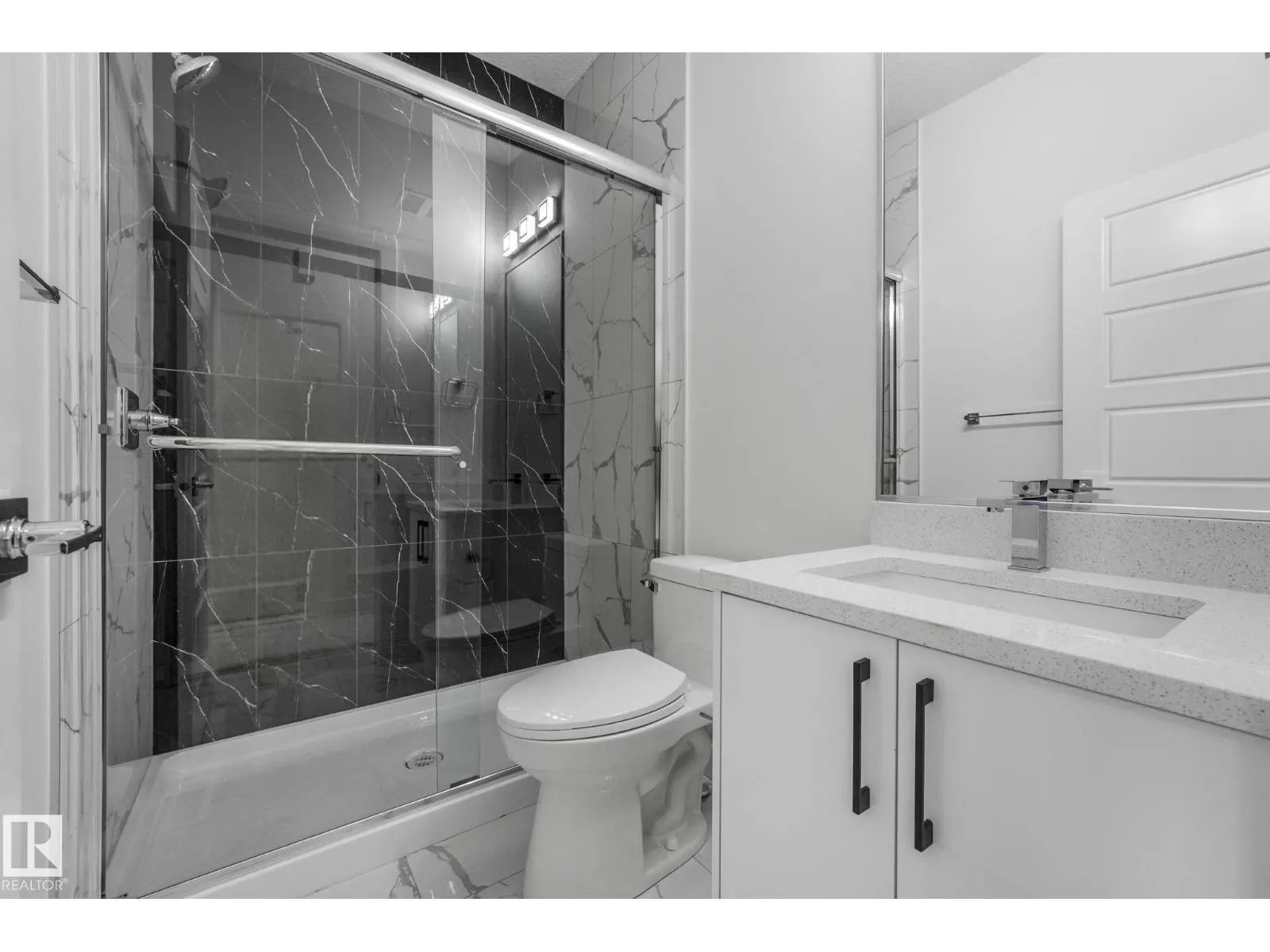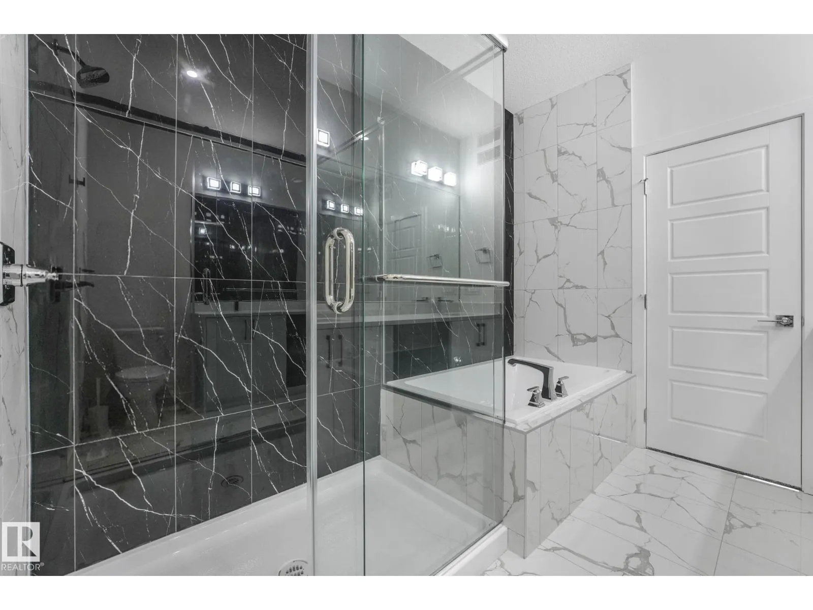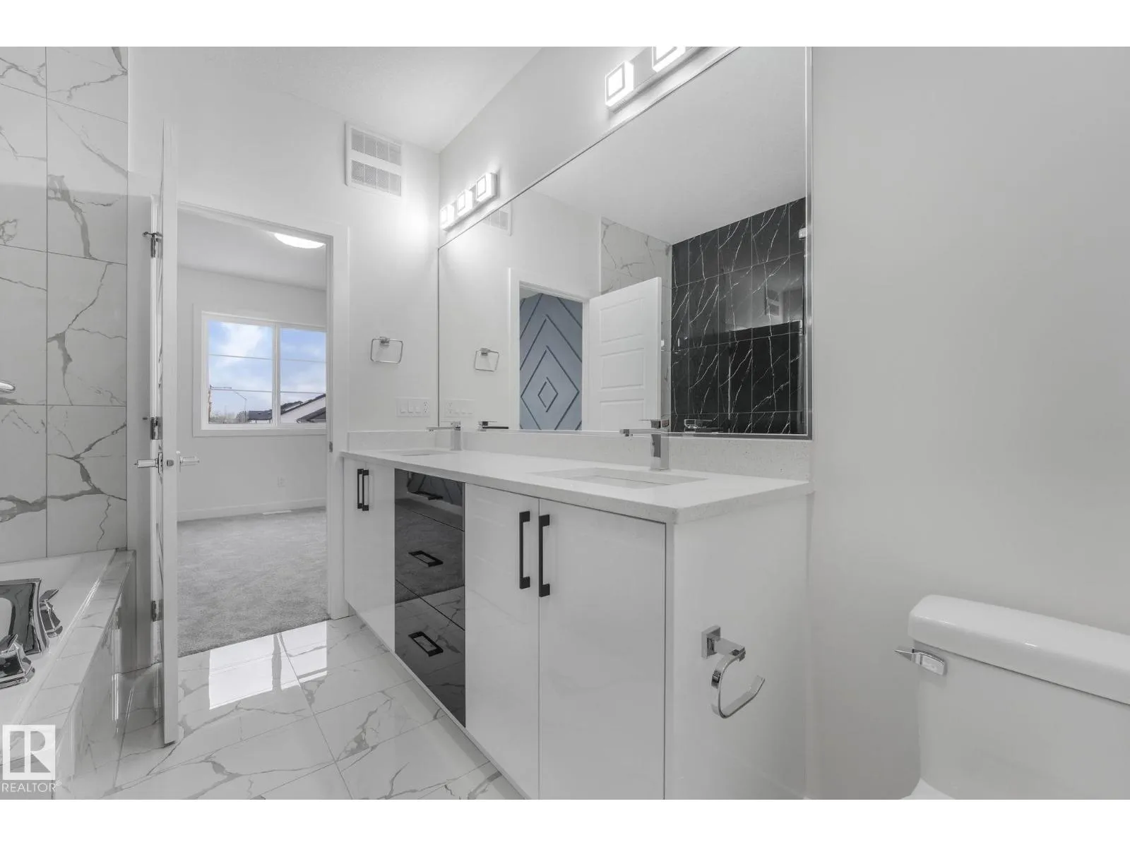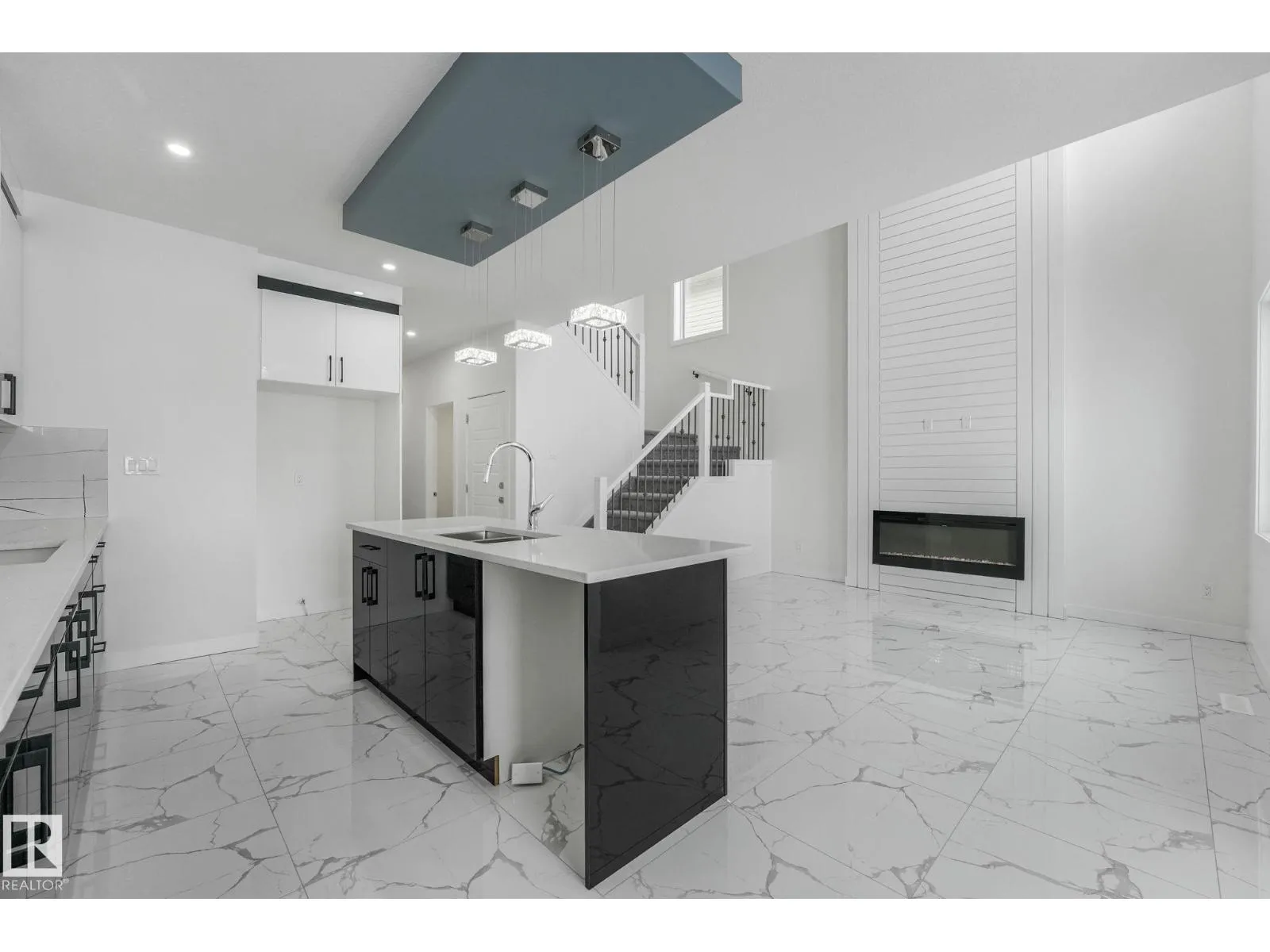 Welcome to this brand-new duplex in Aster, thoughtfully designed for modern family living with strong income potential. The main floor features a private office and full bathroom, ideal for guests or a work-from-home setup, along with a stunning open-to-below living room with a fireplace that creates a bright and spacious atmosphere. The kitchen is both stylish and functional, complete with extended cabinetry and a separate spice kitchen that provides additional prep space and storage. Upstairs, youâll find 3 well-sized bedrooms and a versatile bonus room, perfect for a media area, playroom, or second family space. The fully finished basement includes a 2-bedroom legal suite, offering a great opportunity for rental income or multi-generational living. A front attached double garage adds everyday convenience and curb appeal. Located in Southeast Edmonton, Aster is a growing community featuring landscaped green spaces, walking trails, and a playground, with quick access to shopping, schools, and recreation. (id:27476)