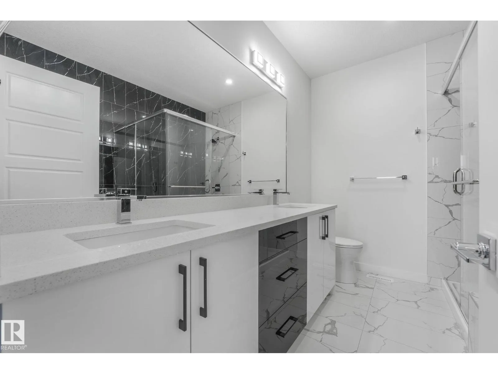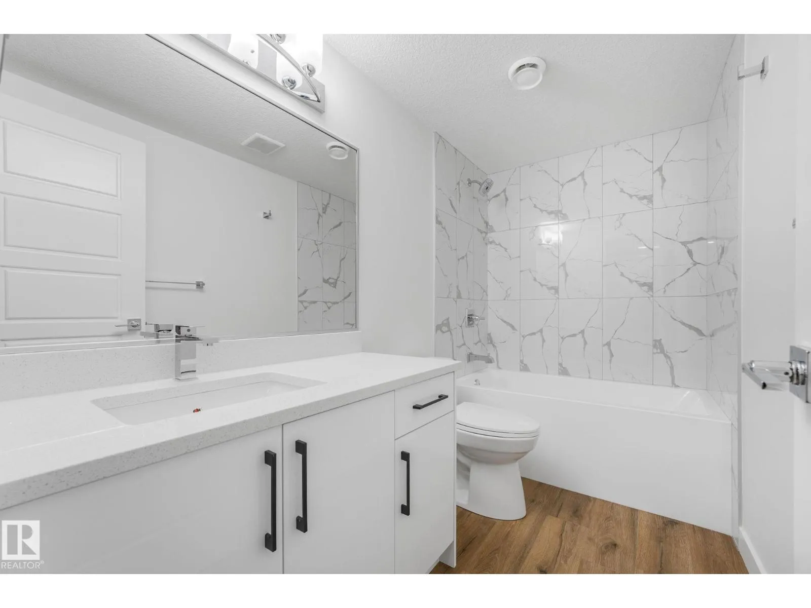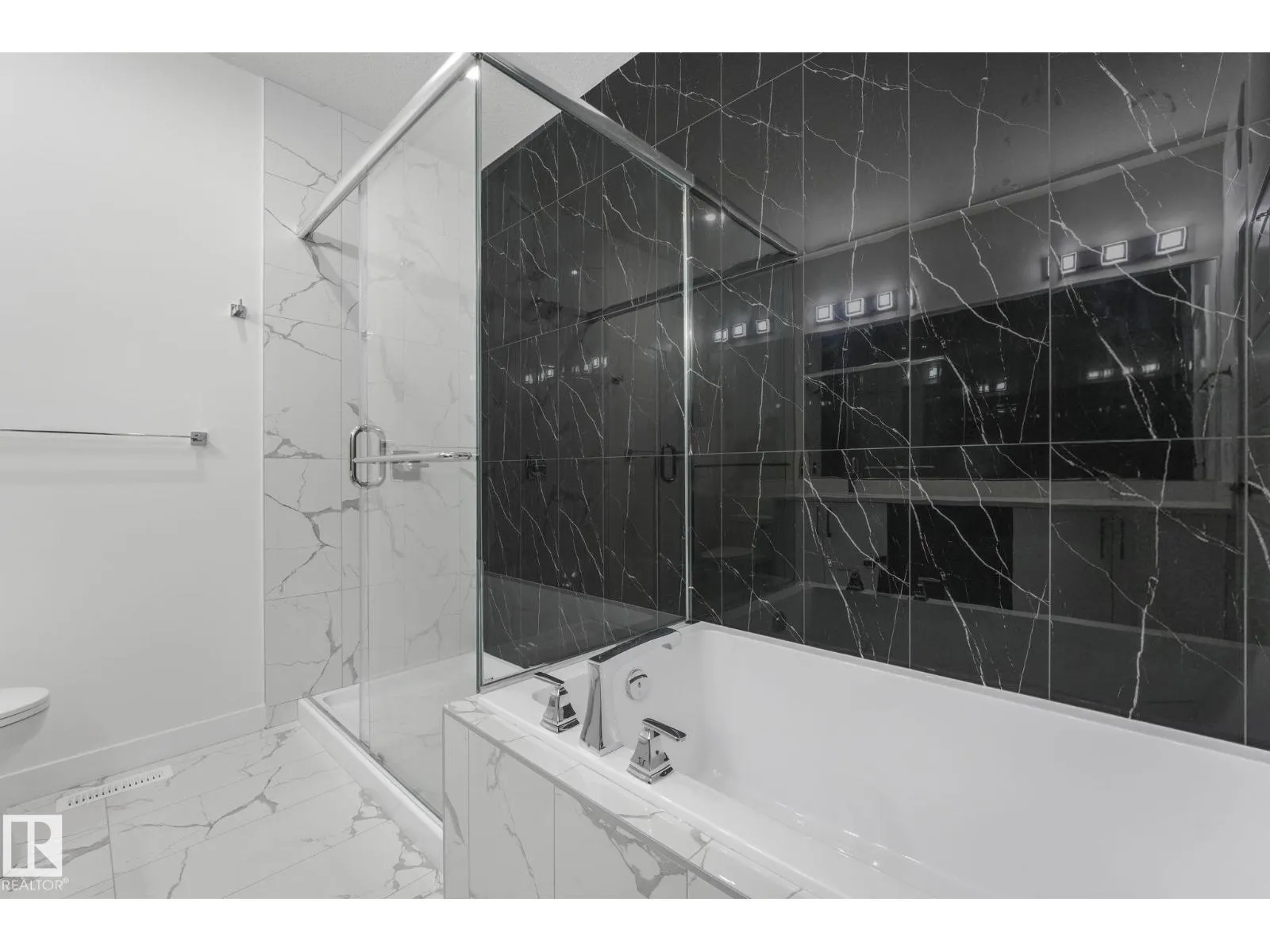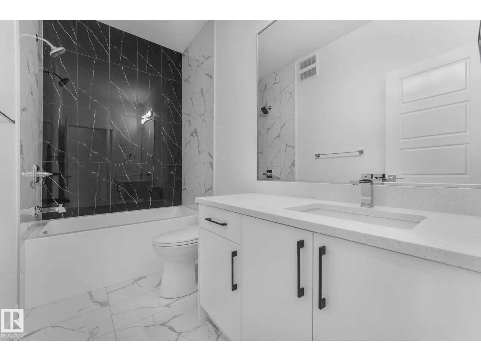 Welcome to this brand-new duplex in Aster, thoughtfully designed for modern family living with strong income potential. The main floor features a private office and full bathroom, ideal for guests or a work-from-home setup, along with a stunning open-to-below living room with a fireplace that creates a bright and spacious atmosphere. The kitchen is both stylish and functional, complete with extended cabinetry and a separate spice kitchen that provides additional prep space and storage. Upstairs, youâll find 3 well-sized bedrooms and a versatile bonus room, perfect for a media area, playroom, or second family space. The fully finished basement includes a 2-bedroom legal suite, offering a great opportunity for rental income or multi-generational living. A front attached double garage adds everyday convenience and curb appeal. Located in Southeast Edmonton, Aster is a growing community featuring landscaped green spaces, walking trails, and a playground, with quick access to shopping, schools, and recreation. (id:27476)