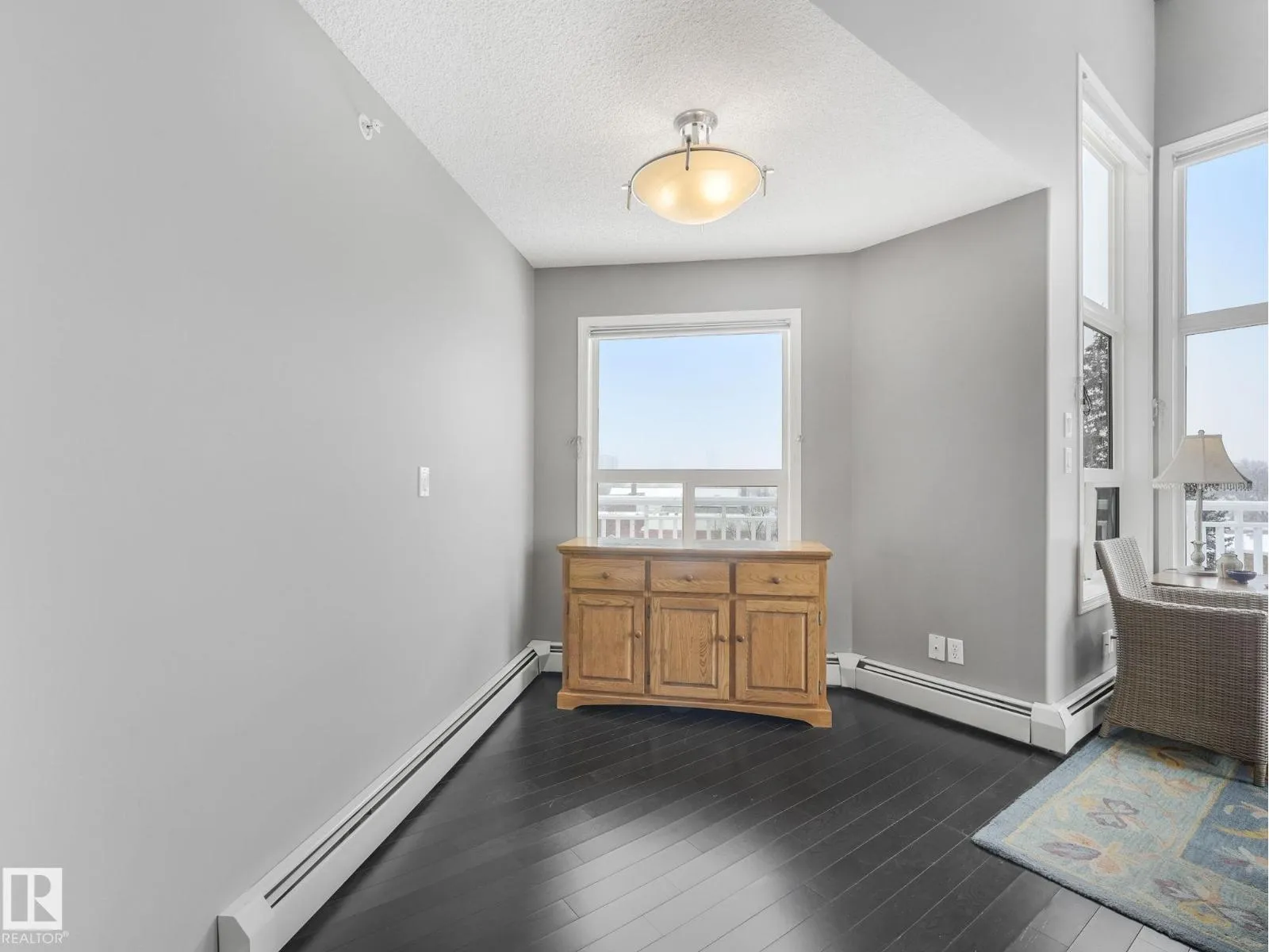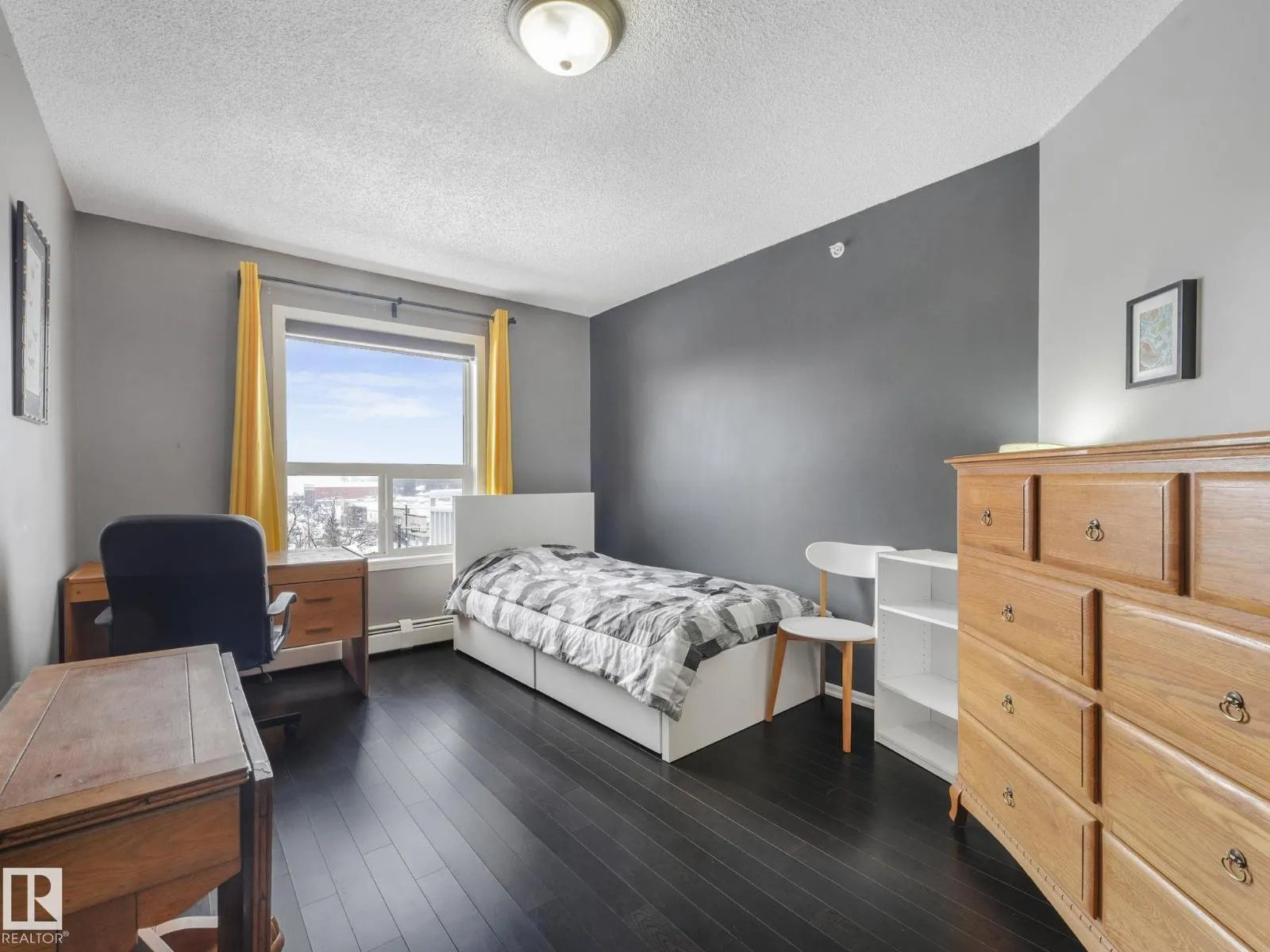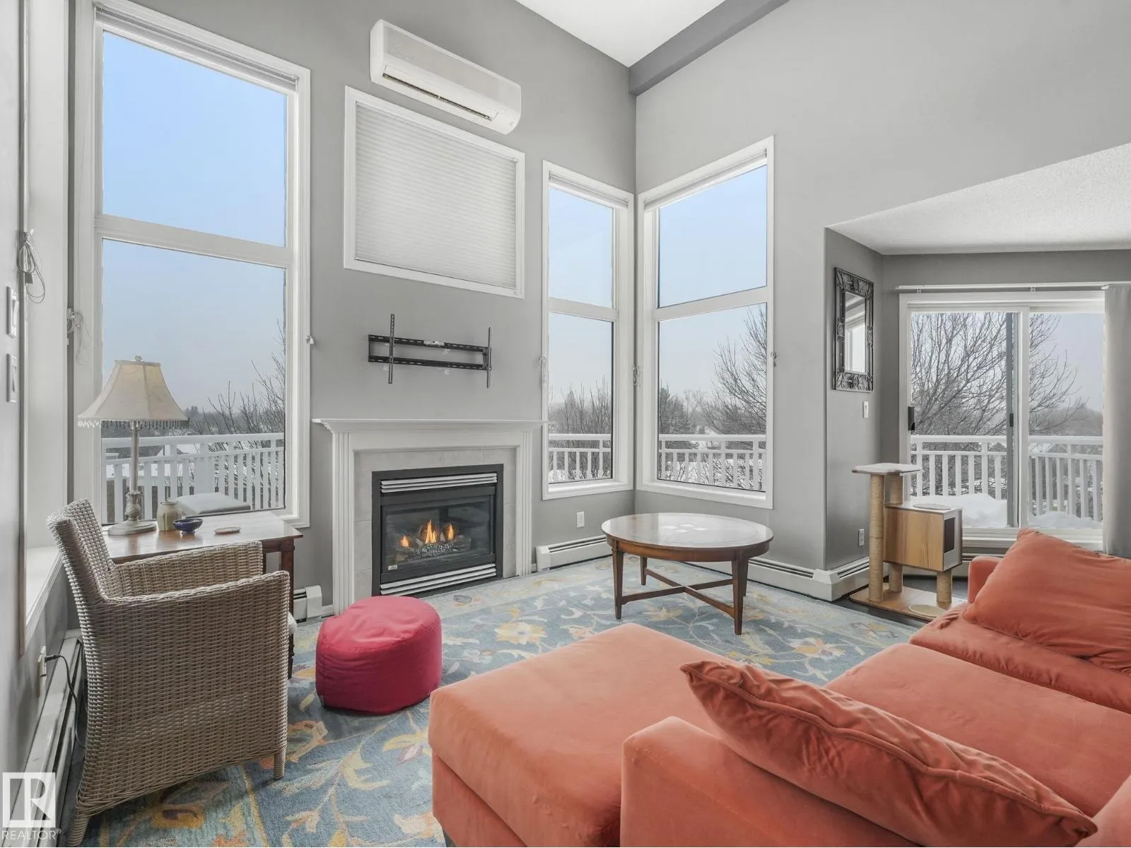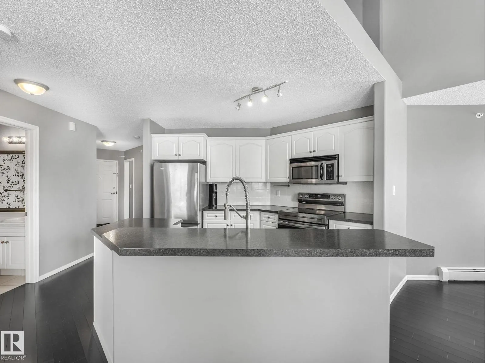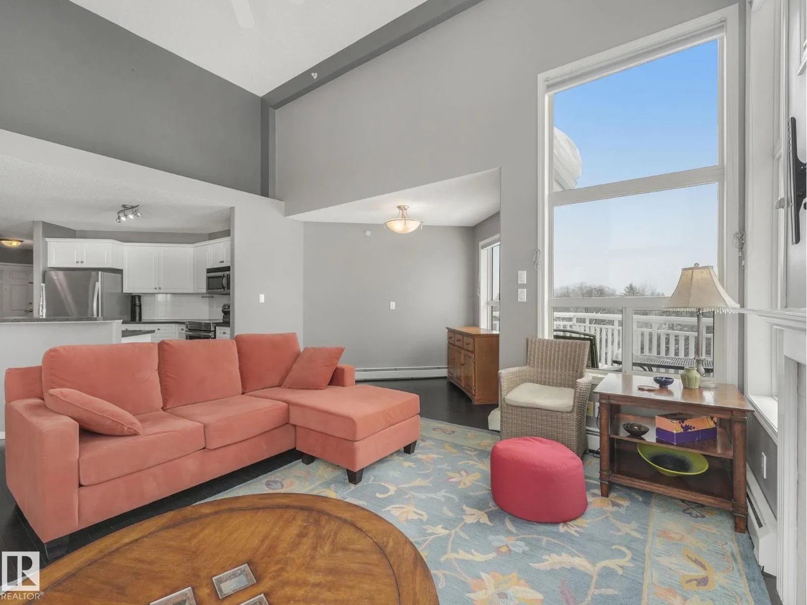 MODERN, BRIGHT, 14' CEILINGS, CORNER PENTHOUSE in St. Lawrence Court in sought-after Westmount. Enjoy over 1000+ square feet in this top floor, 2 bedroom, 2 bathroom condo with open living area, 14' ceilings, great views, gorgeous SW exposure, tons of natural light and air conditioning. Dark floors throughout, mostly NEW stainless steel appliances, fireplace, and in-suite laundry are just a few more features. Take the party outside on the massive wrap around balcony with city views and then relax in one of two spacious bedrooms. The unit also comes with 2 titled underground parking stalls & storage cage. Amenities include the gated, courtyard, social room, fitness rooms & secured underground parking with car wash. Pet friendly building, max 2 animals per unit with board approval. No size limits! Is Centrally located on 124 St, walk to Tiramisu, the Westmount Farmers Market, The Viking, art galleries, right beside Massage, Chiropractor, Physiotherapy, Acupuncture and more! Enjoy an upscale, walkable lifest (id:27476)