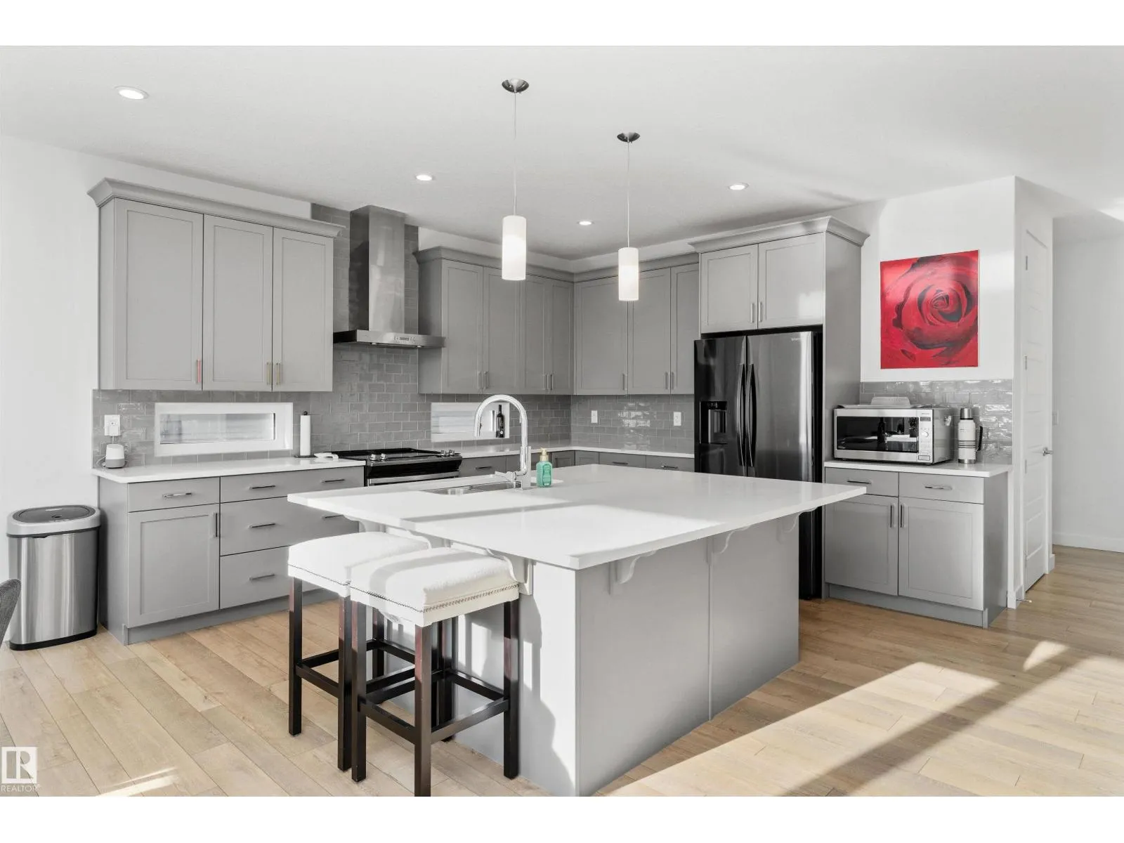 True RARE FIND having a TRIPLE GARAGE! One of the LARGEST Mattamy-built home is now available in the premier community of Stillwater. Standing in at over 2,700 Sq.Ft. of meticulously maintained living space, this home showcases true pride of ownership and high-end upgrades throughout. The main floor features 9â ceilings, Luxury Vinyl Plank flooring, an Office/Den, a living room with high vaulted ceilings and a gourmet kitchen equipped with quartz countertops, a massive social island, and premium cabinetry. The second level offers a sprawling primary retreat with a walk-in closet and private 5-piece spa ensuite, alongside a bonus room and two additional spacious bedrooms. Step outside to enjoy Stillwaterâs exclusive amenities, including a private spray park, skating rink, and nature trails. Located minutes from West Edmonton Mall, major highways, and 2 blocks away from future school site and lake. This home combines the quality of a designer model with the maturity of a settled neighborhood. (id:27476)