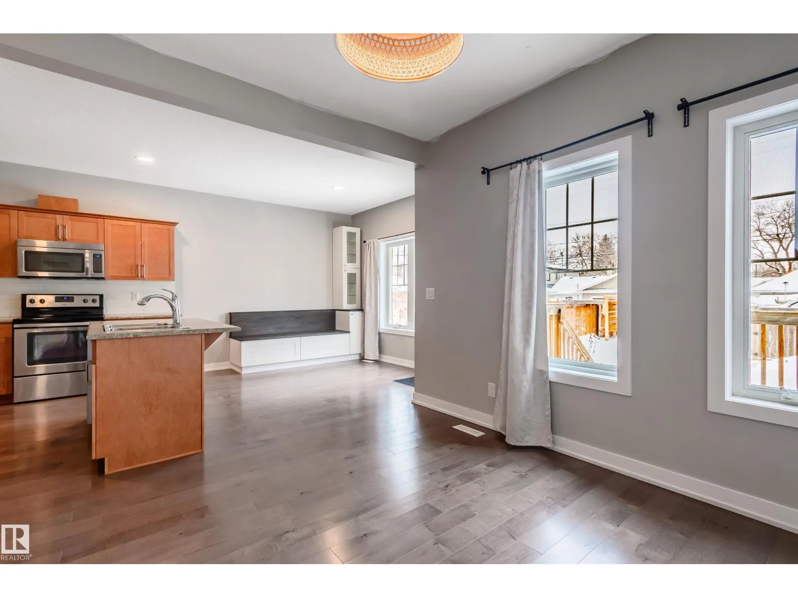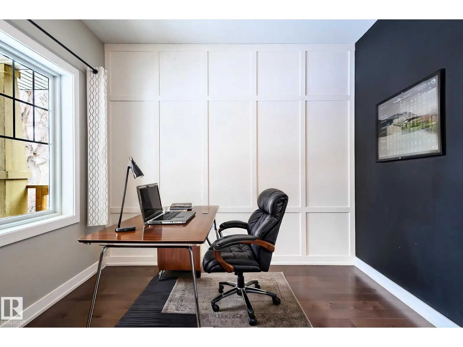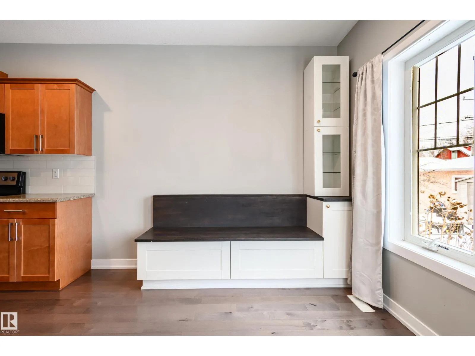 Charming! 1546 sq.ft 2-storey, 3+1 bedroom, 3.5-bath home on a beautiful tree-lined street in Alberta Ave! Main floor features: hardwood floors, a front den, perfect for a home office! 2-piece bath, and open-concept kitchen, dining, and living area w/large windows overlooking the fully fenced backyard w/ private deck. Kitchen offers stainless steel appliances, ample cabinetry and a large walk-in pantry. Functional dining room features: convenient built-in bench. Cozy living room also has a versatile built-in entertainment unit. Upstairs has vinyl plank floors, laundry, a primary suite with walk-in closet w/ 4-piece ensuite, plus two additional bedrooms and a full bath. The 1-bedroom legal basement suite has a modern kitchen, 4-piece bath and laundry! Some of the over $25,000 in recent upgrades include: remote stairwell blinds, parging, heat pump w/ air scrubber, and brand-new hot water tank. Parking for two in the rear plus street parking. Close to all shopping and transit! (Some photos virtually staged). (id:27476)