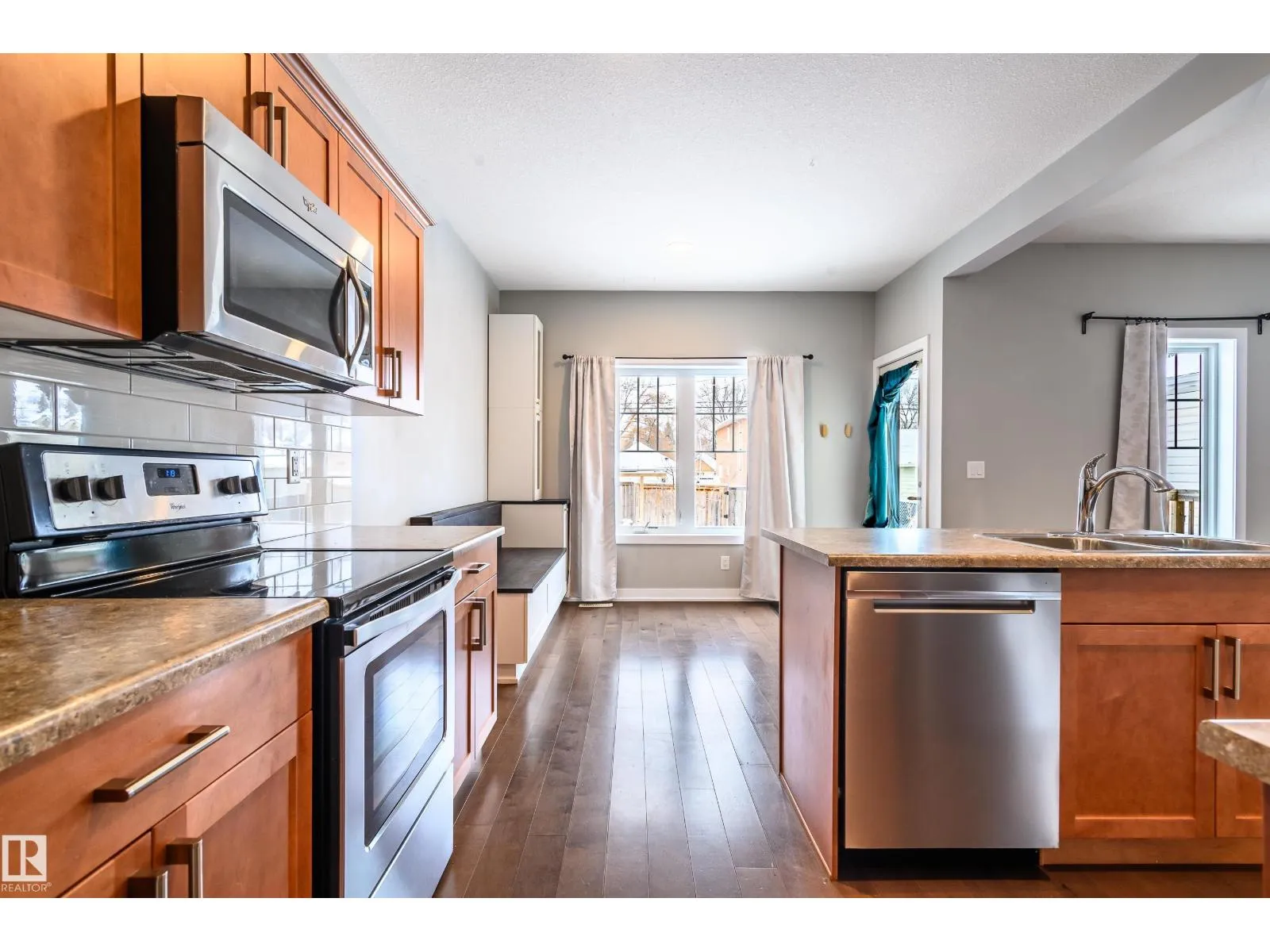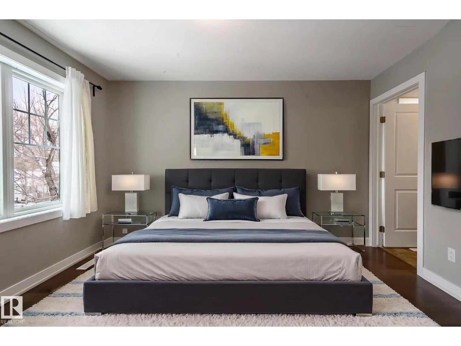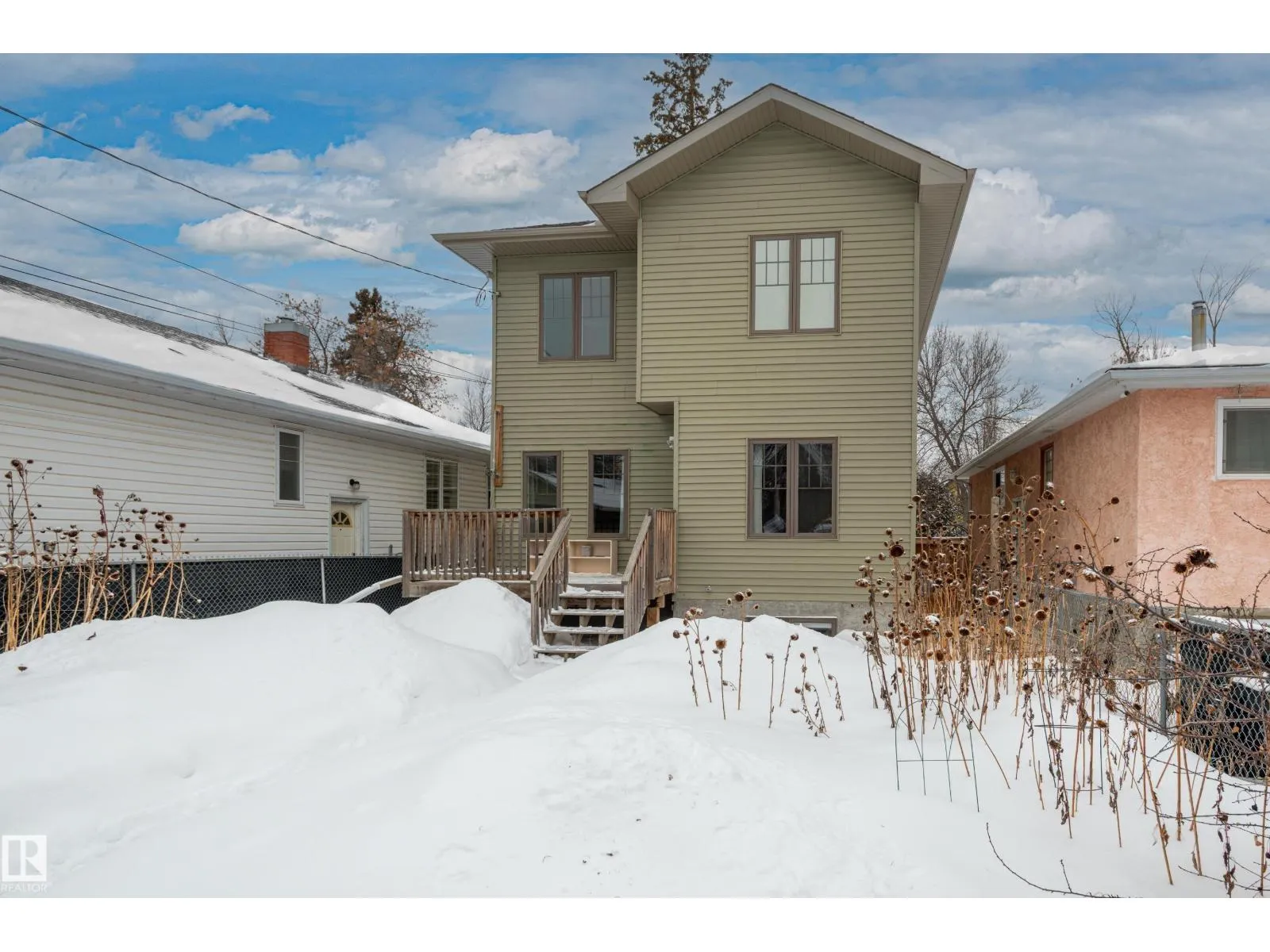 Charming! 1546 sq.ft 2-storey, 3+1 bedroom, 3.5-bath home on a beautiful tree-lined street in Alberta Ave! Main floor features: hardwood floors, a front den, perfect for a home office! 2-piece bath, and open-concept kitchen, dining, and living area w/large windows overlooking the fully fenced backyard w/ private deck. Kitchen offers stainless steel appliances, ample cabinetry and a large walk-in pantry. Functional dining room features: convenient built-in bench. Cozy living room also has a versatile built-in entertainment unit. Upstairs has vinyl plank floors, laundry, a primary suite with walk-in closet w/ 4-piece ensuite, plus two additional bedrooms and a full bath. The 1-bedroom legal basement suite has a modern kitchen, 4-piece bath and laundry! Some of the over $25,000 in recent upgrades include: remote stairwell blinds, parging, heat pump w/ air scrubber, and brand-new hot water tank. Parking for two in the rear plus street parking. Close to all shopping and transit! (Some photos virtually staged). (id:27476)