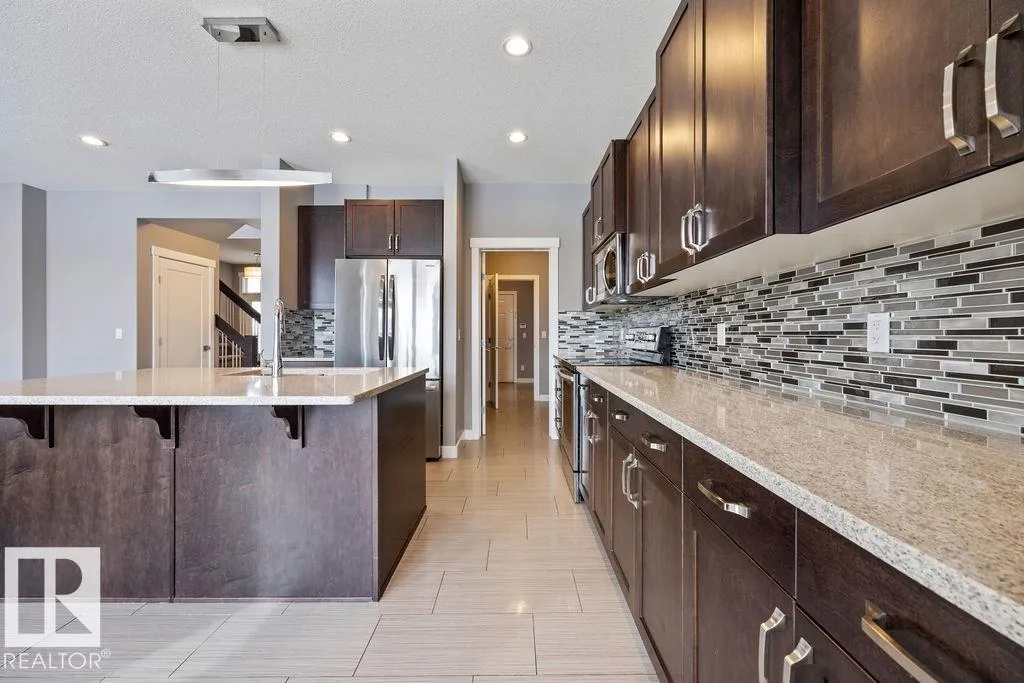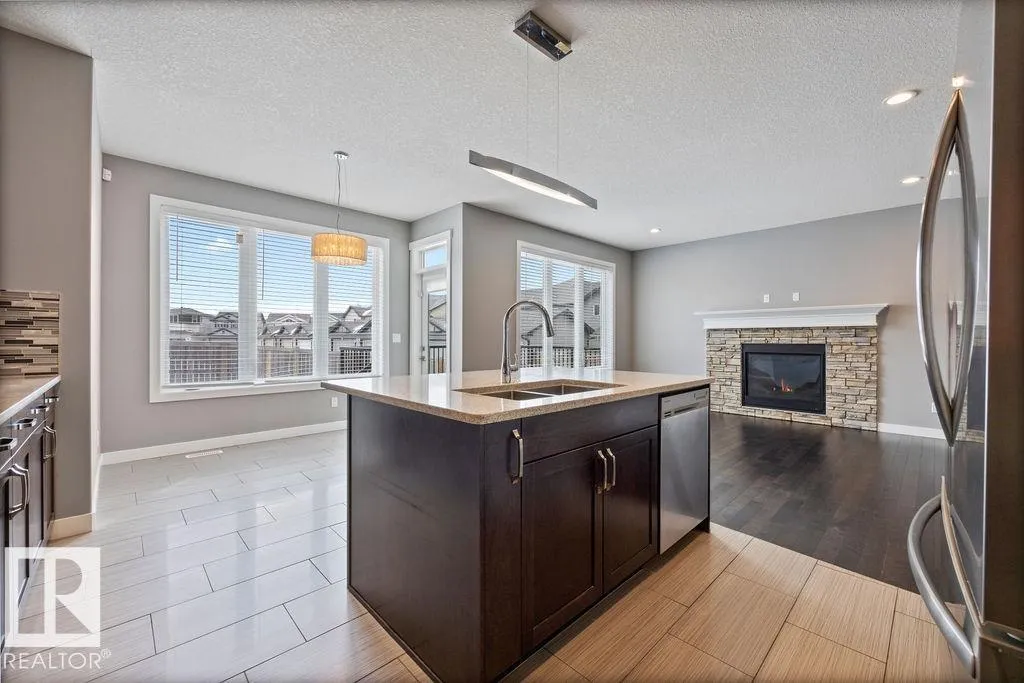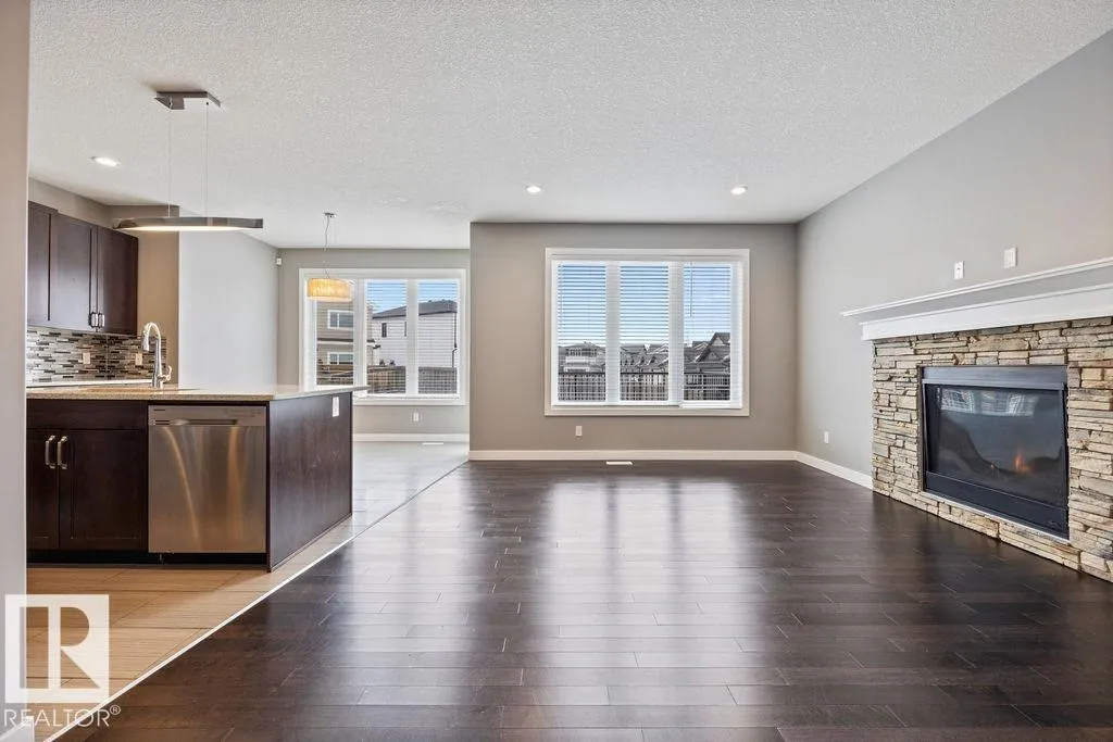 Welcome to this beautiful custom crafted Crystallina home featuring a fully legal 2 bedroom suite and over 2,000 sqft above grade, designed for flexibility with the opportunity for multigenerational living or rental income. Soaring 9 ft ceilings, rich hardwood and tile flooring, and a stone clad gas fireplace anchor the main living space with large south facing windows filling the home with natural light. The open concept layout flows to the backyard, which features a spacious rear deck, natural gas hookup and a concrete patio ideal for outdoor entertaining. The fully landscaped yard provides a beautiful setting year round. Upstairs features a generous bonus room wired for surround sound, convenient second floor laundry, and four bedrooms including a versatile fourth bedroom or office. Premium details include rounded corners, custom MDF built ins, central air conditioning, and a built in alarm system. Perfectly located across from the lake and walking paths with quick access to Anthony Henday. (id:27476)