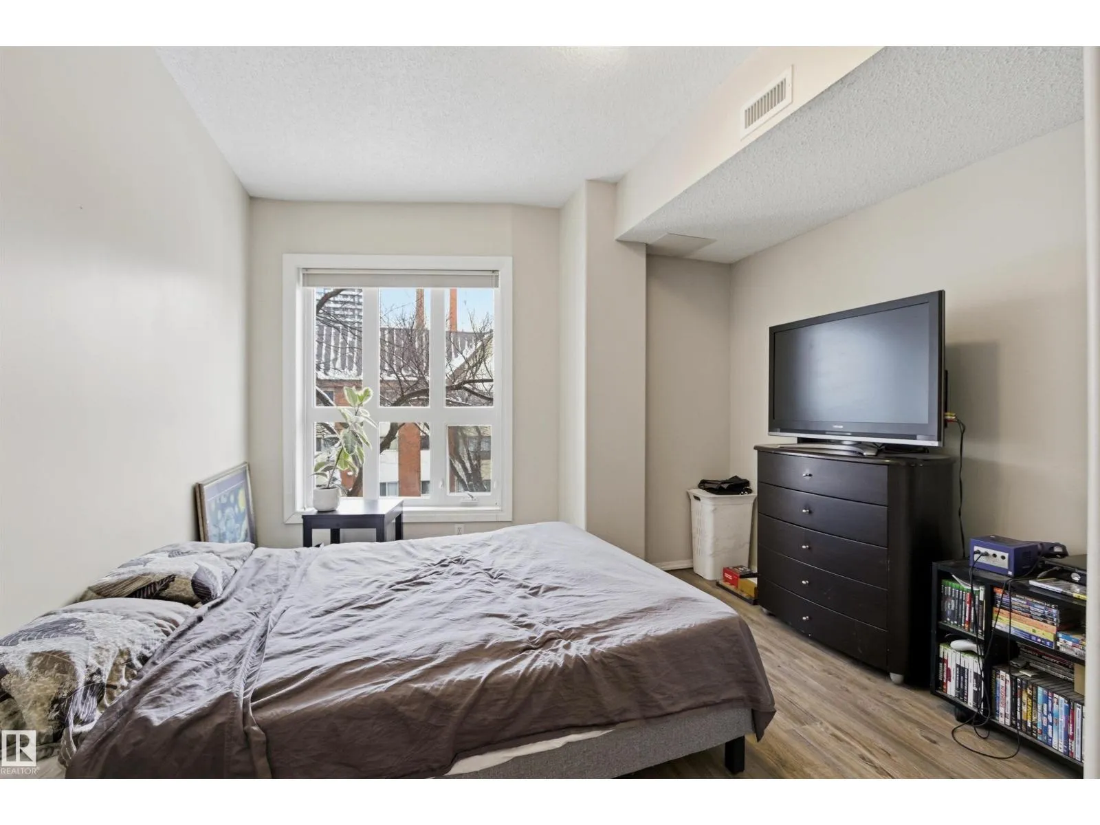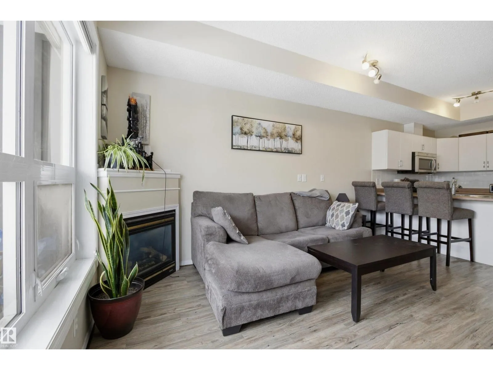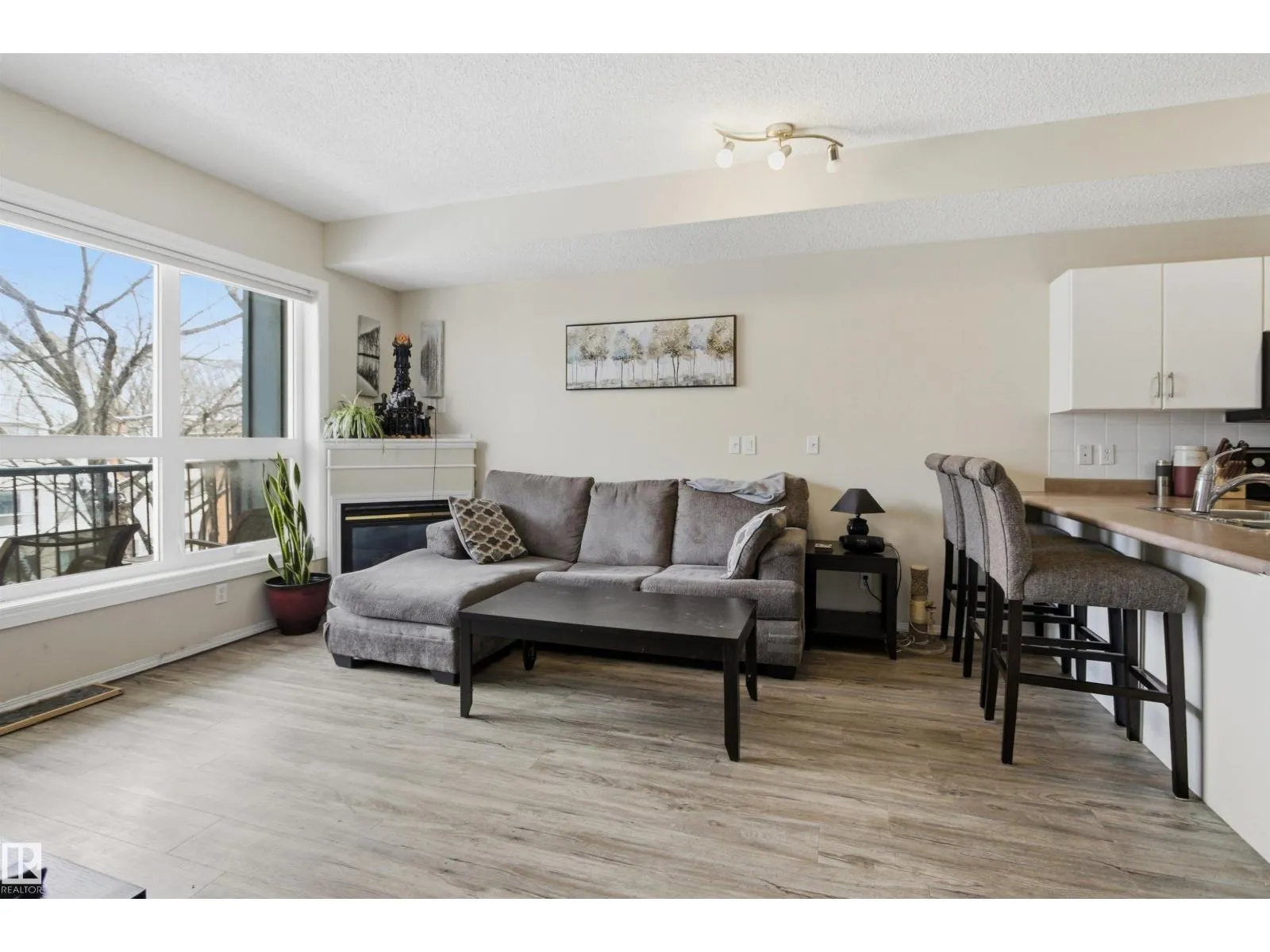 Welcome to this solid concrete condo perfectly located just steps from the University of Alberta and its world-class hospital, offering unbeatable convenience on a peaceful, tree-lined street. Inside, enjoy 9-foot ceilings, classic white kitchen, stainless steel appliances, and the cozy charm of a corner gas fireplace. The spacious primary bedroom features a stunning oversized window framing views of majestic elm trees, along with a walkthrough closet and a private 4-piece ensuite. The second bedroom is window-freeâideal for shift workers needing daytime restâor easily used as a quiet office, workout room, or extra storage space. Additional highlights include in-suite laundry, secure titled underground parking, and a generous balcony with a great vantage point over the lively pedestrian traffic along the street. A perfect blend of comfort, practicality, and location in one of the cityâs most sought-after areas. (id:27476)