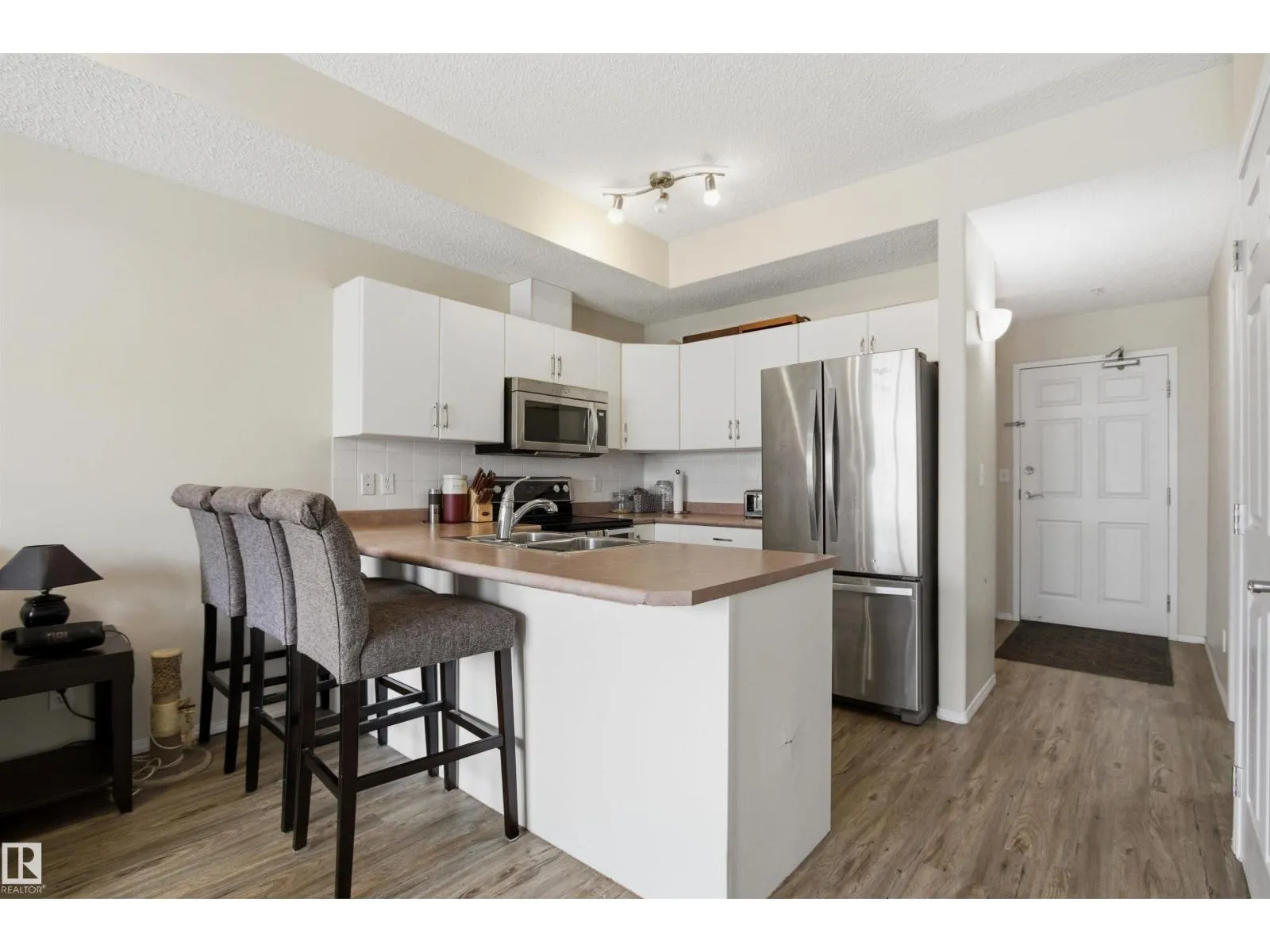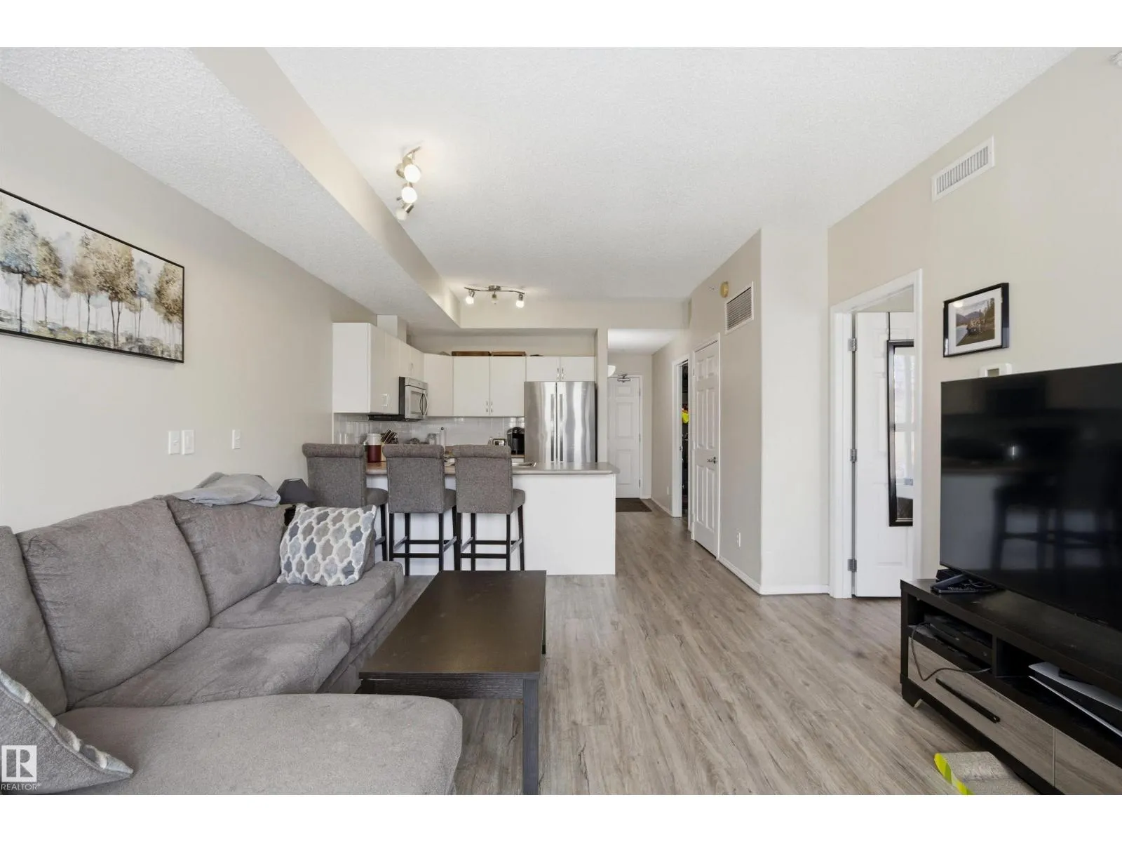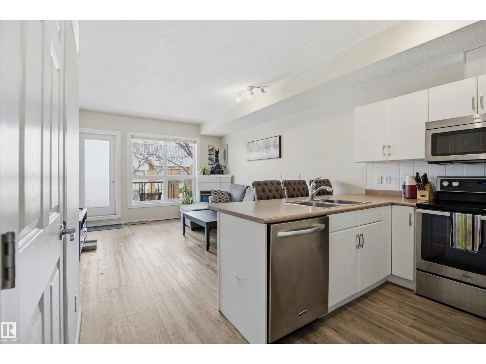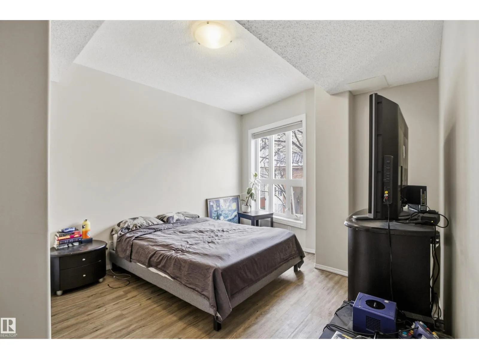 Welcome to this solid concrete condo perfectly located just steps from the University of Alberta and its world-class hospital, offering unbeatable convenience on a peaceful, tree-lined street. Inside, enjoy 9-foot ceilings, classic white kitchen, stainless steel appliances, and the cozy charm of a corner gas fireplace. The spacious primary bedroom features a stunning oversized window framing views of majestic elm trees, along with a walkthrough closet and a private 4-piece ensuite. The second bedroom is window-freeâideal for shift workers needing daytime restâor easily used as a quiet office, workout room, or extra storage space. Additional highlights include in-suite laundry, secure titled underground parking, and a generous balcony with a great vantage point over the lively pedestrian traffic along the street. A perfect blend of comfort, practicality, and location in one of the cityâs most sought-after areas. (id:27476)