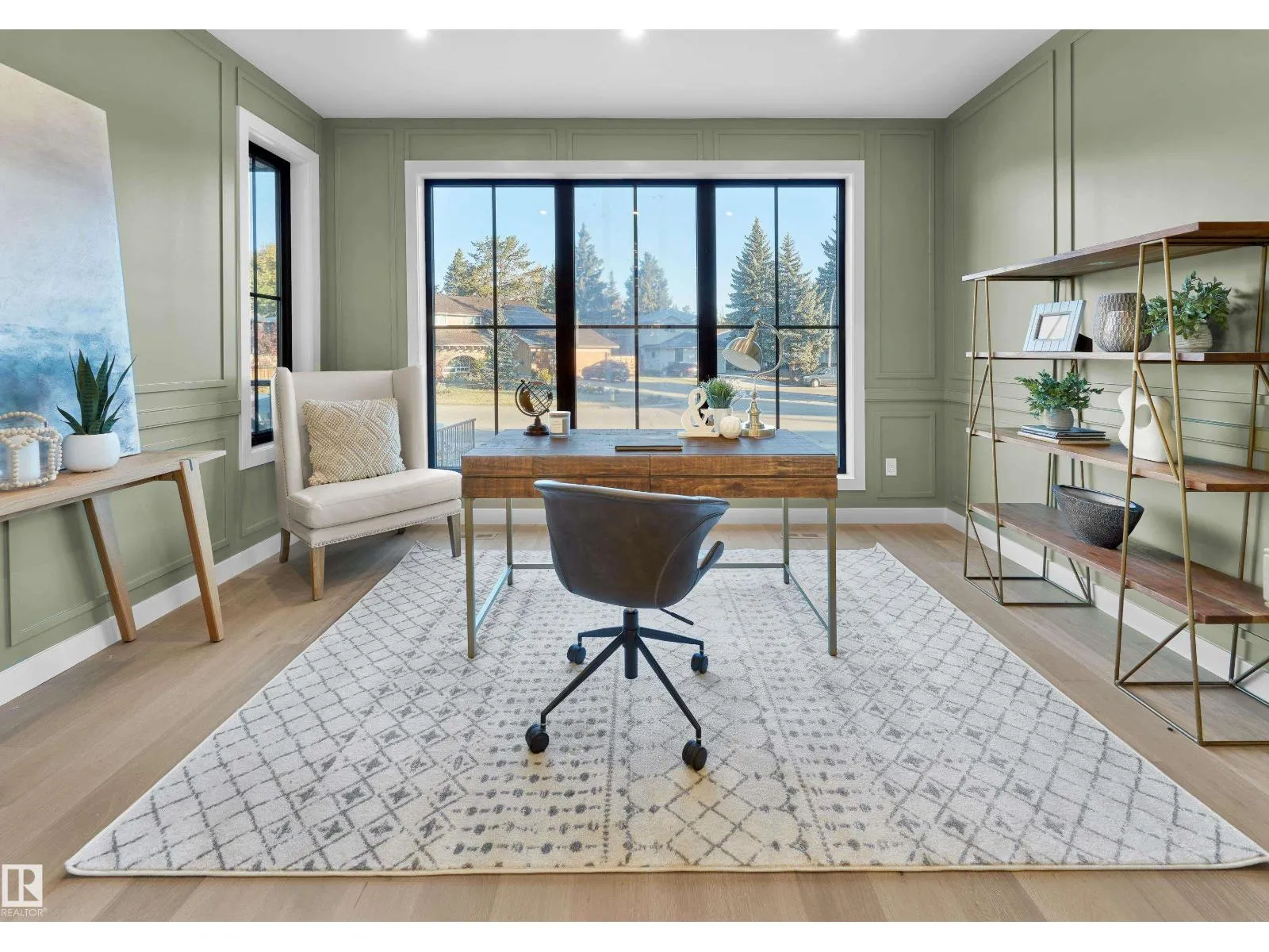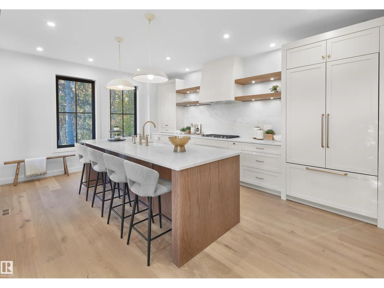 This meticulously designed home showcases high-end finishes, superior craftsmanship, & backs onto the ravine! With over 4,200 sq ft of living space, it offers 4 bedrooms + a den, a main floor office, & a massive upper loft with a rooftop patio. The main floor features stunning hardwood, custom iron doors, brick accents, & a chefâs kitchen with elegant cabinetry, panel appliances, dual fridges, built-in ovens, & bookmatched countertops. A dining wet bar includes a built-in beverage fridge, while the living area centres around a plaster fireplace with built-in cabinetry. The primary suite boasts a gorgeous, spa-like en-suite and a large walk-in closet. Upstairs are 3 bedrooms, a den, & 3 full baths. The top-floor loft impresses with a wet bar, 2 pc bath, & rooftop patio with a gas fire table overlooking the ravine. The lower level offers in-floor heat, a rec room, a bedroom, & bath. Oversized heated garage with epoxy floors & south yard with covered deck complete this must-see home! (id:27476)